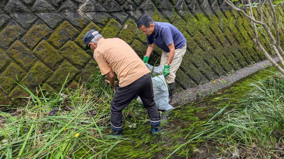 今日、7月8日(月)芹沢公園の水路作業を行いました。 猛暑日が続く中作業のためらいもある中で実施しましました。