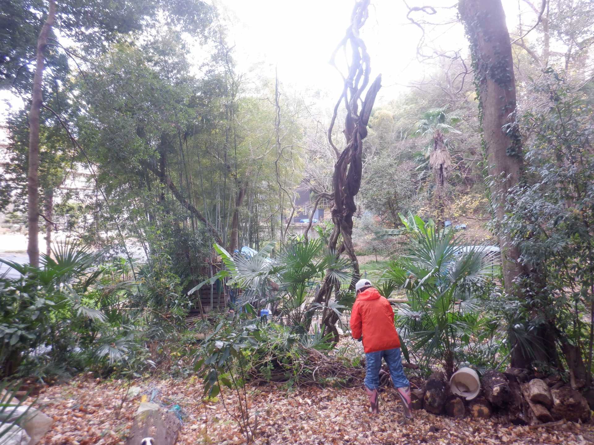 いっぺい窪緑地斜面高木林間伐 里山復活を目指して カシ伐採 カシナガ寄生