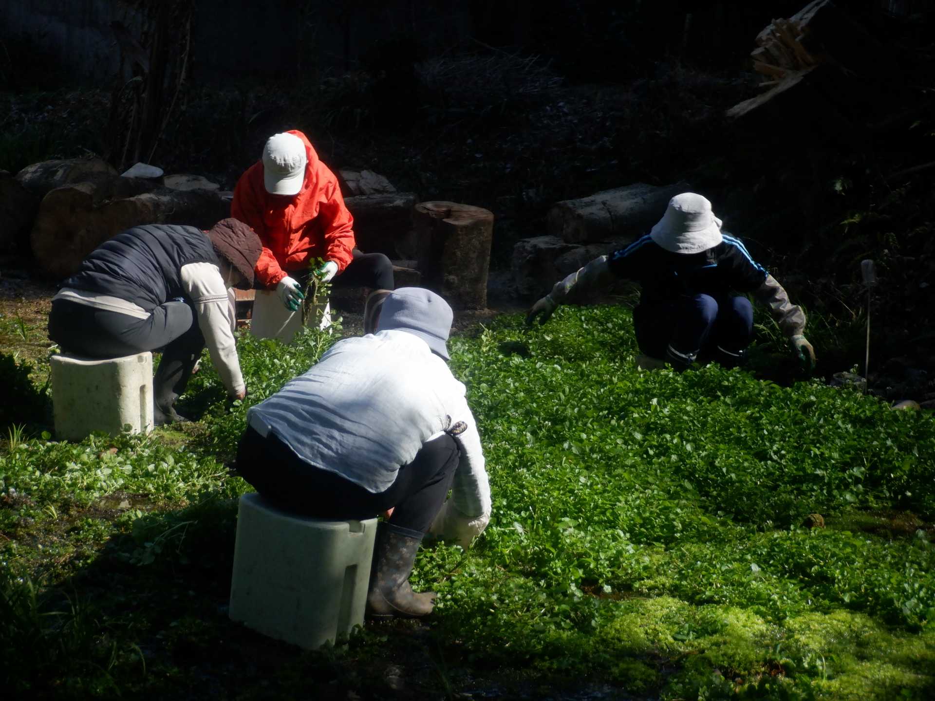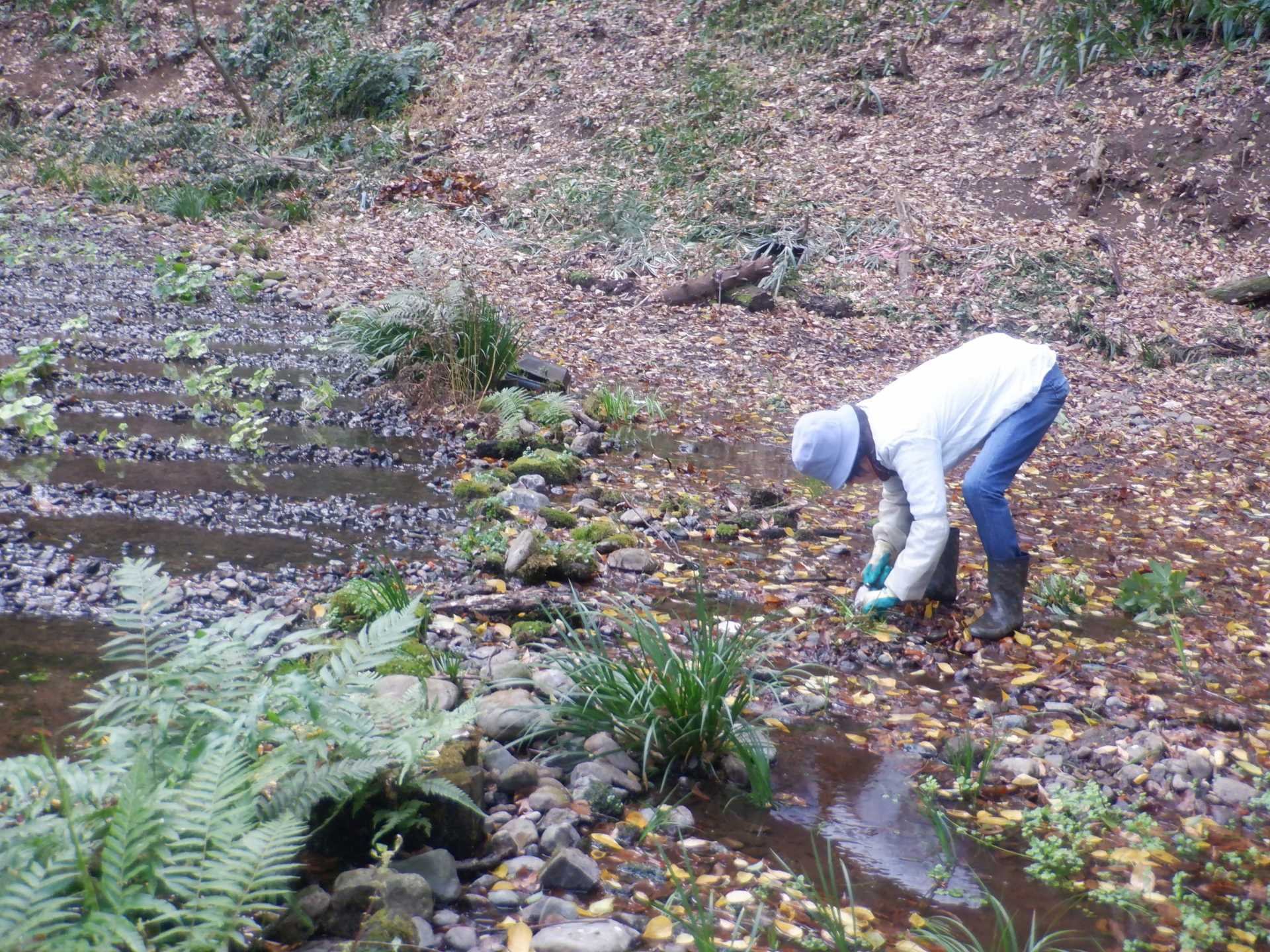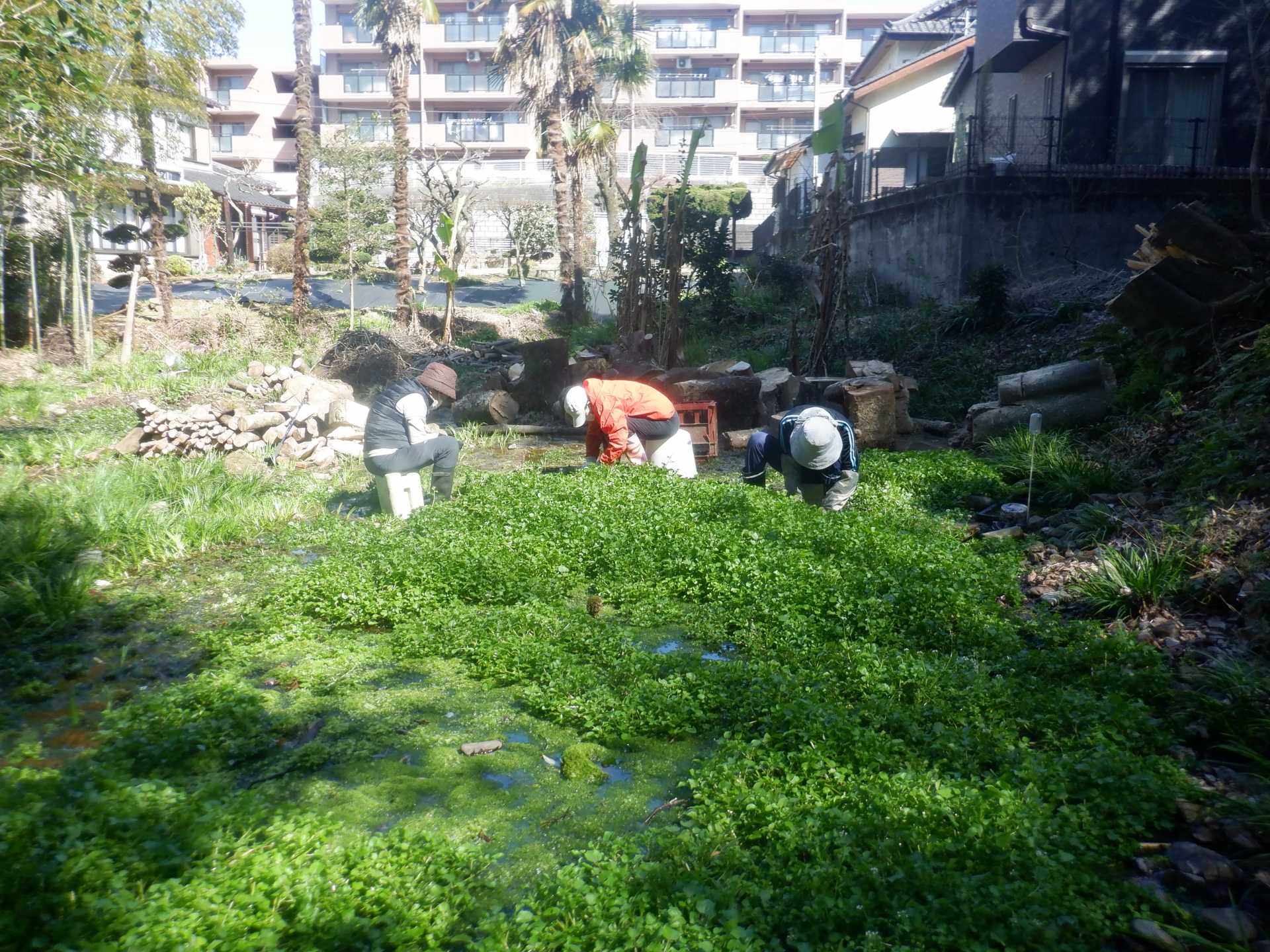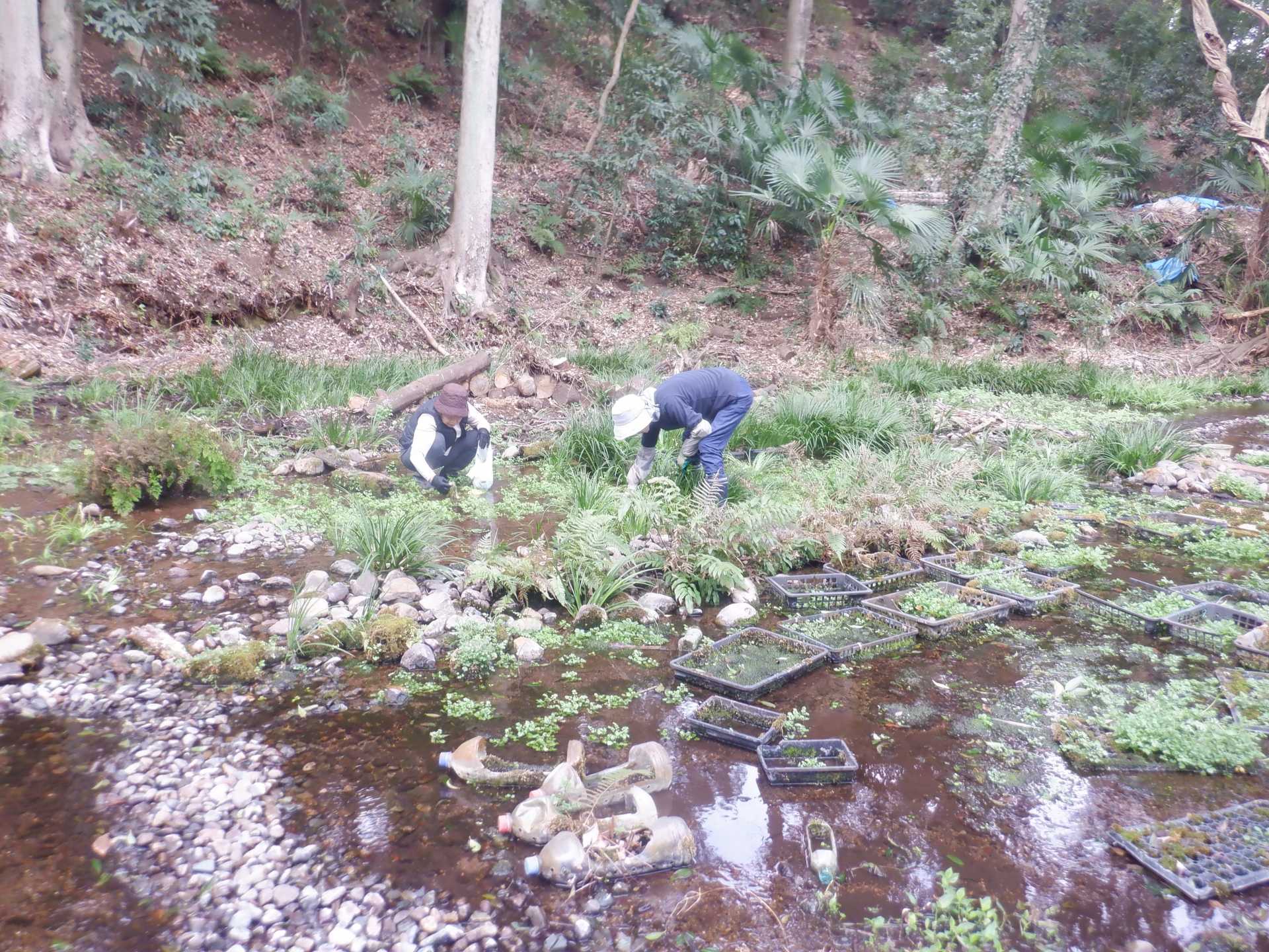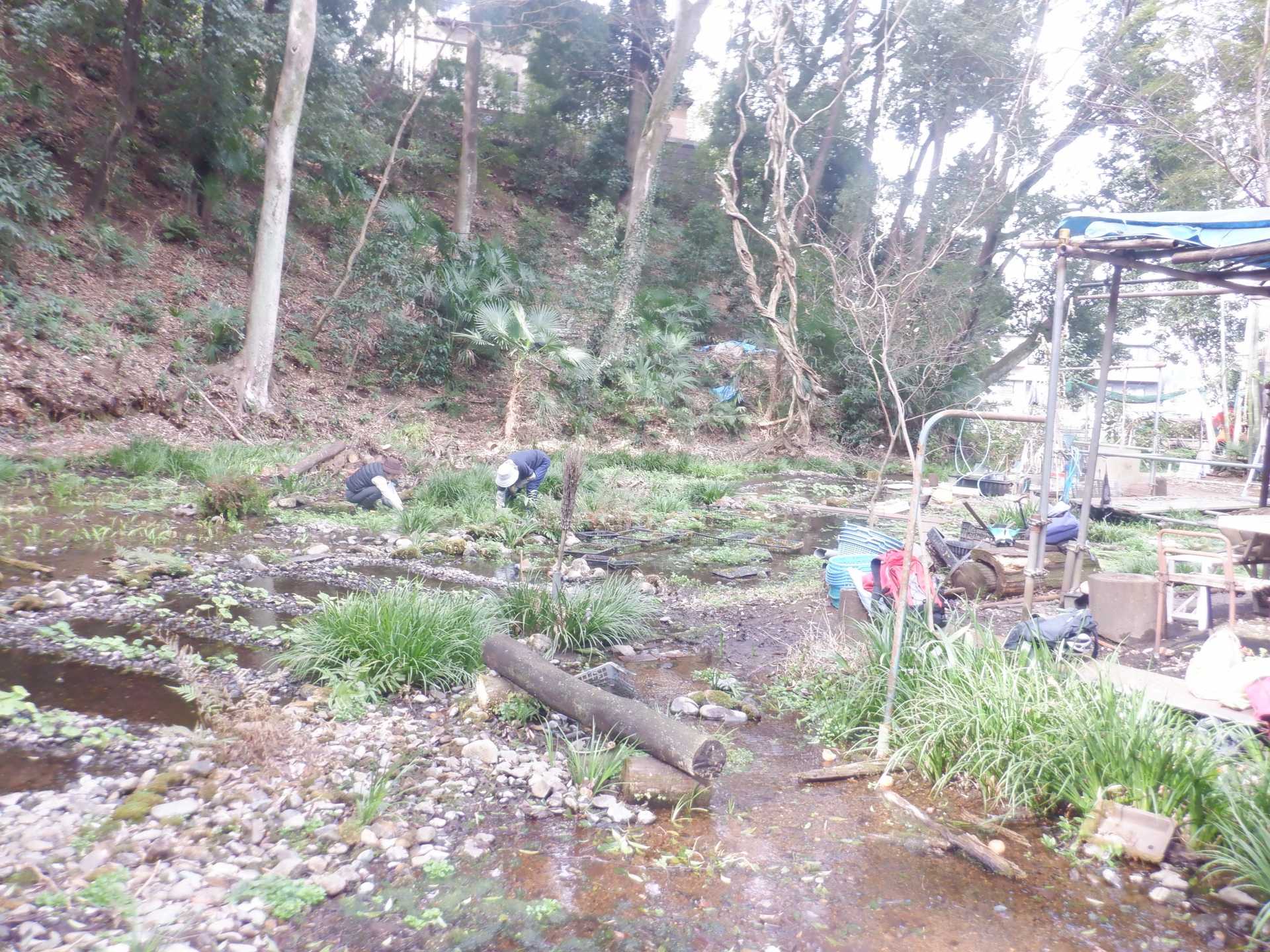 湧水面ミズゴケエリア クレソン抜取り エリア拡張セキショウ抜取り