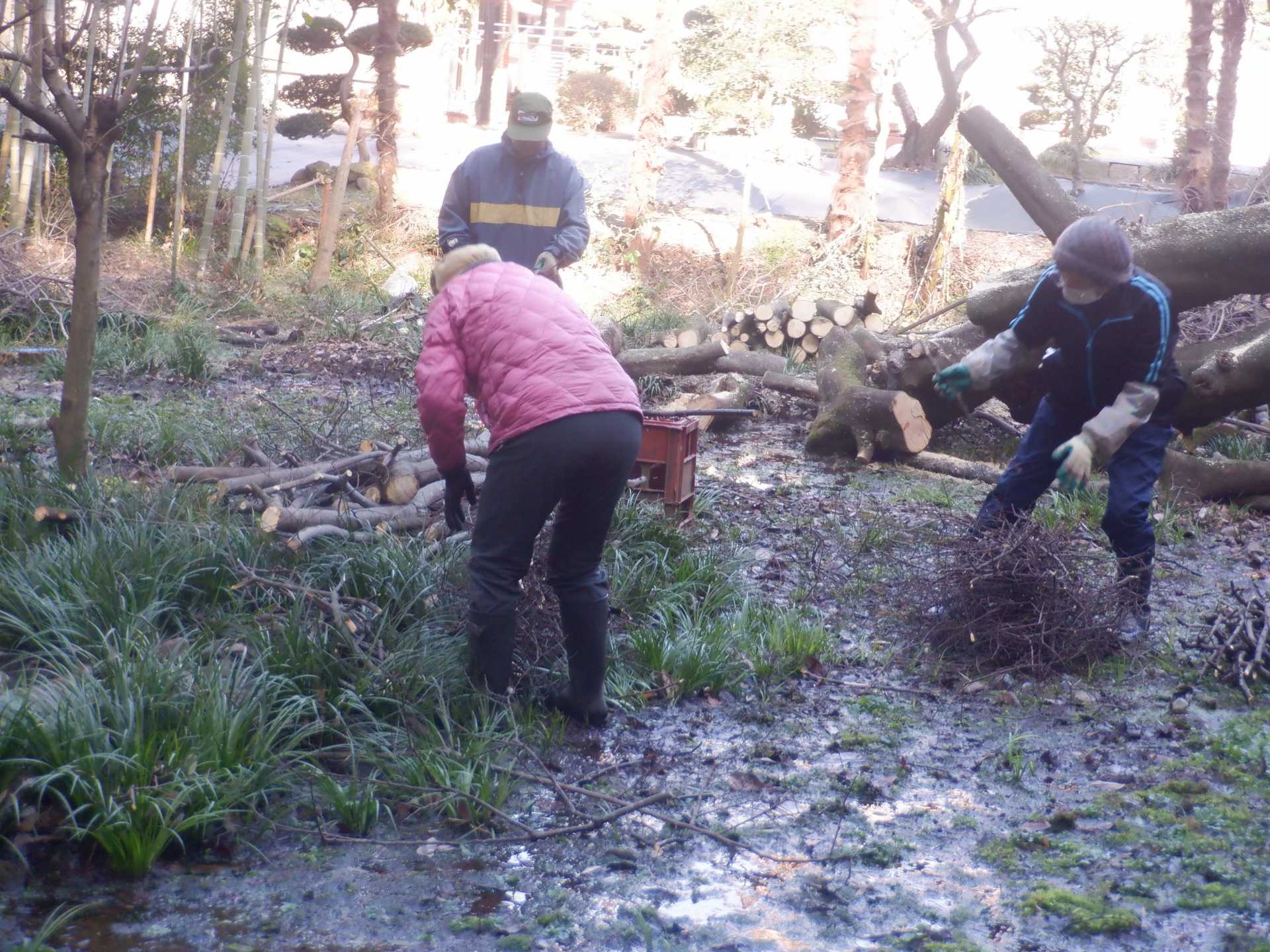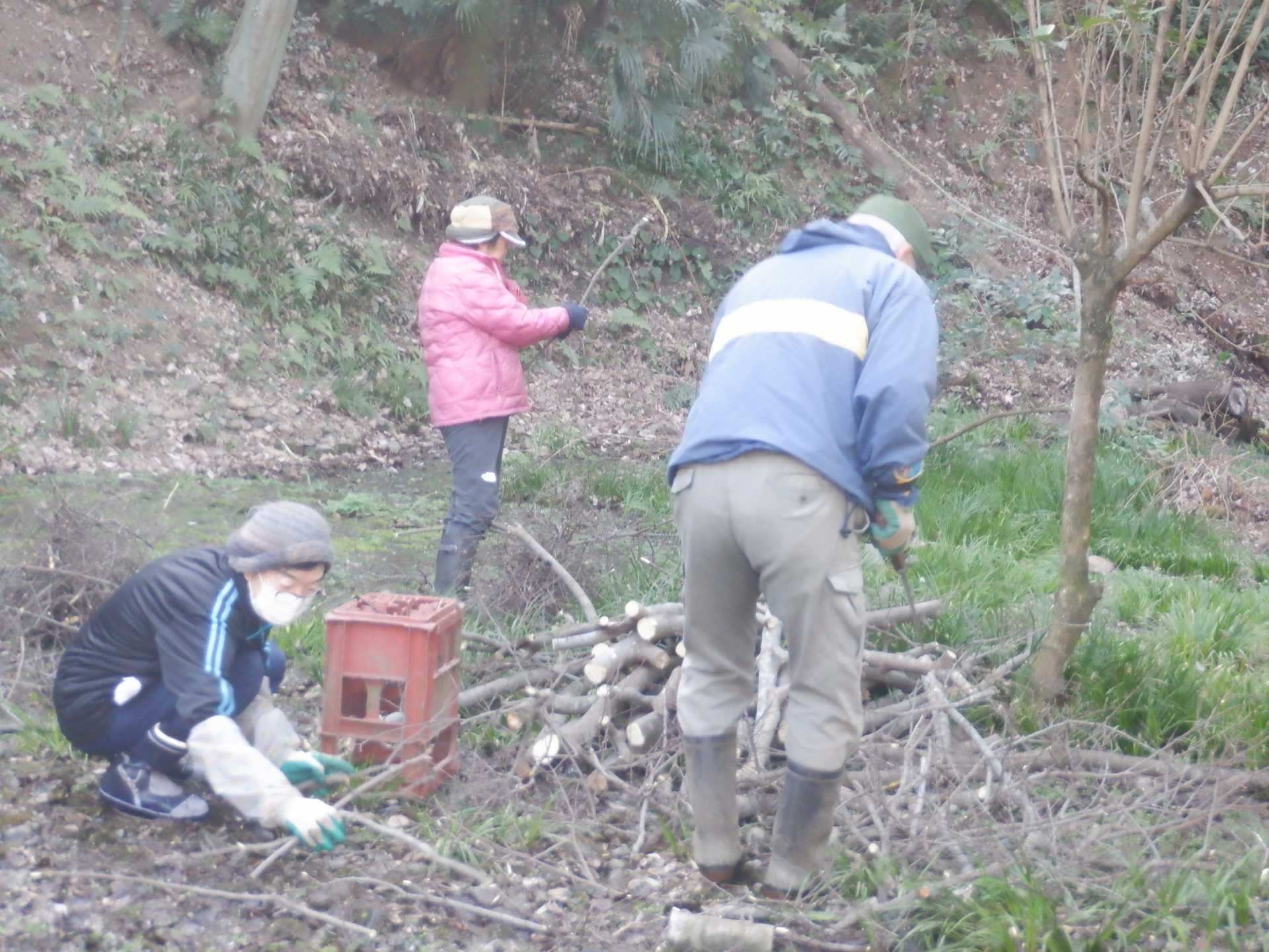 (2月11日㈫) 祝日休業 2/14fr 斜面高木樹林案伐 1/24fri 斜面高木樹林間伐 1月14日㈫ ホタル水路作業