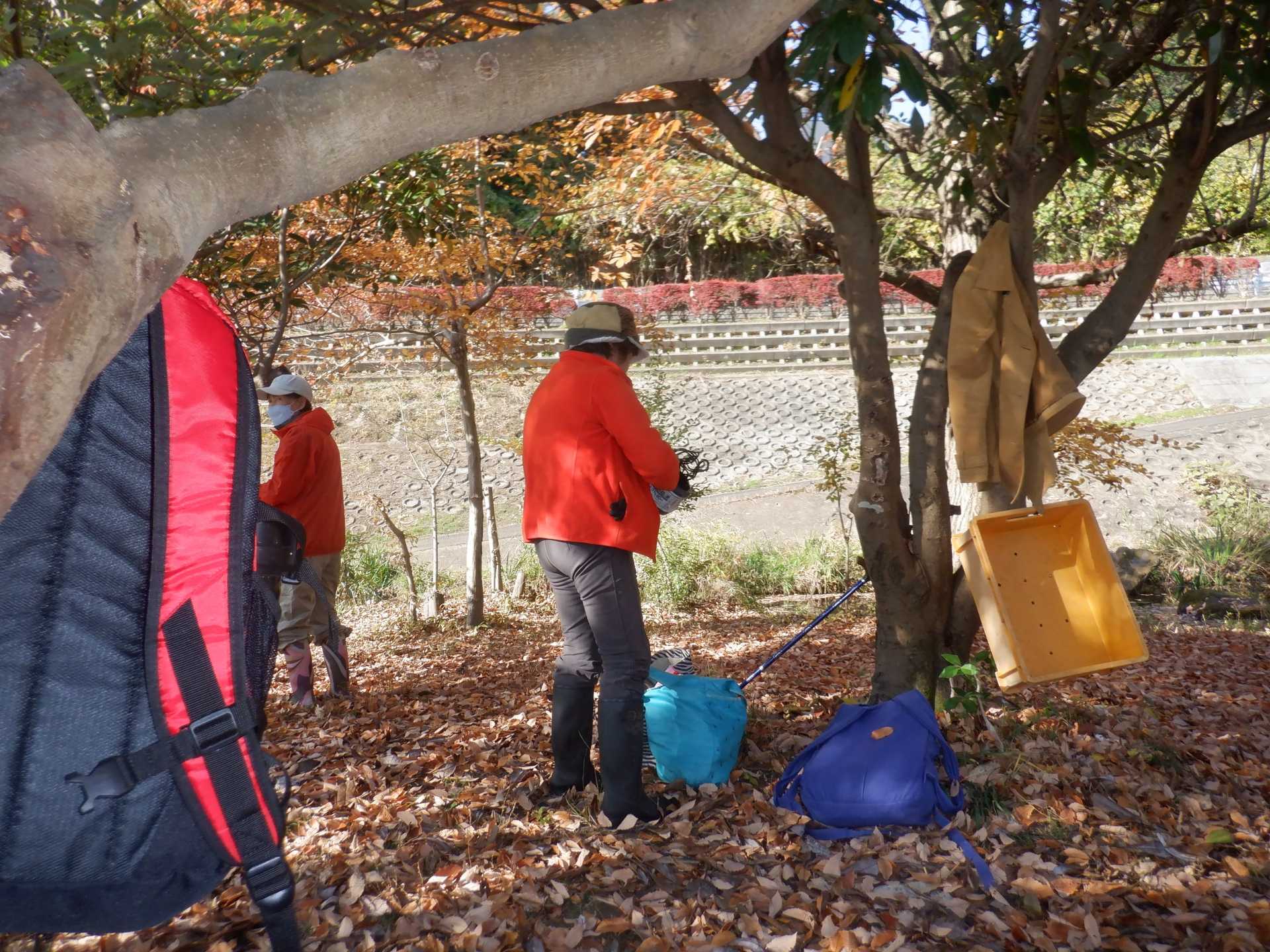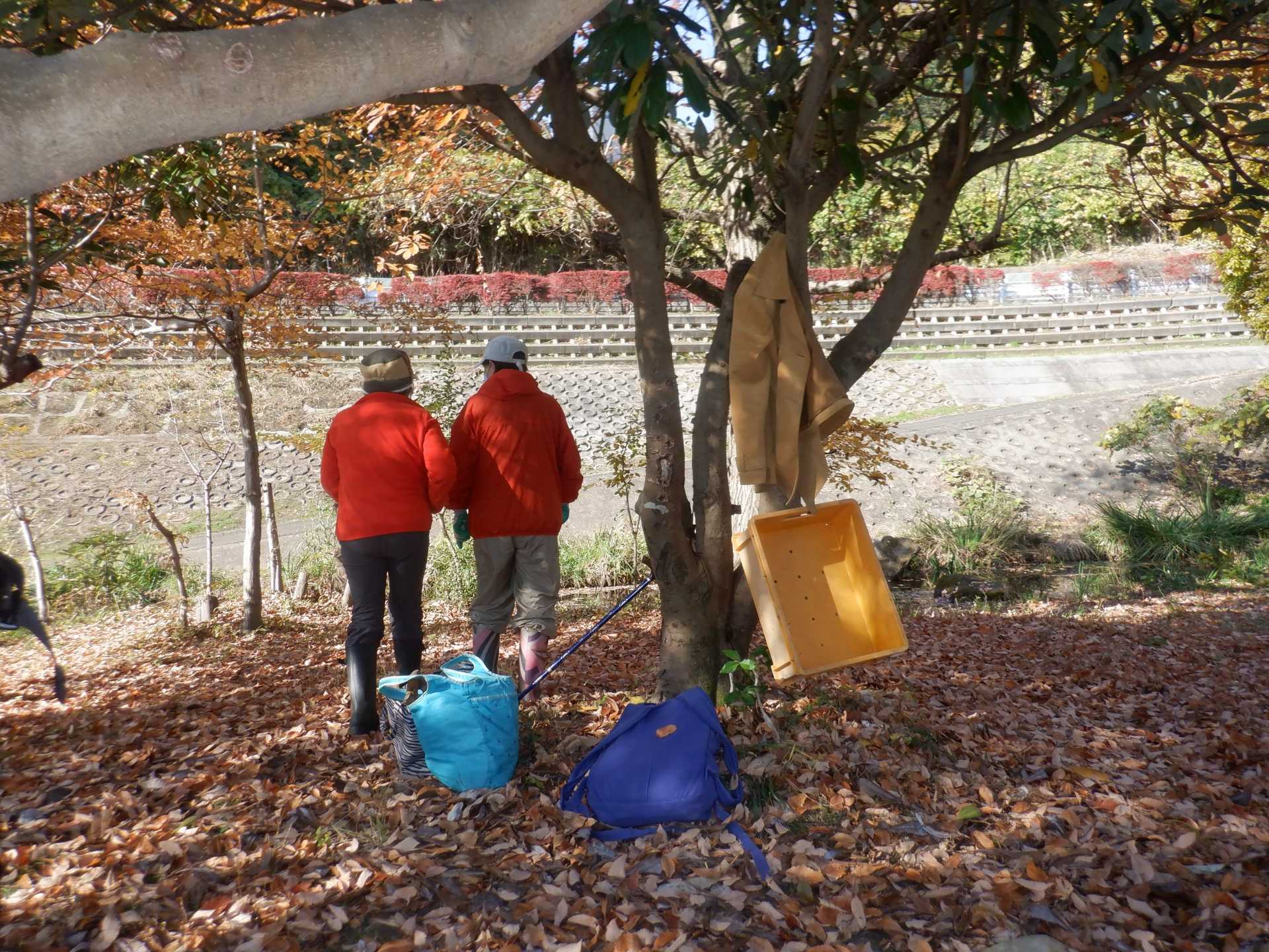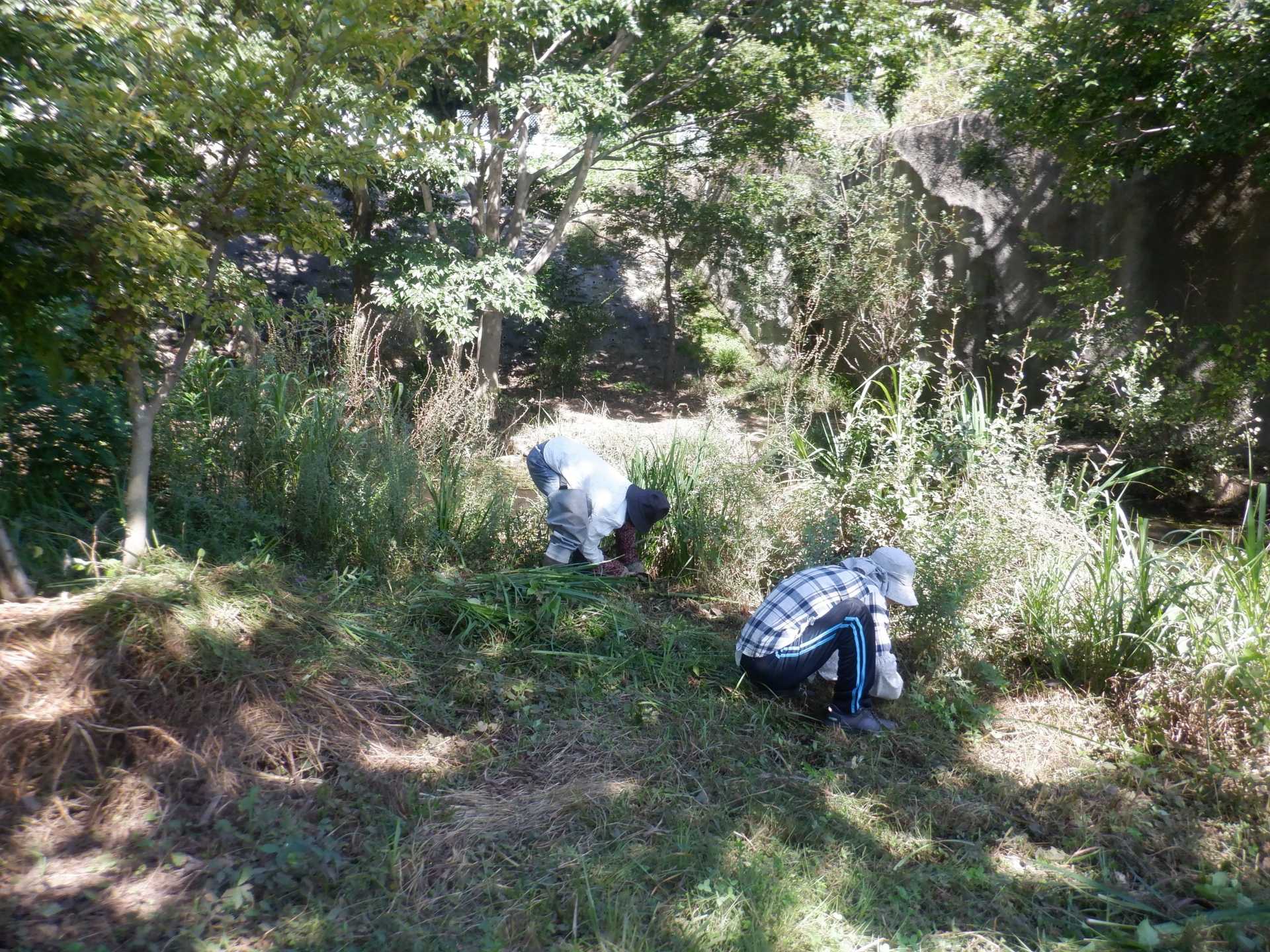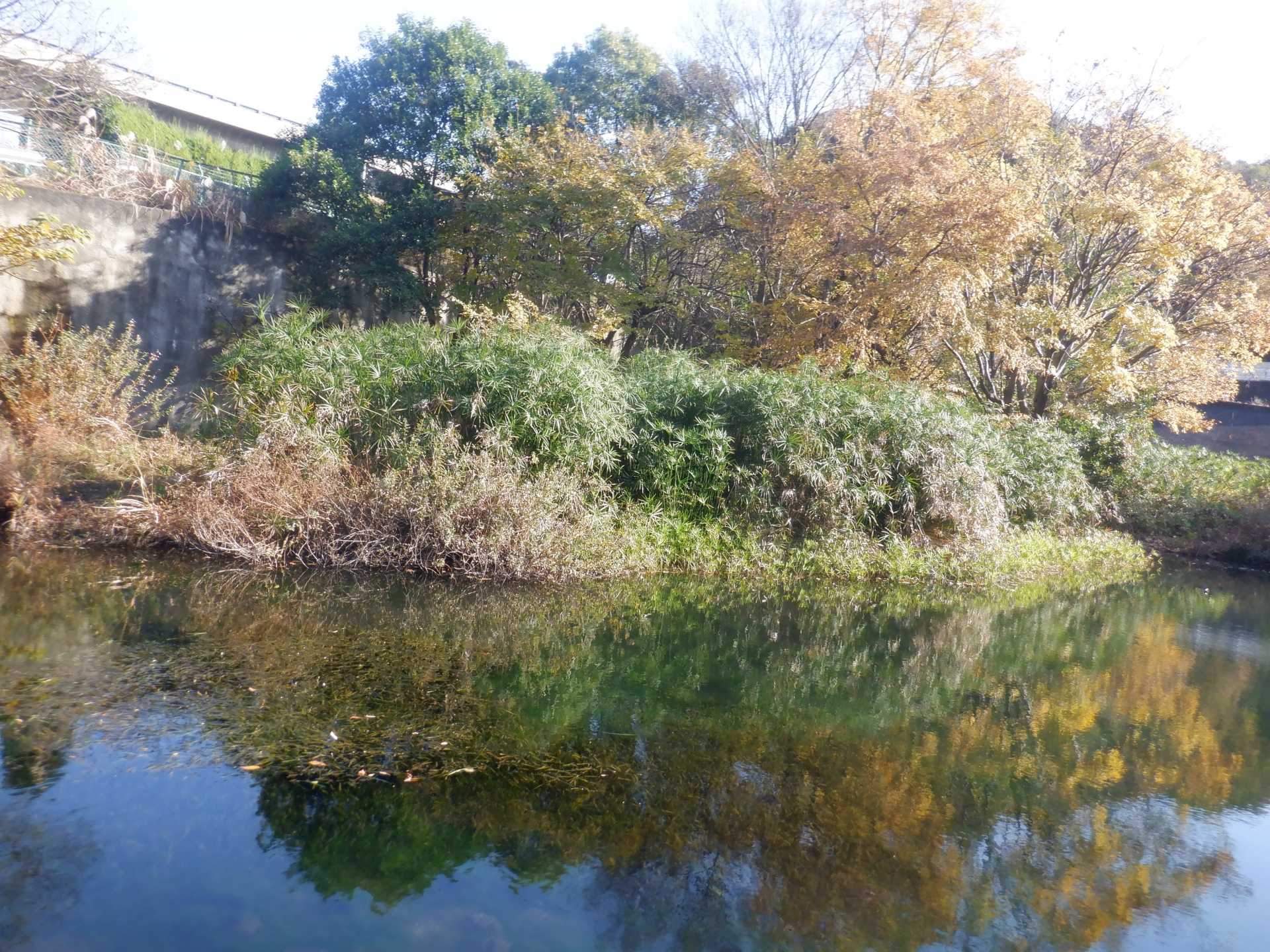 今日の作業は、水路対岸にあるクロガネモチ6本とエノキの伐採です。エノキは問