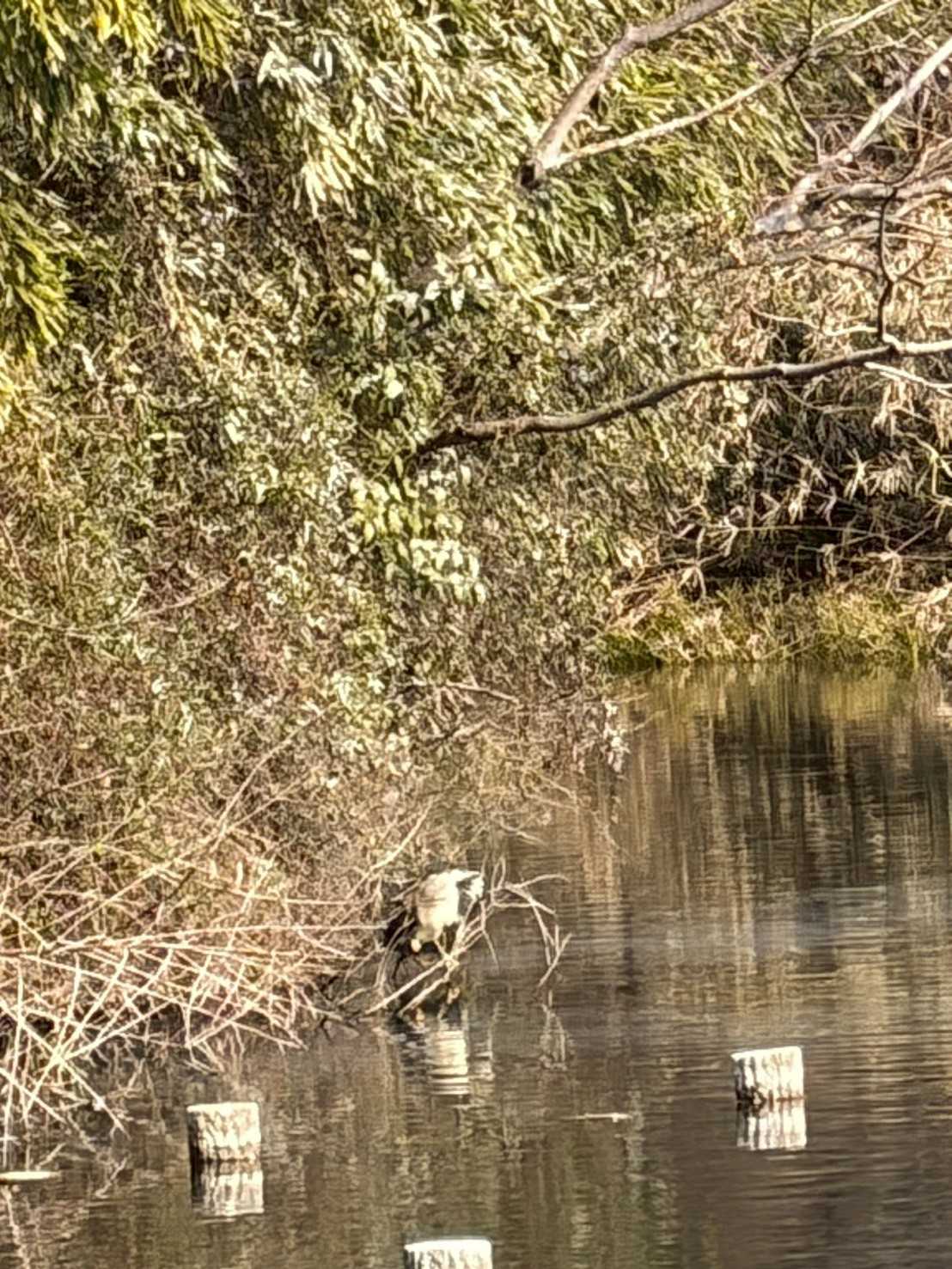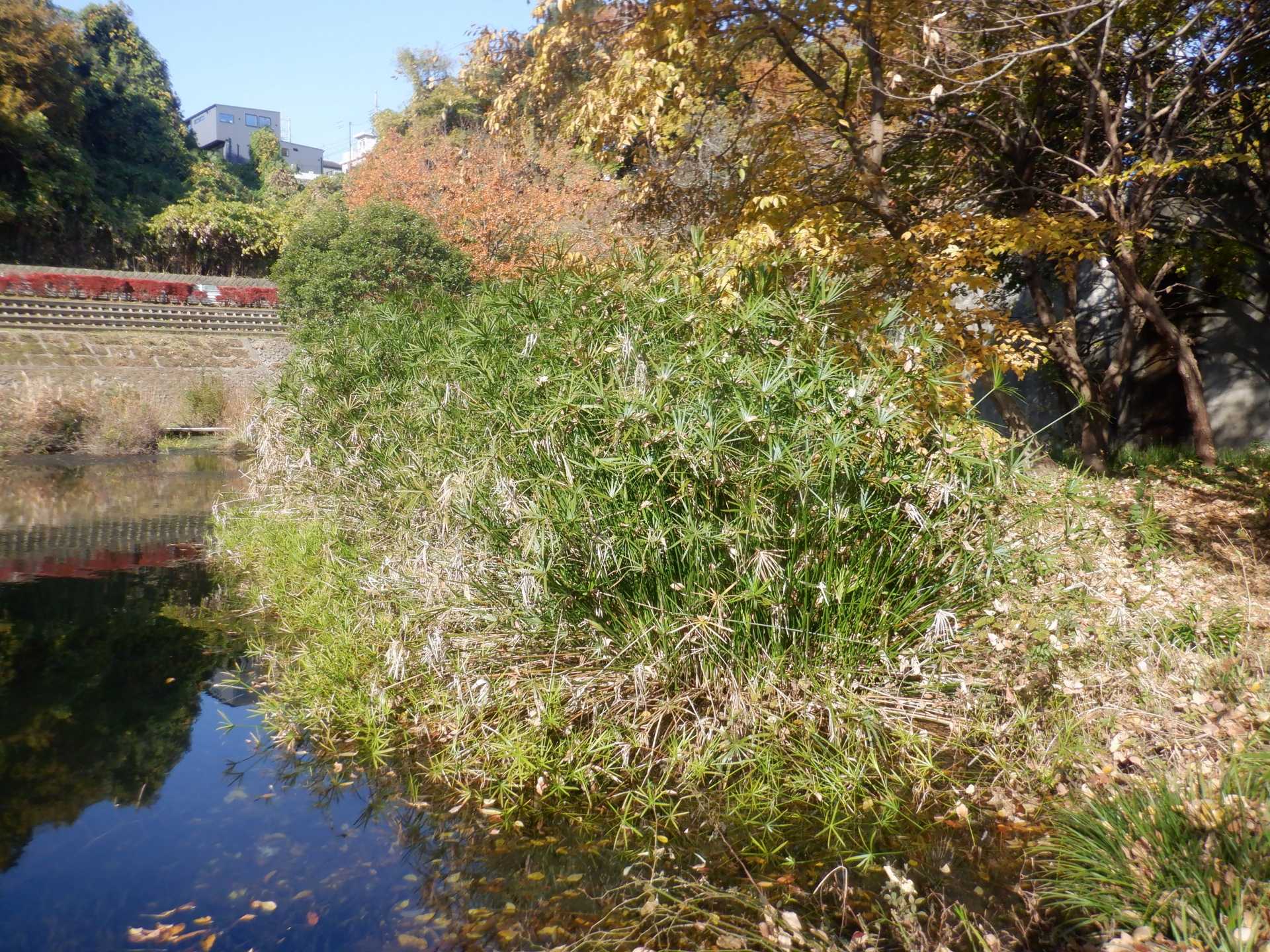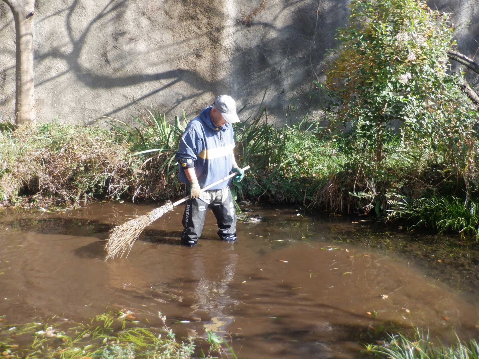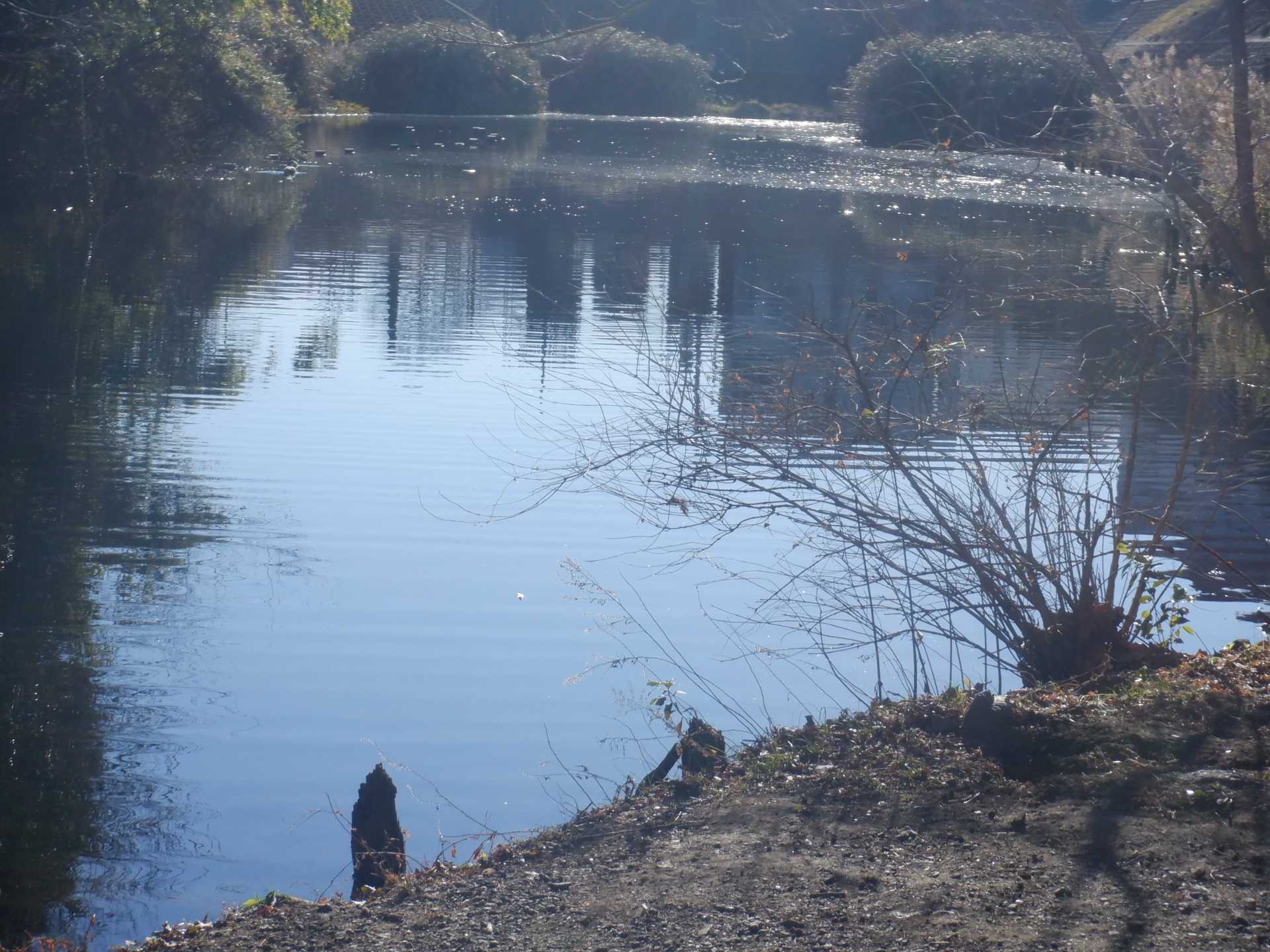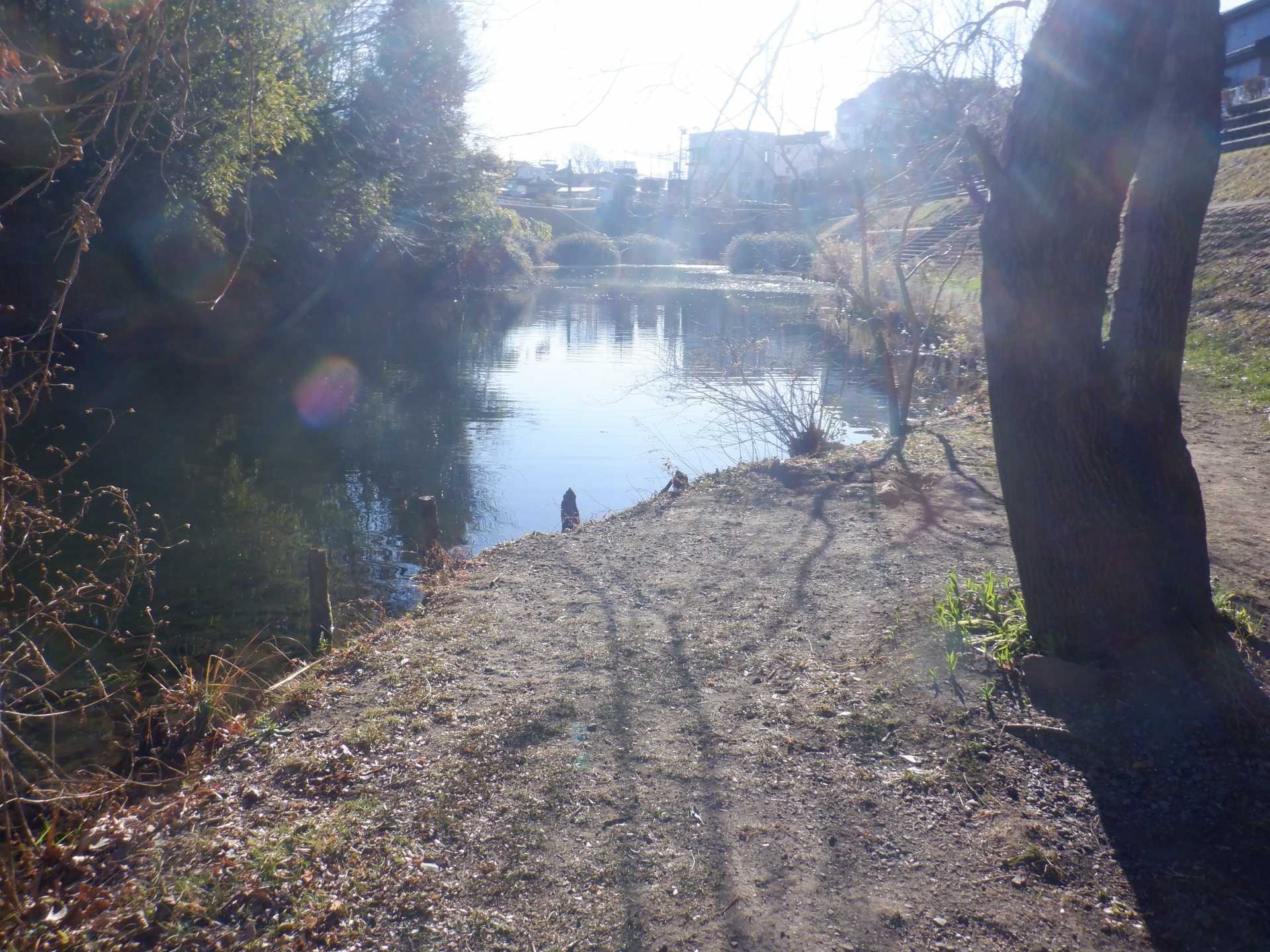 今日の作業は、水路対岸にあるクロガネモチ6本とエノキの伐採です。エノキは問