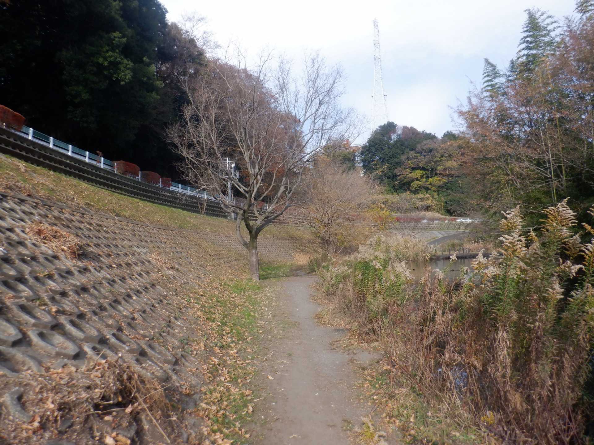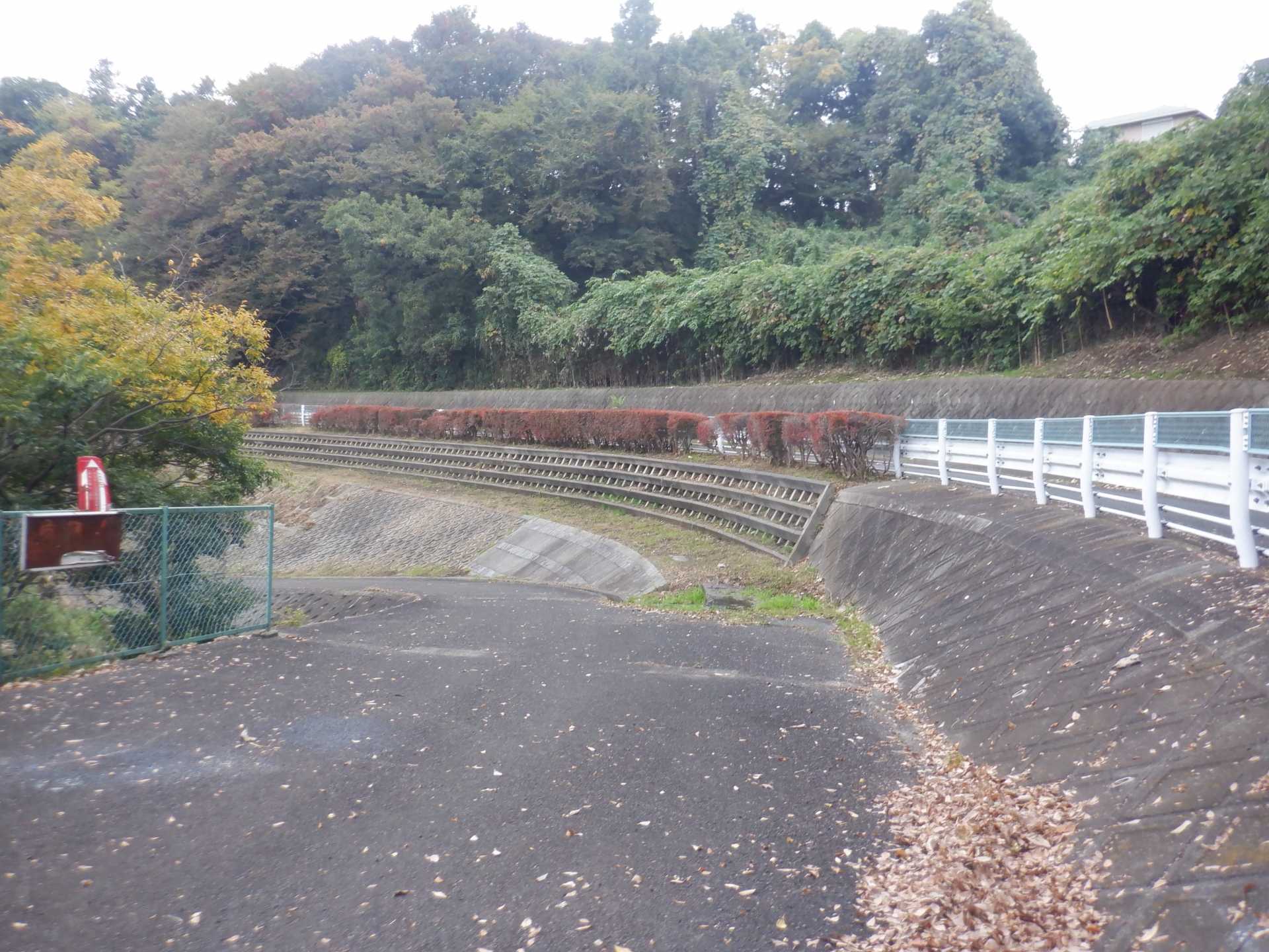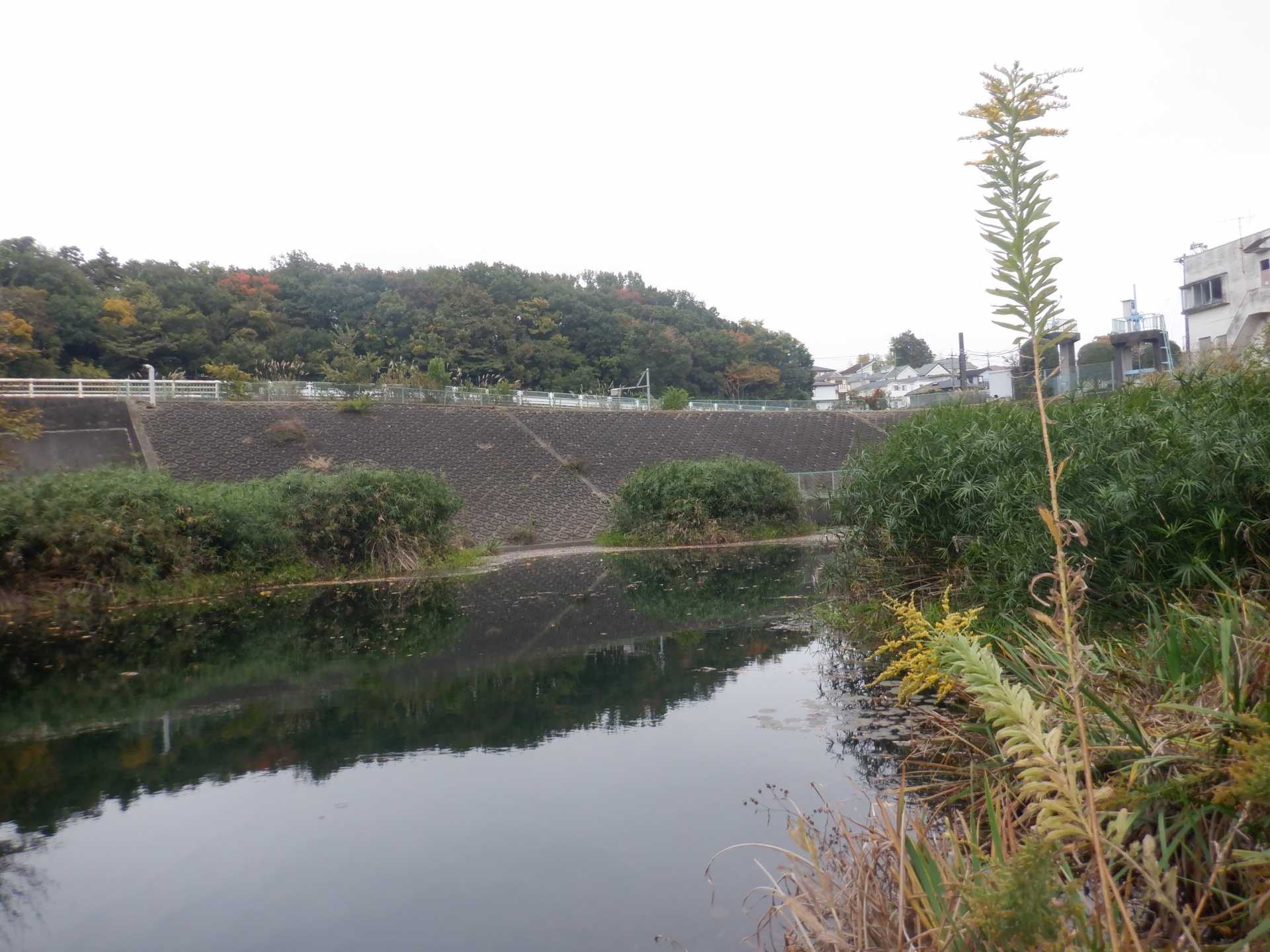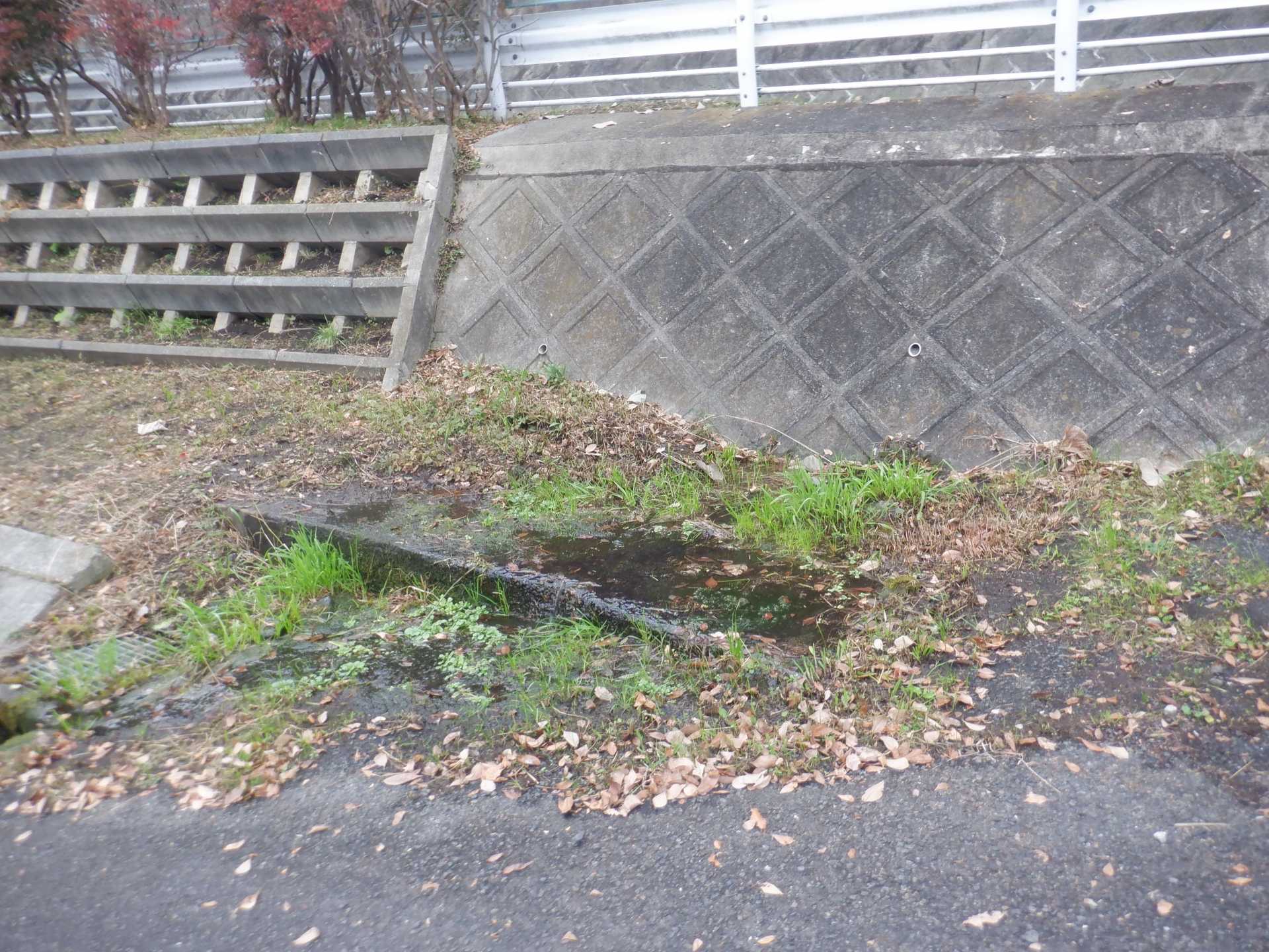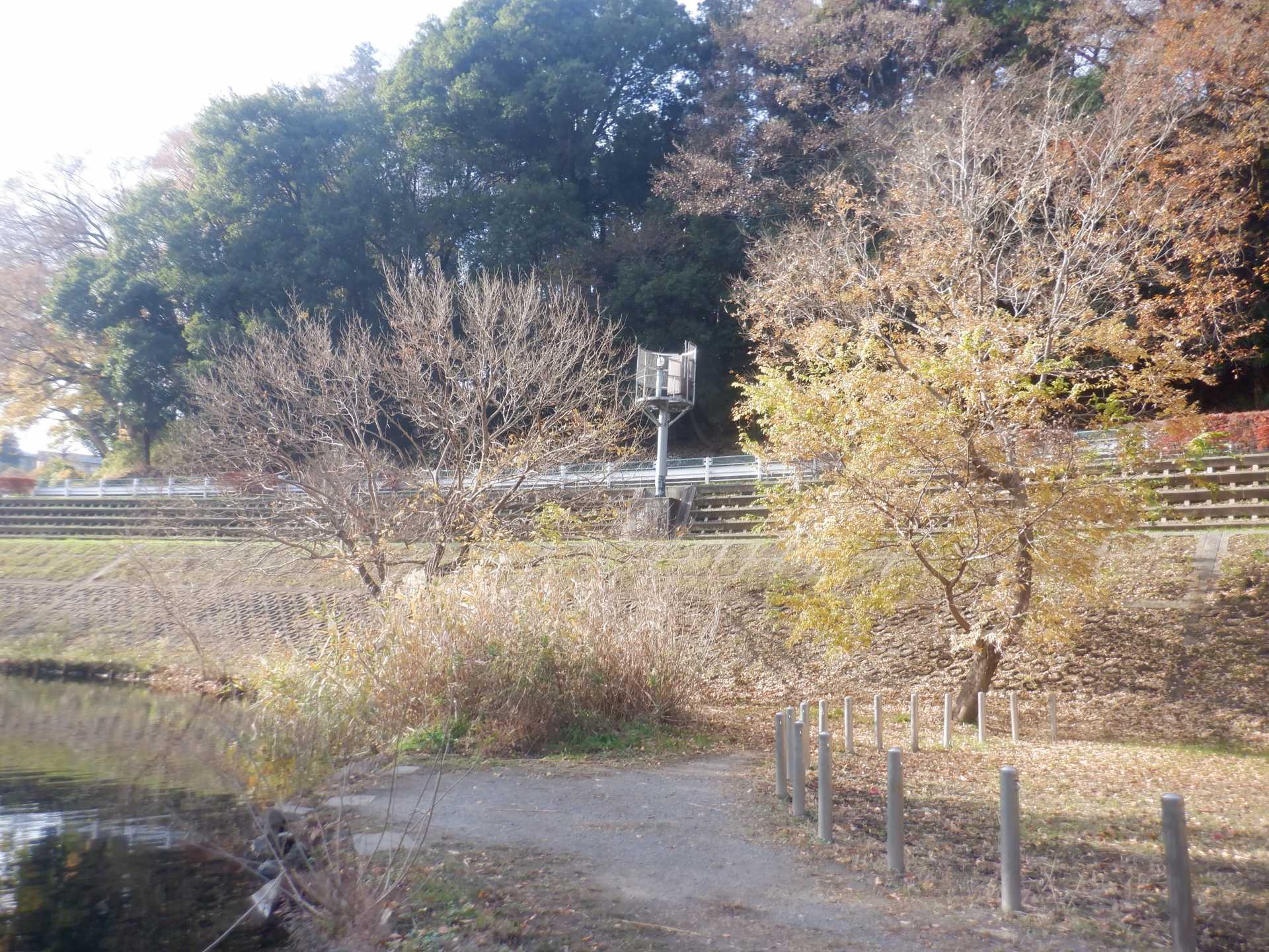 題なく倒せましたが、モチは遊水地の壁に倒れかかり、びくともしません。擁壁上で