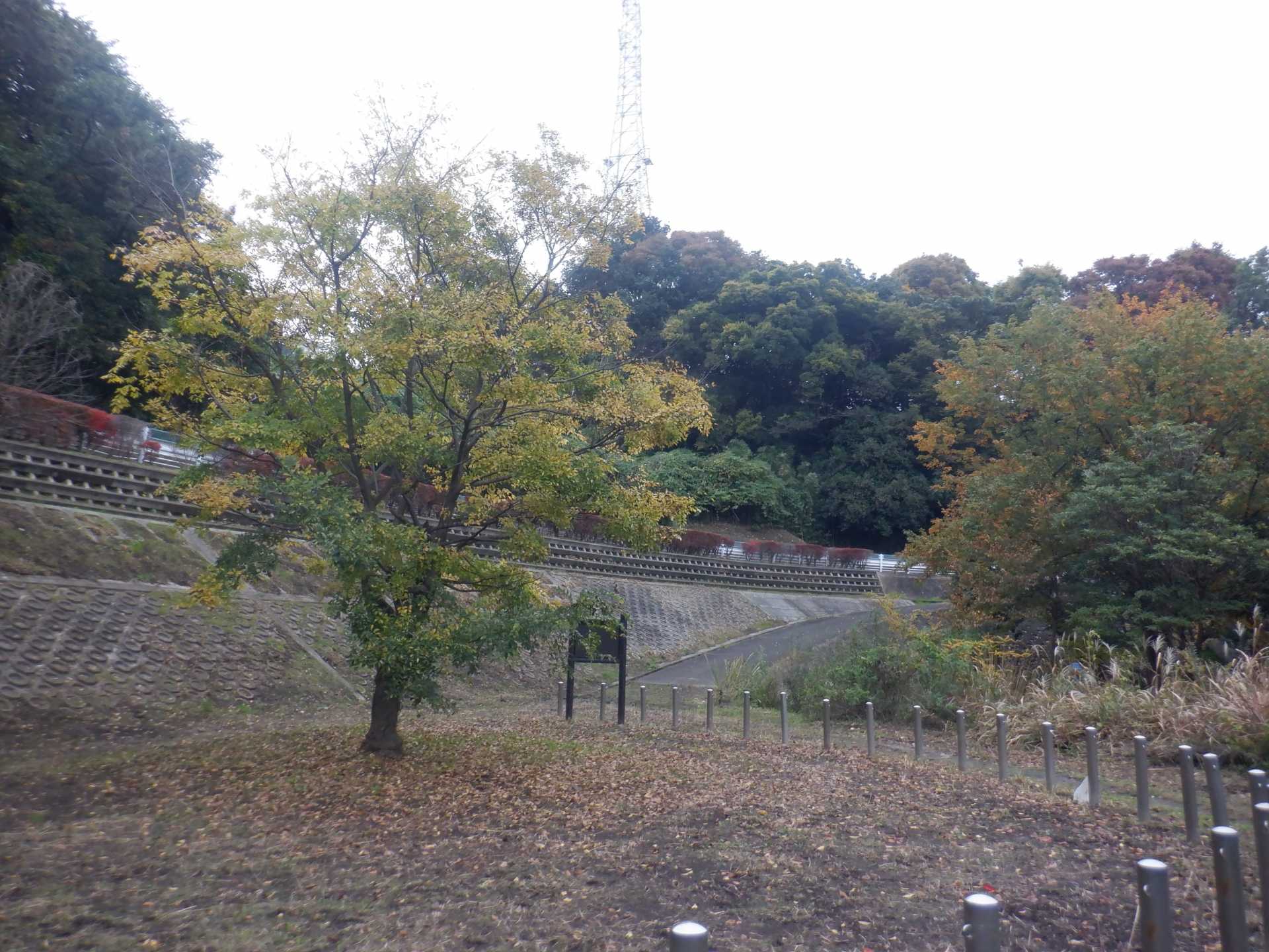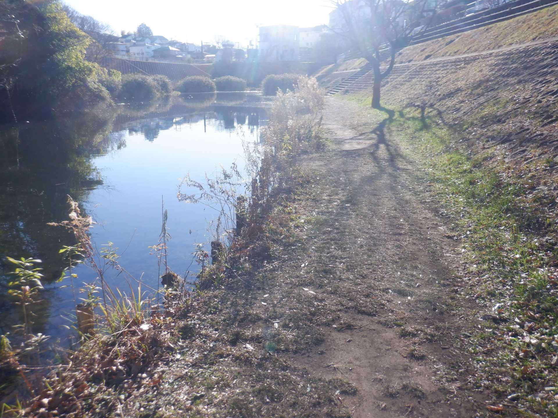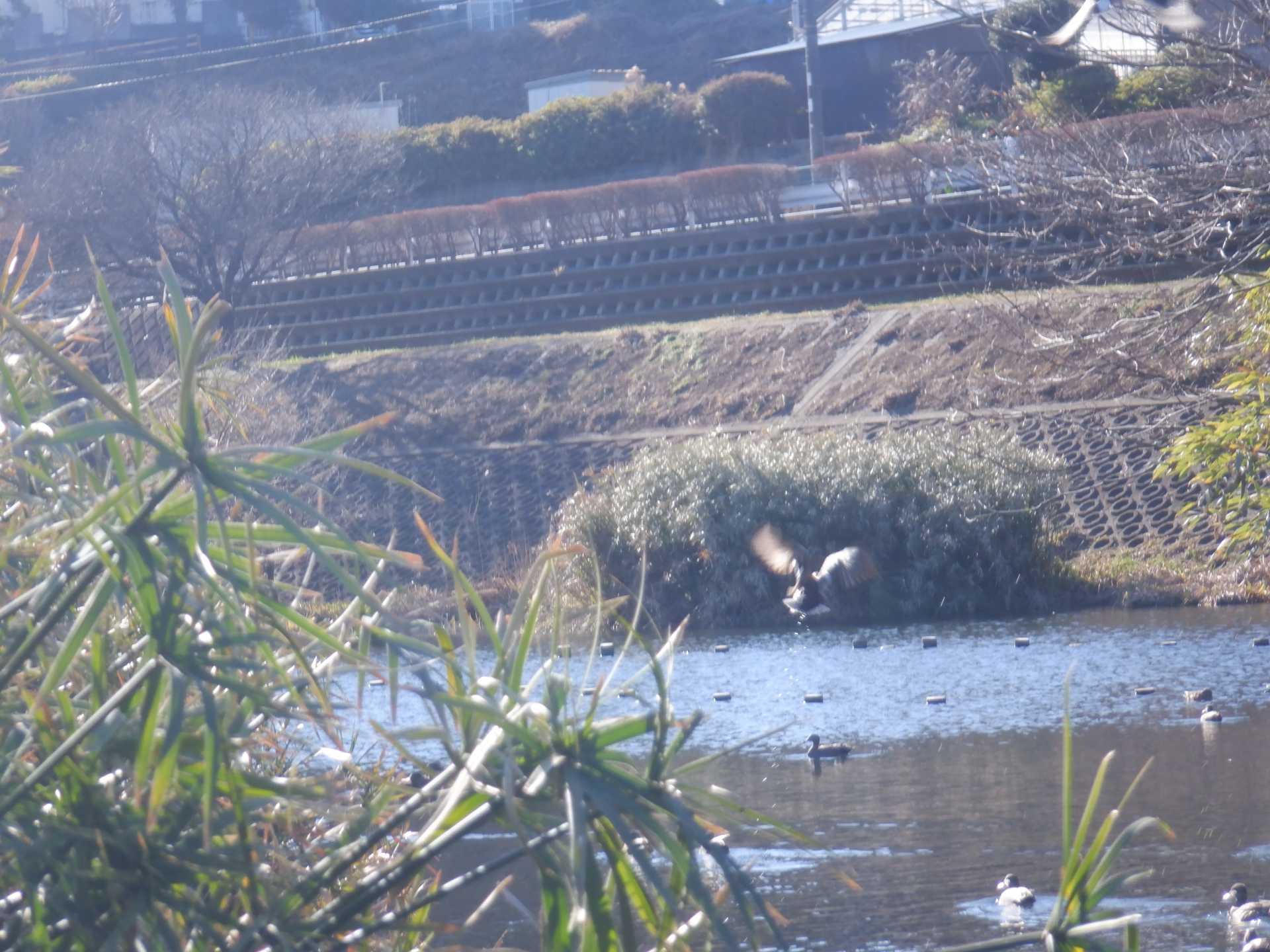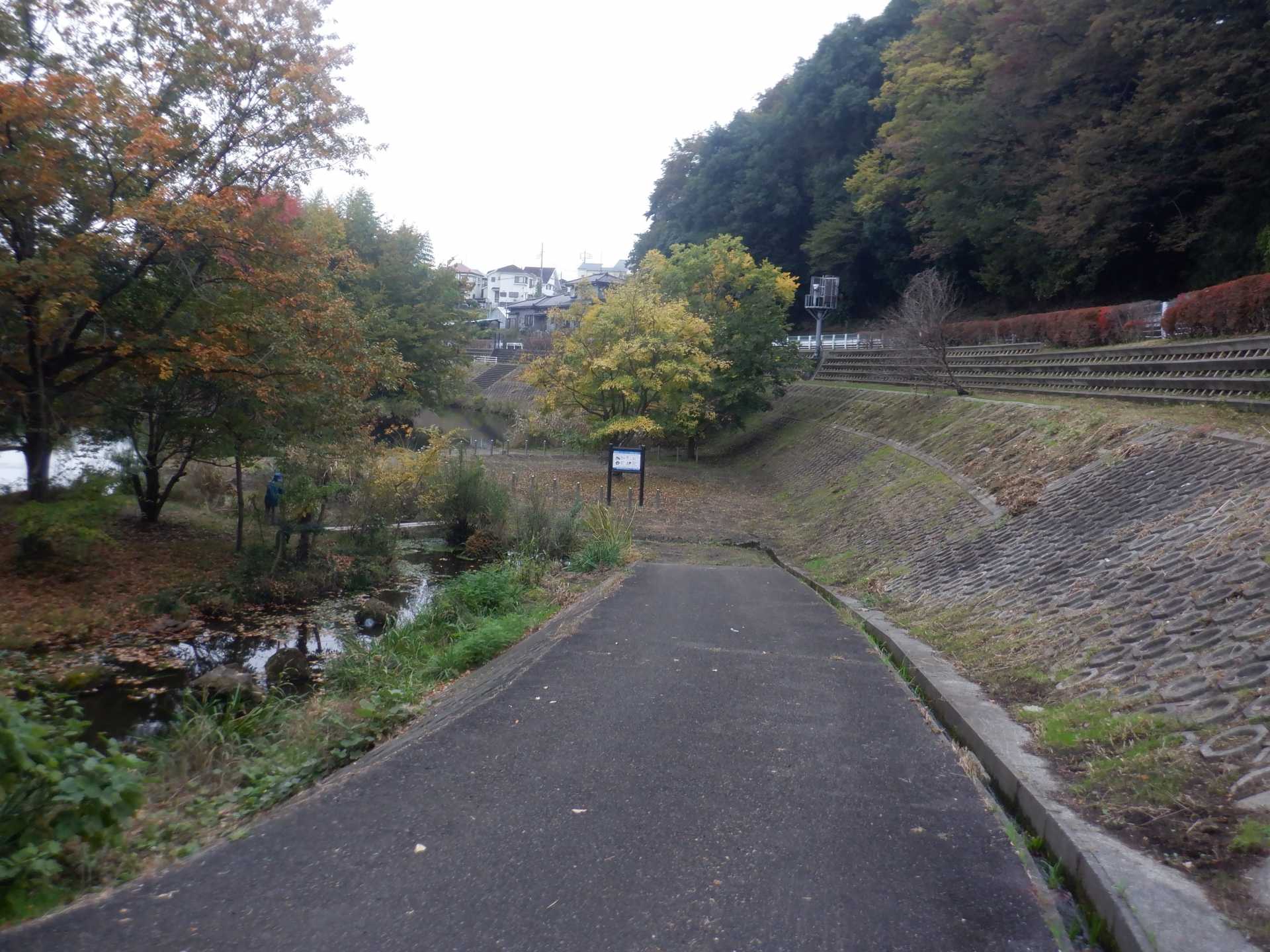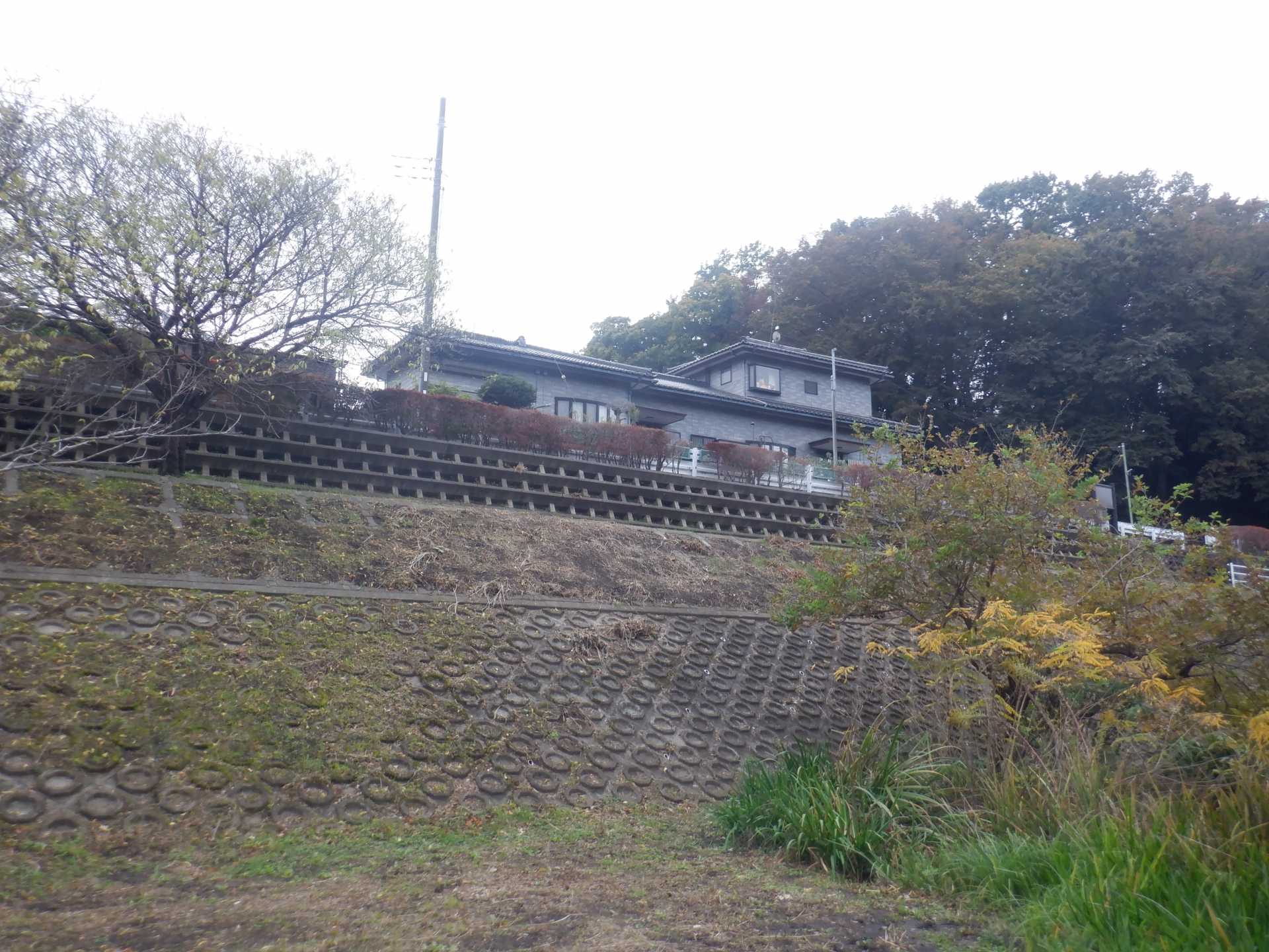 題なく倒せましたが、モチは遊水地の壁に倒れかかり、びくともしません。擁壁上で
