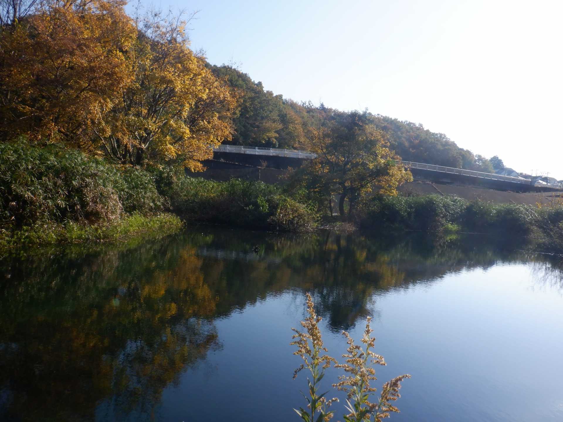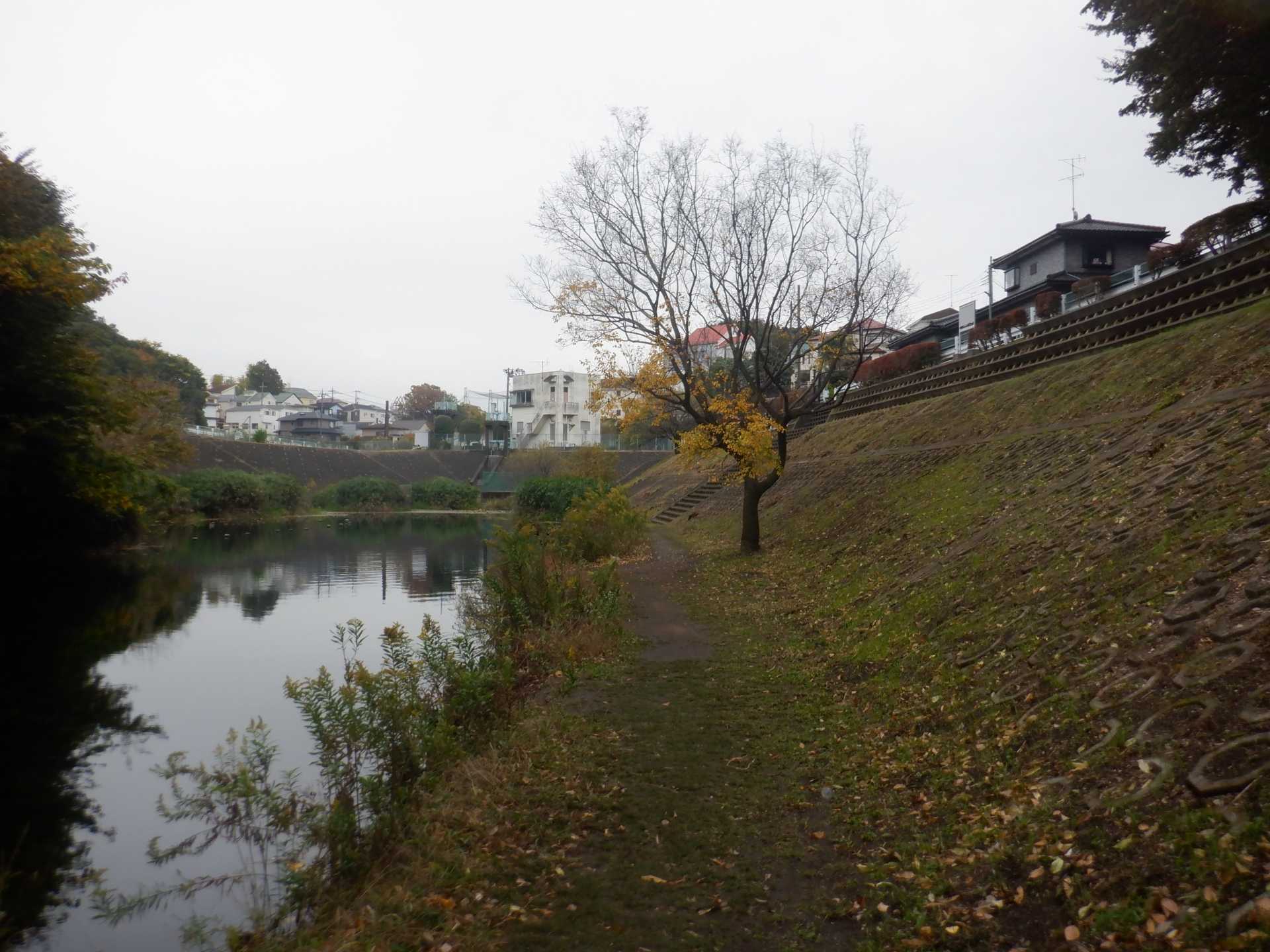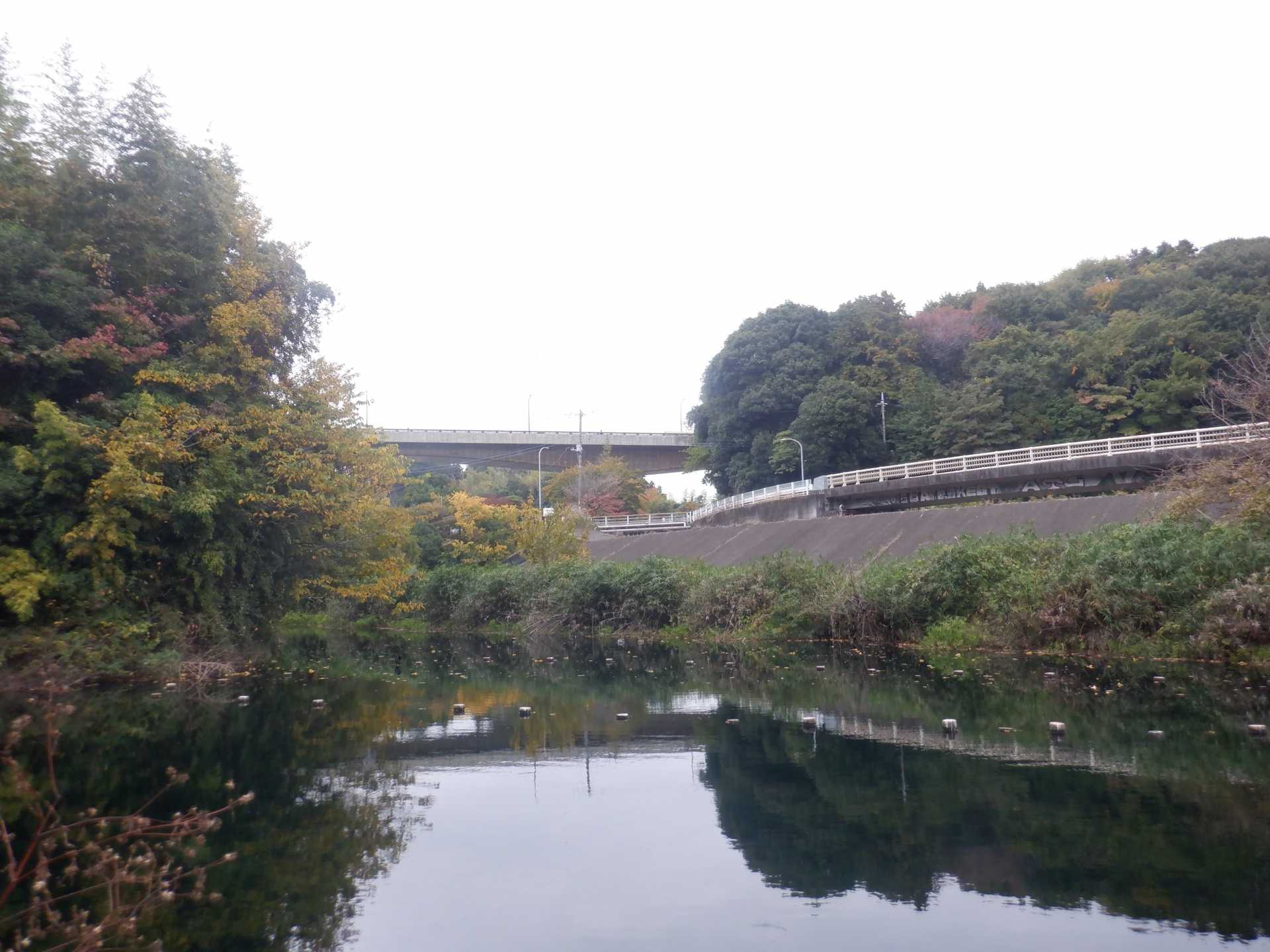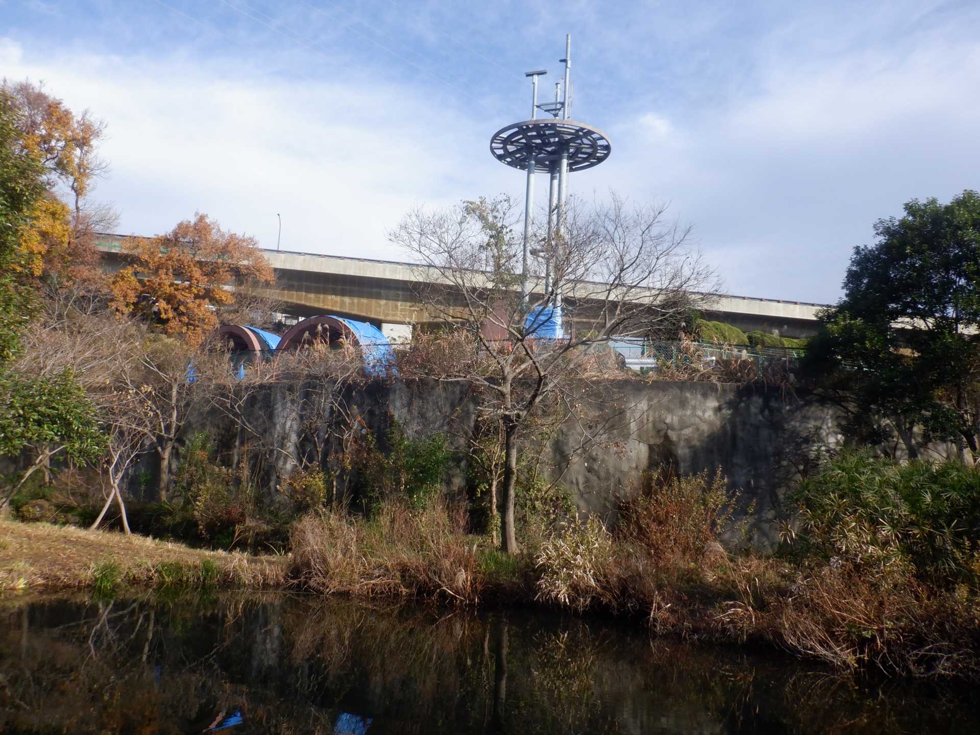 題なく倒せましたが、モチは遊水地の壁に倒れかかり、びくともしません。擁壁上で