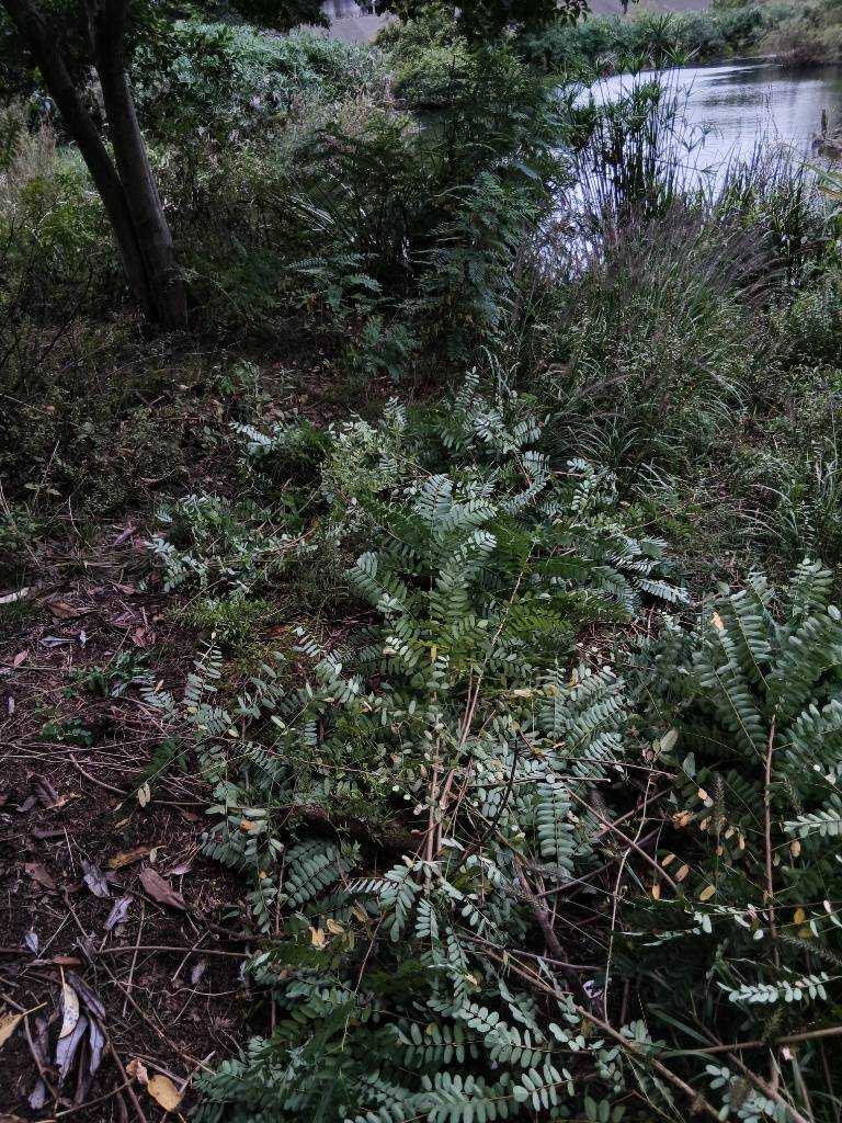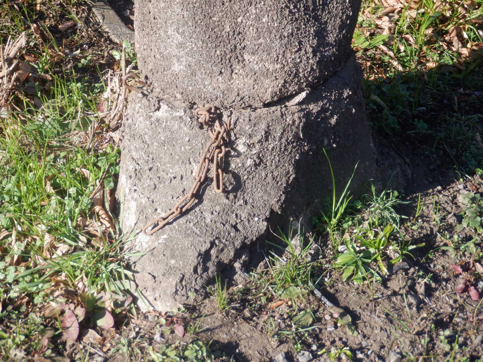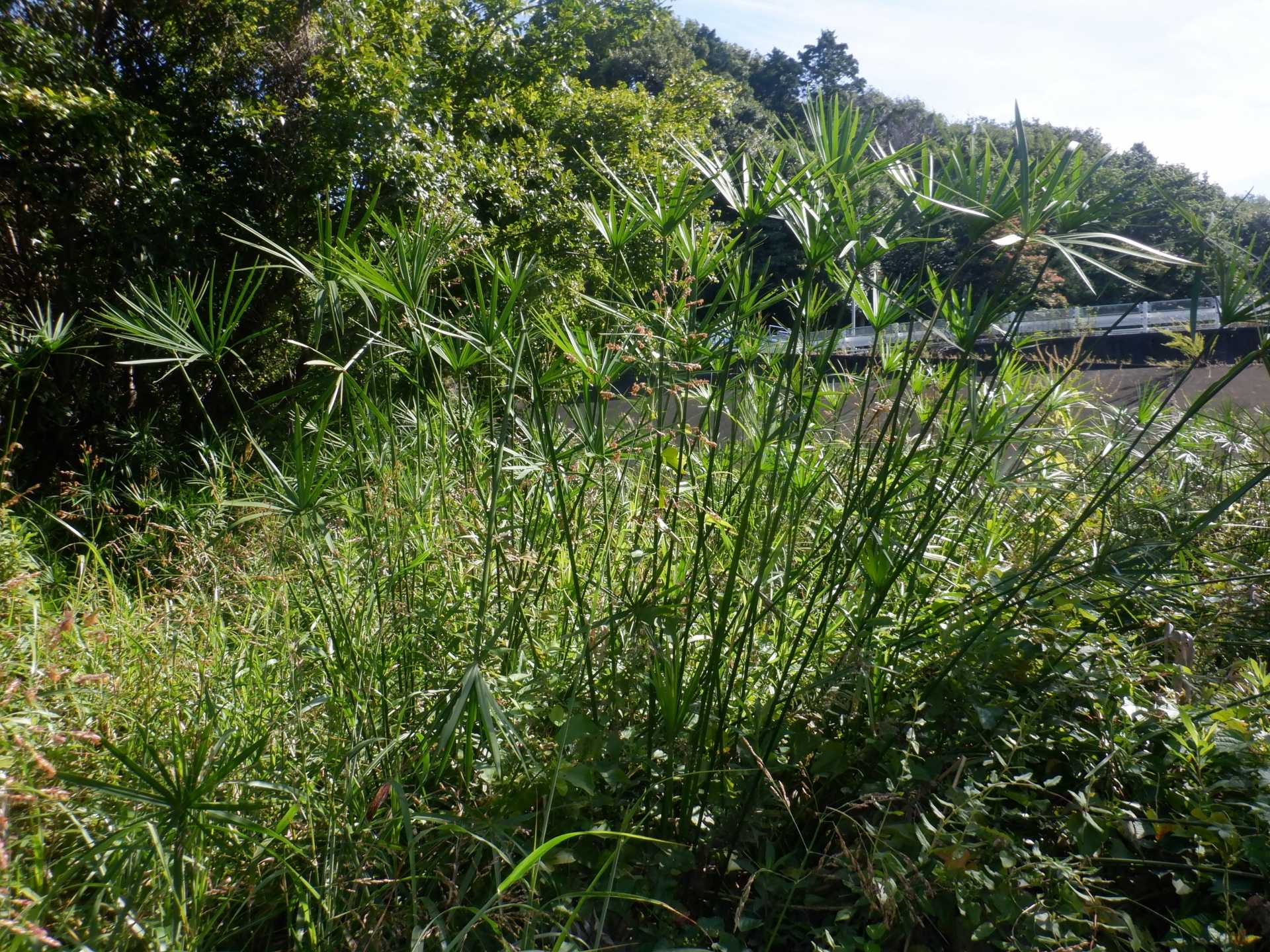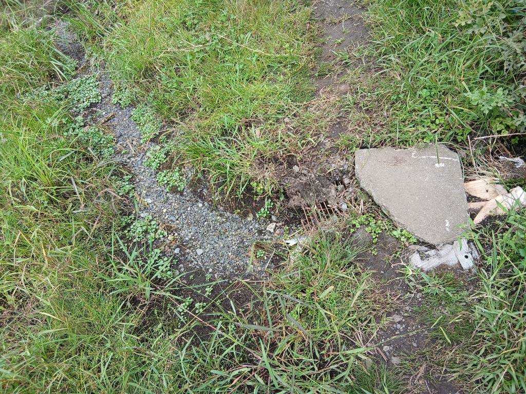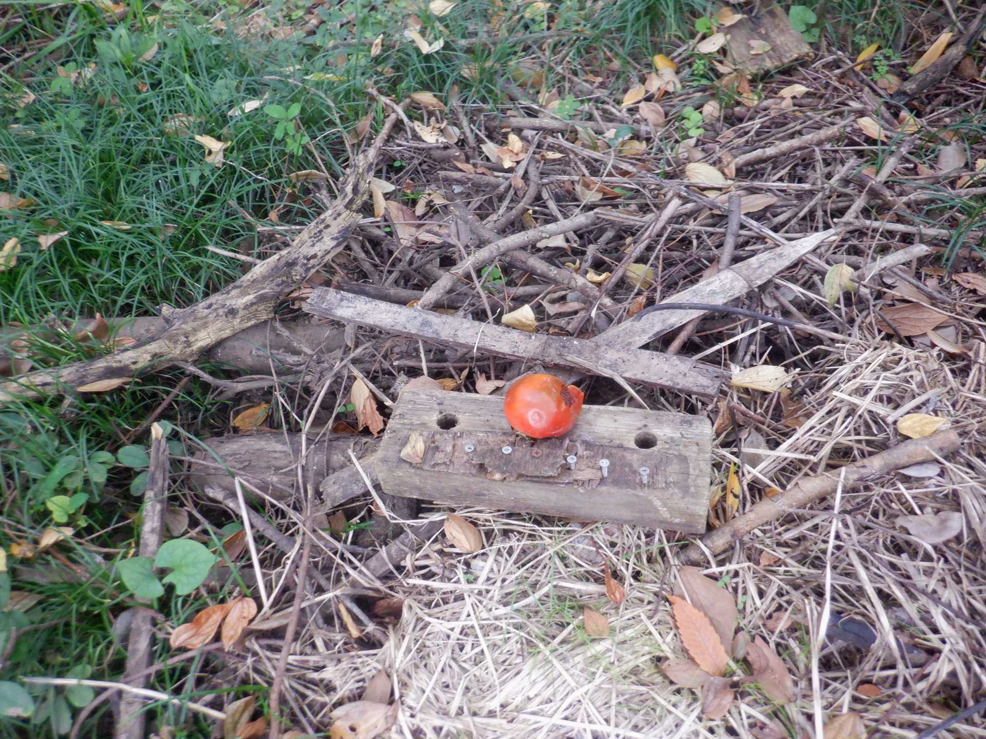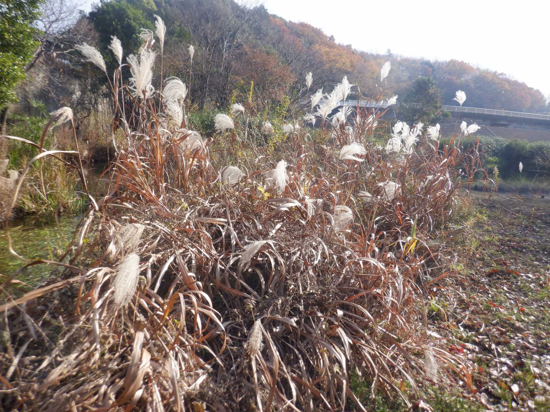 題なく倒せましたが、モチは遊水地の壁に倒れかかり、びくともしません。擁壁上で
