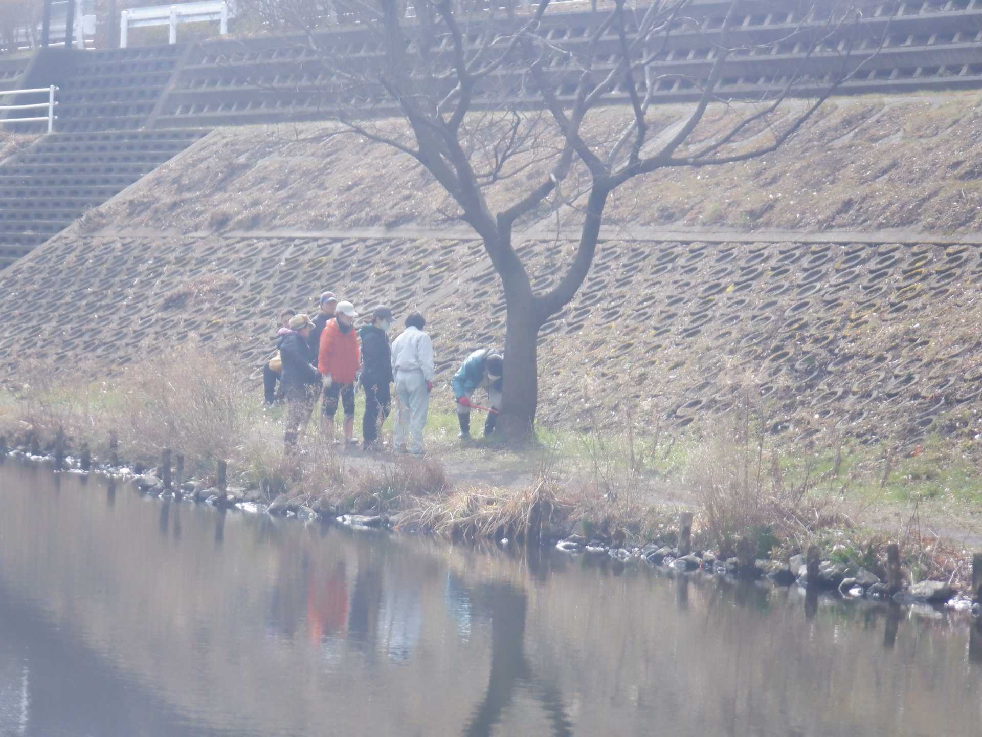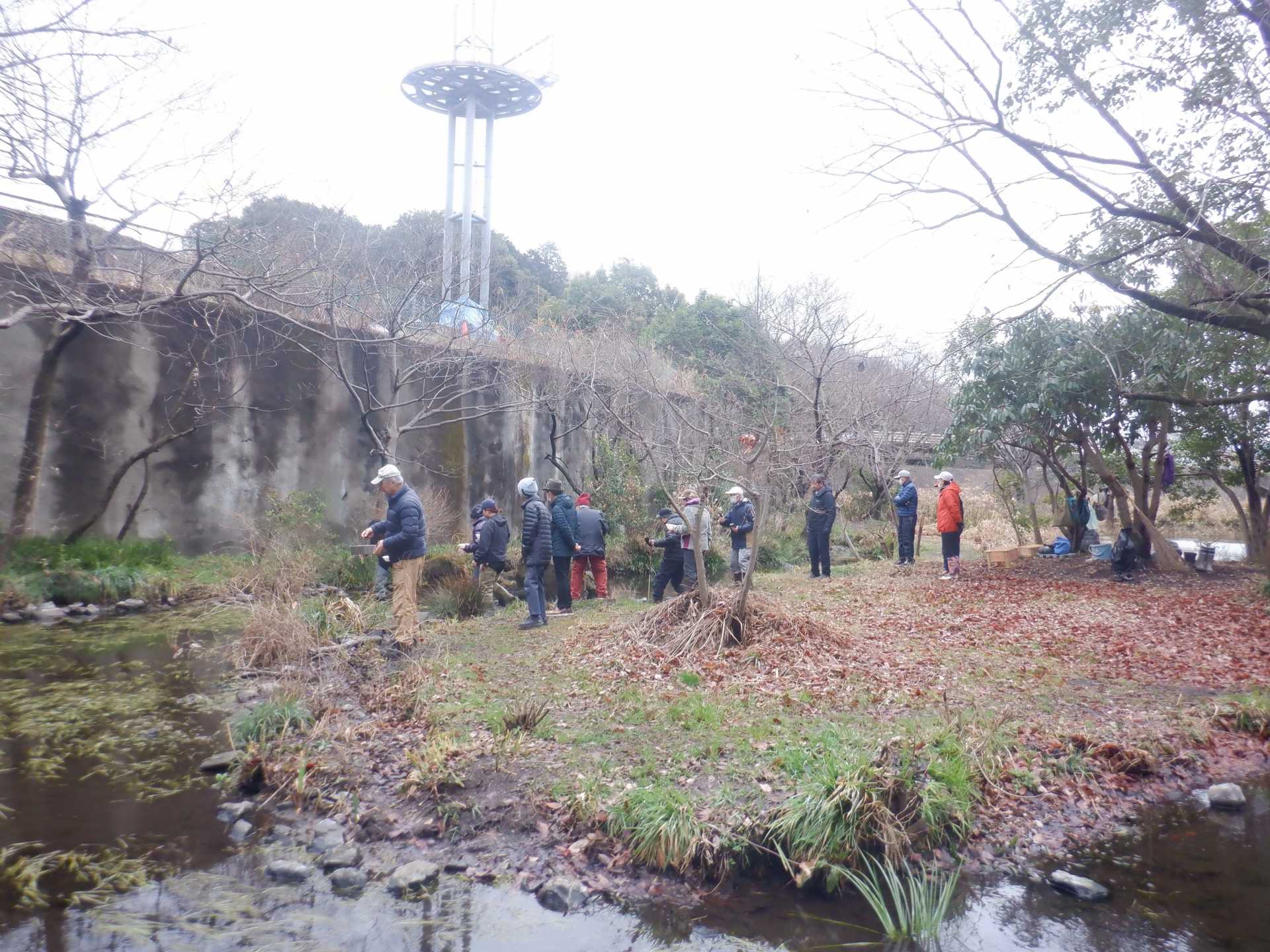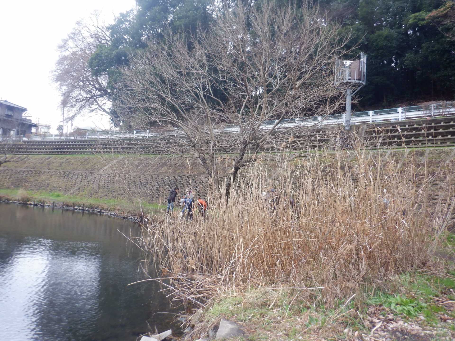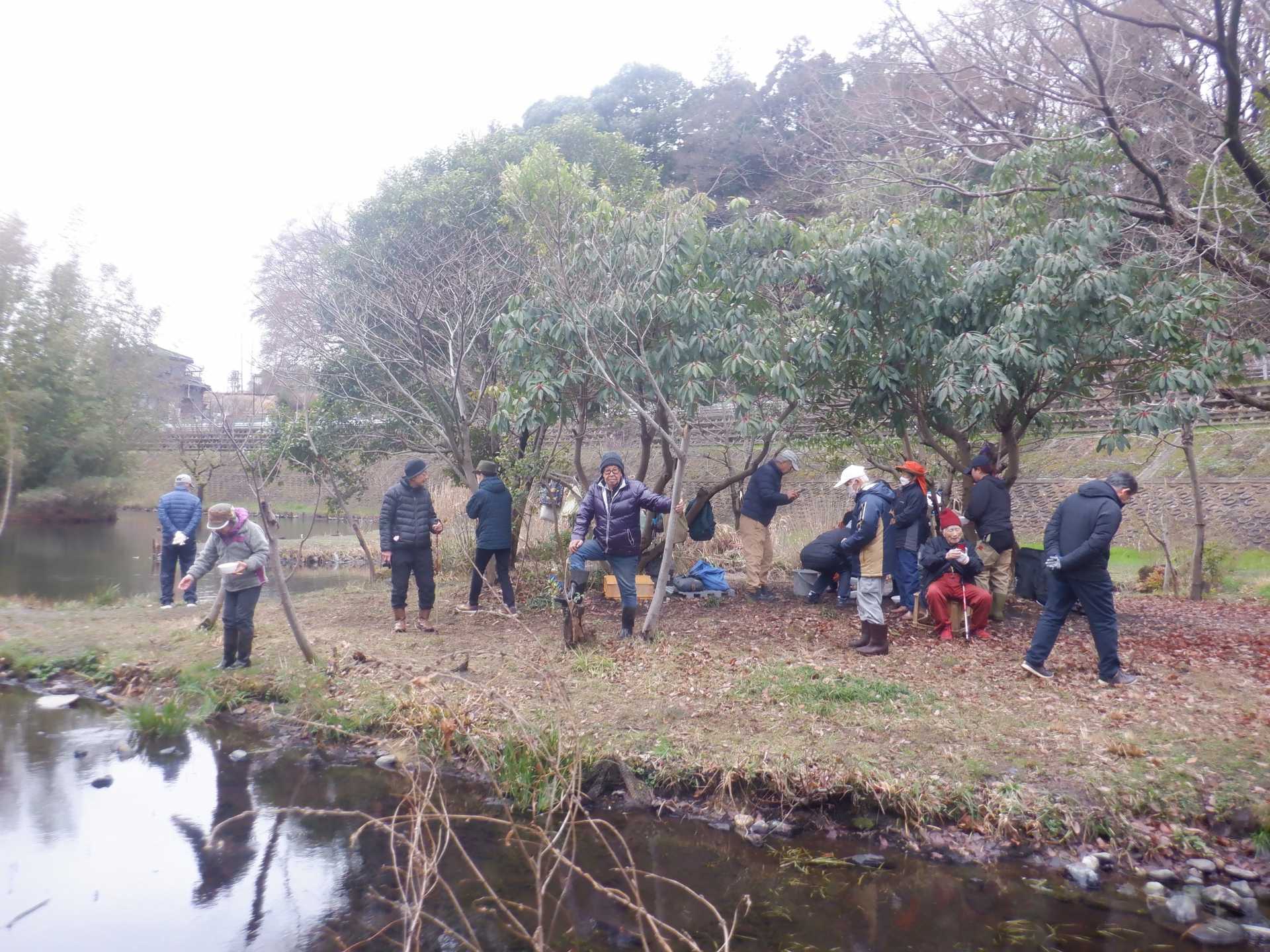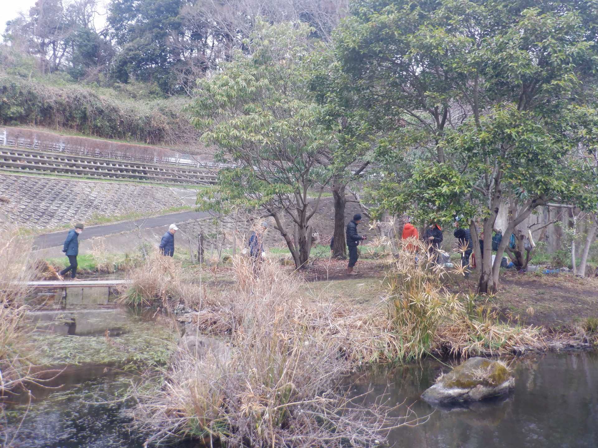 3月7日肌寒い中でのビオトープ作業です。このところ雨の降る日が多く作業でき