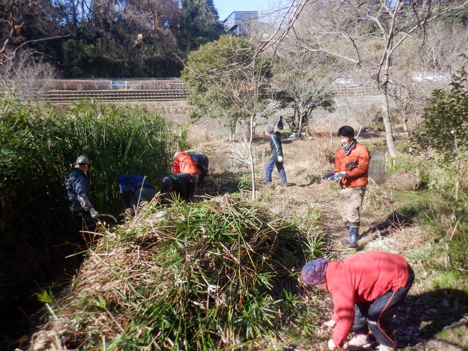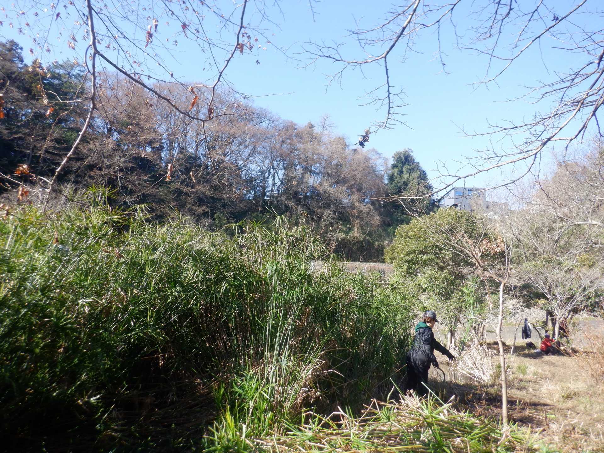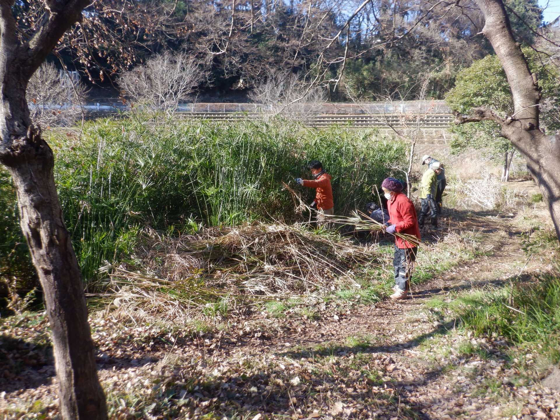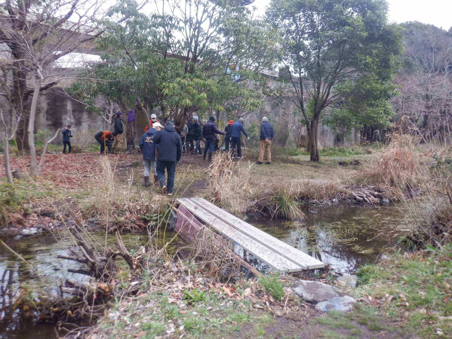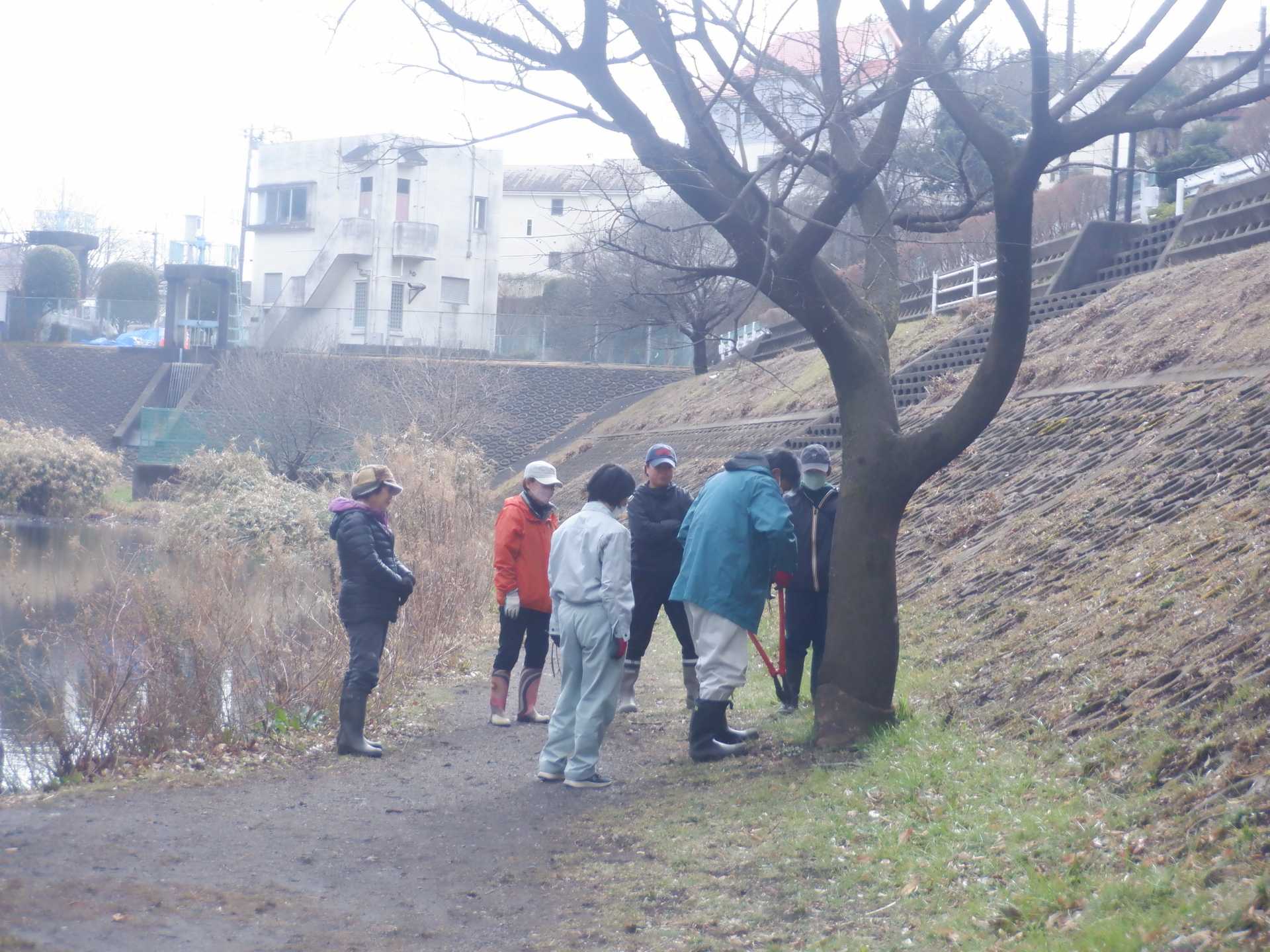 3月7日肌寒い中でのビオトープ作業です。このところ雨の降る日が多く作業でき