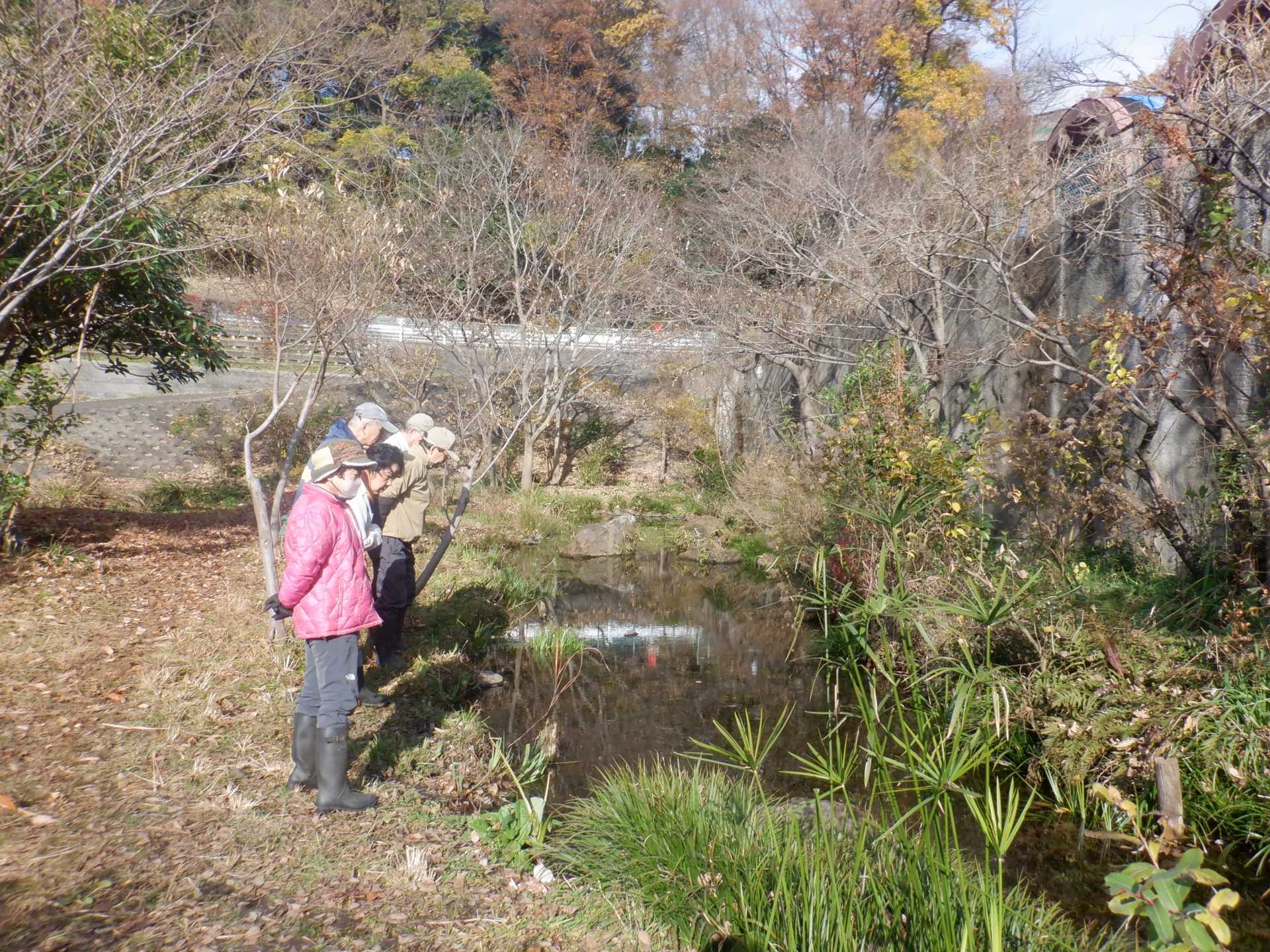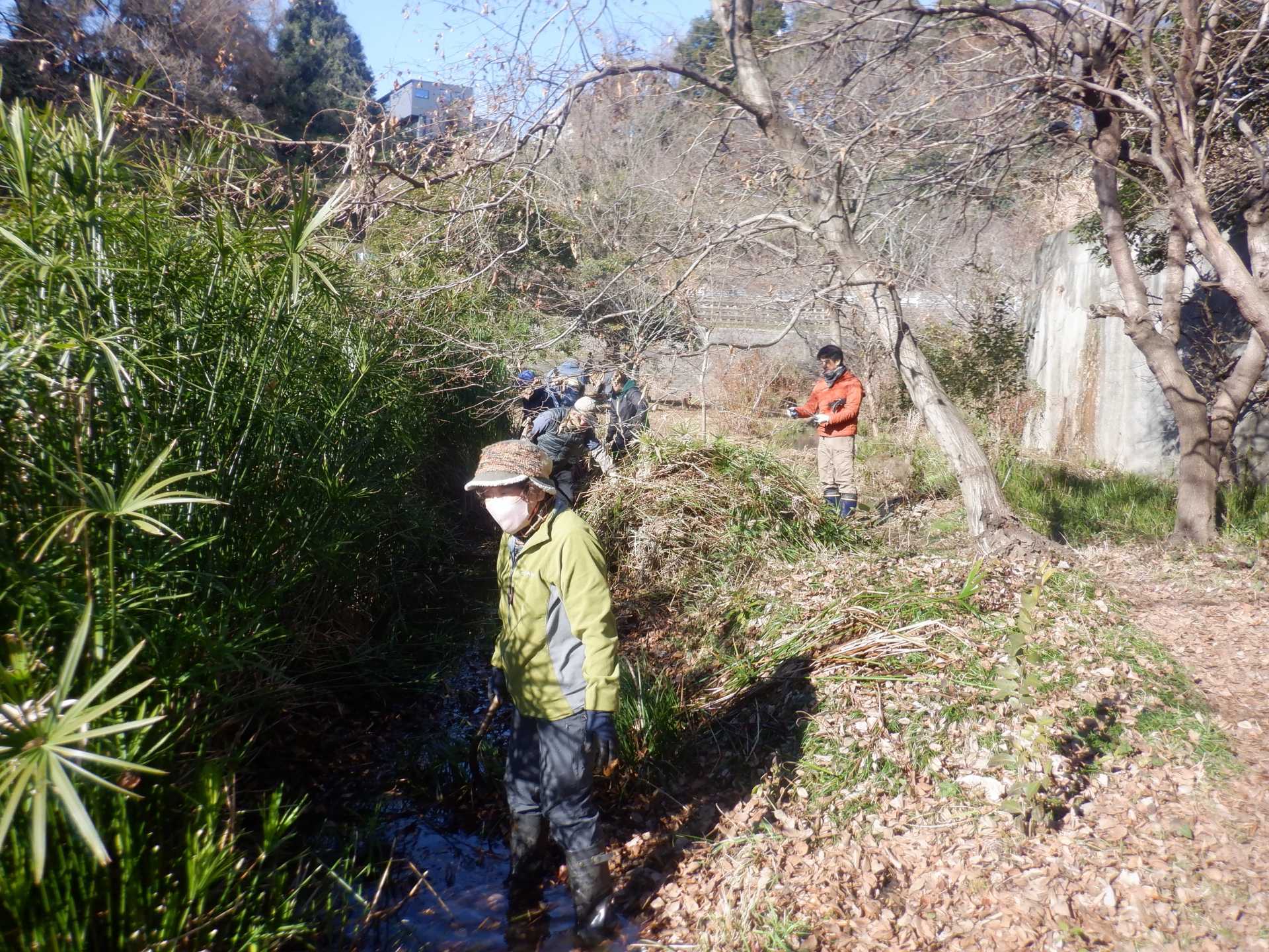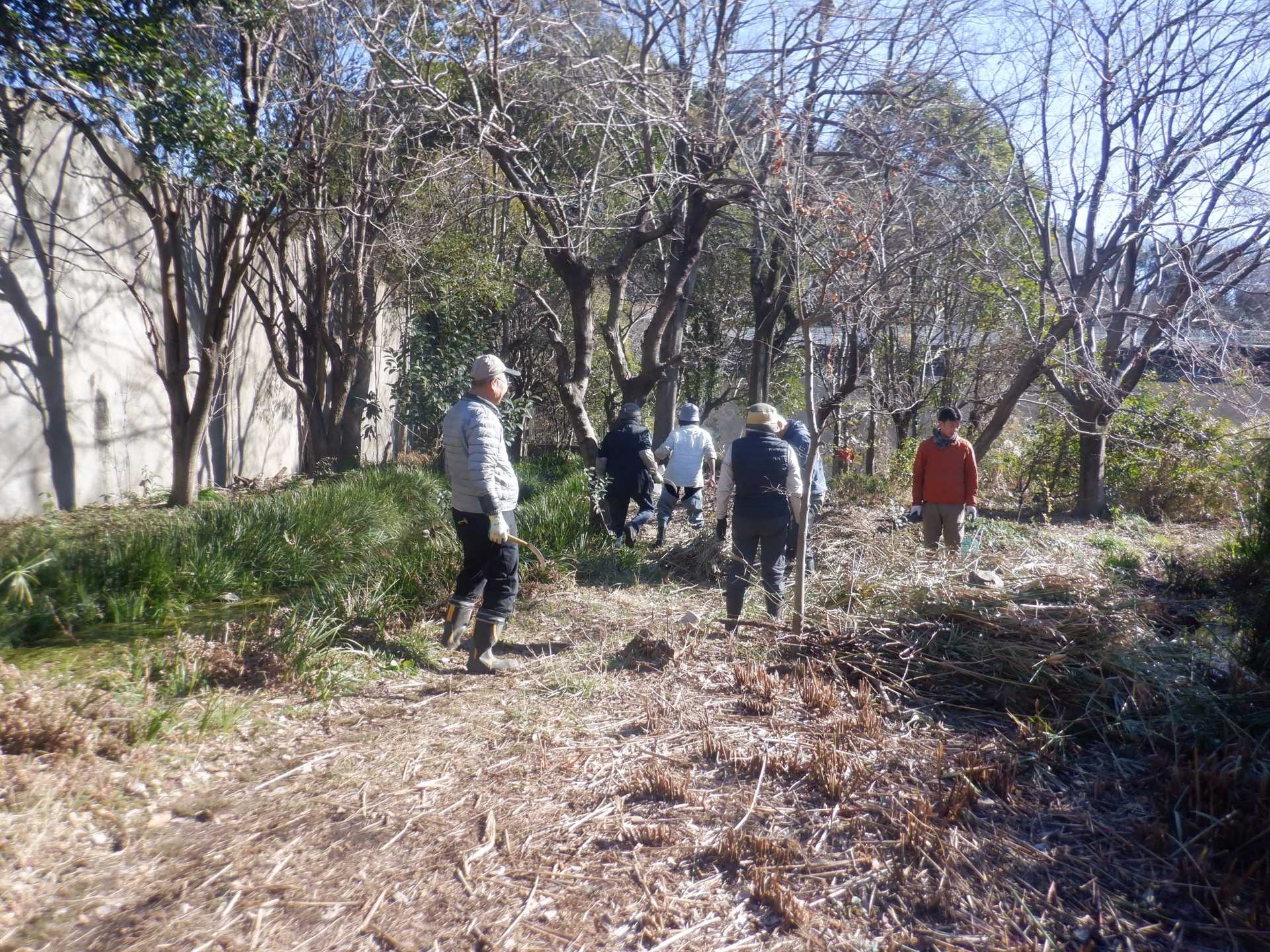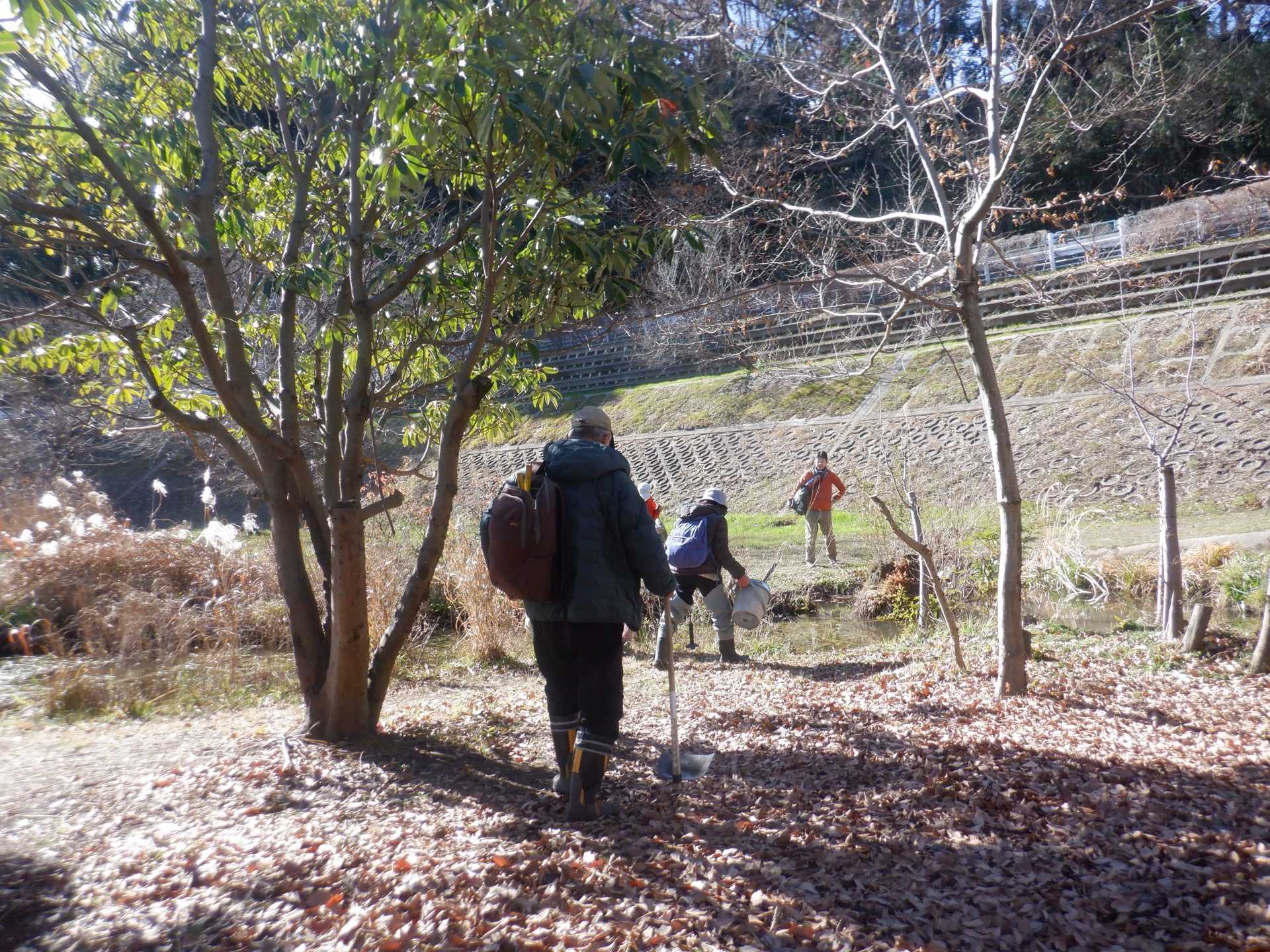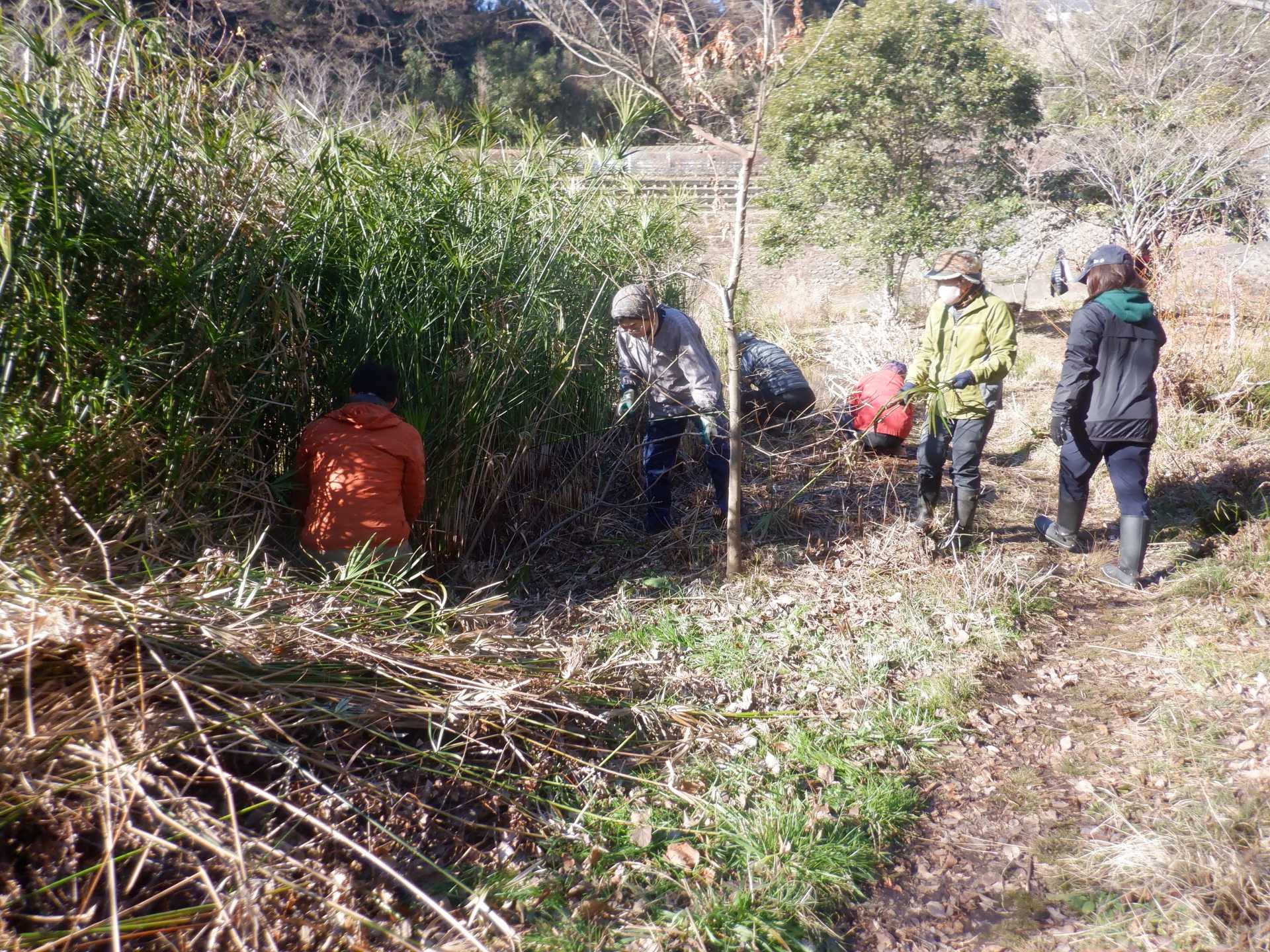 3月7日肌寒い中でのビオトープ作業です。このところ雨の降る日が多く作業でき