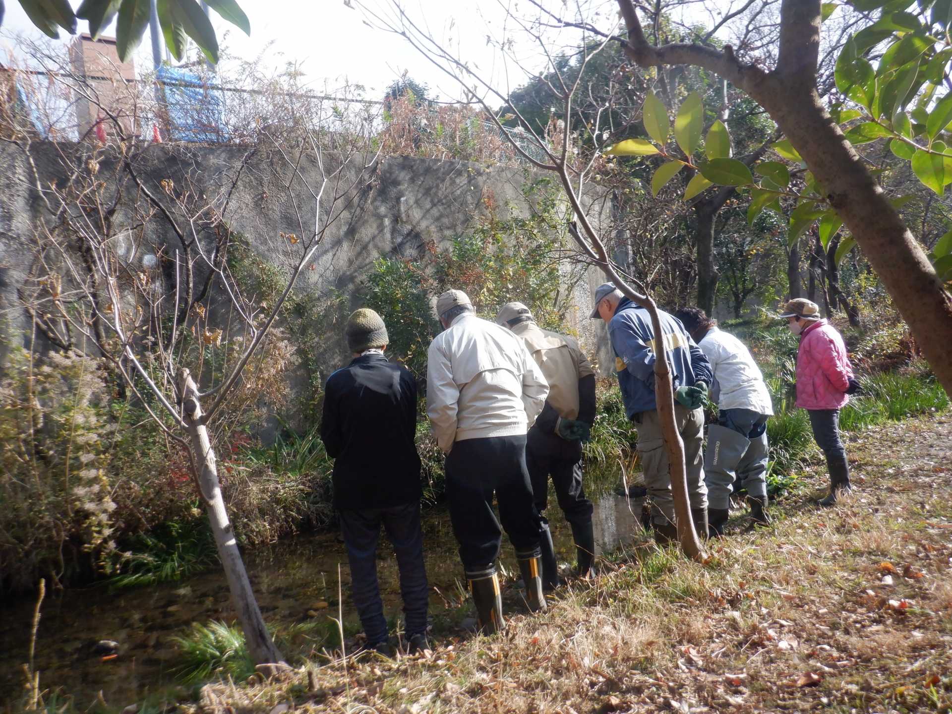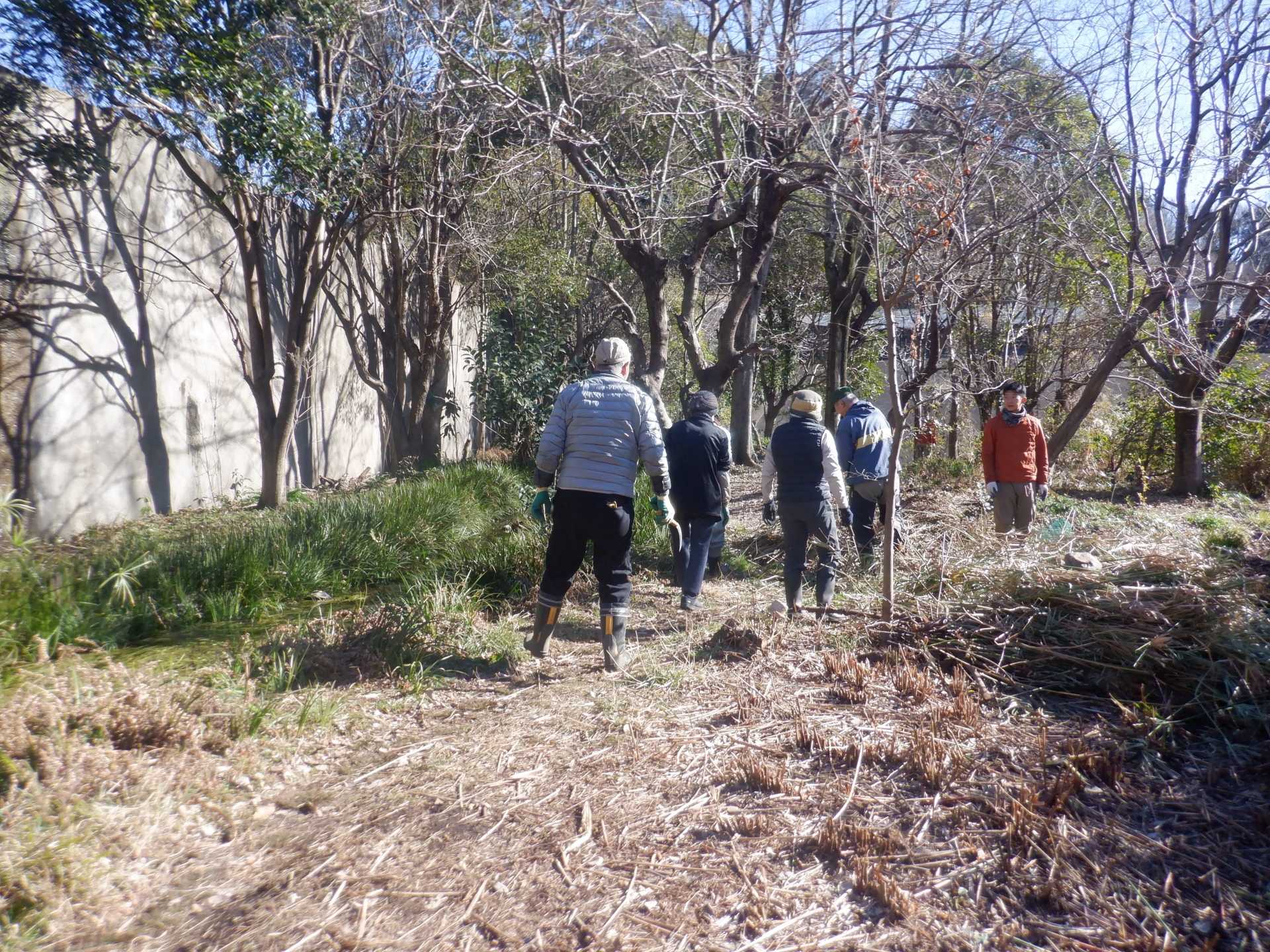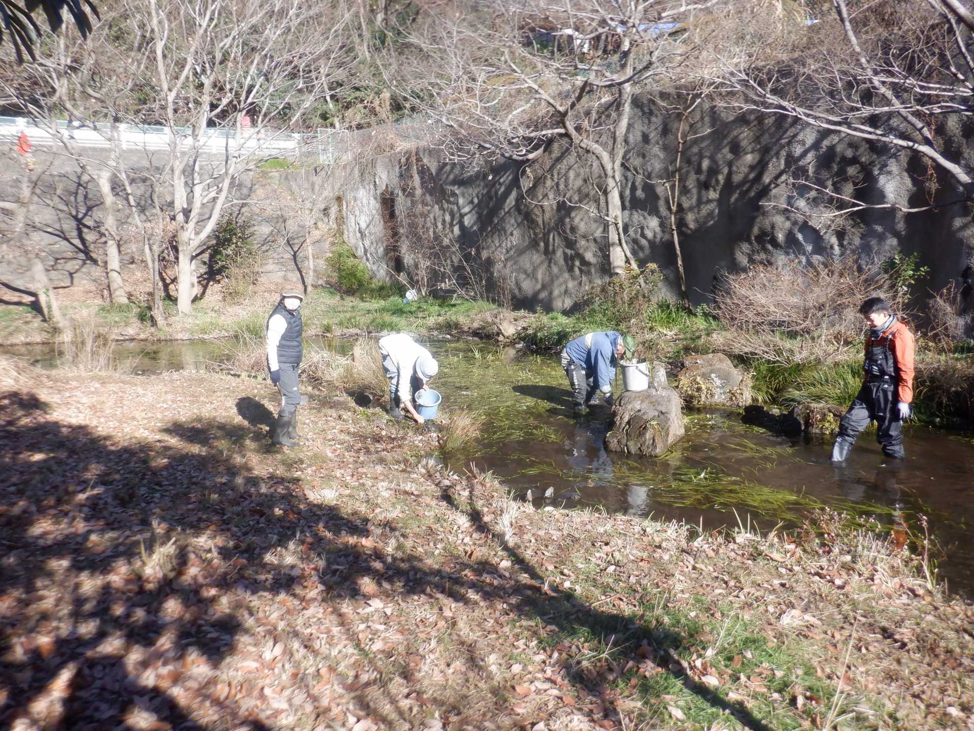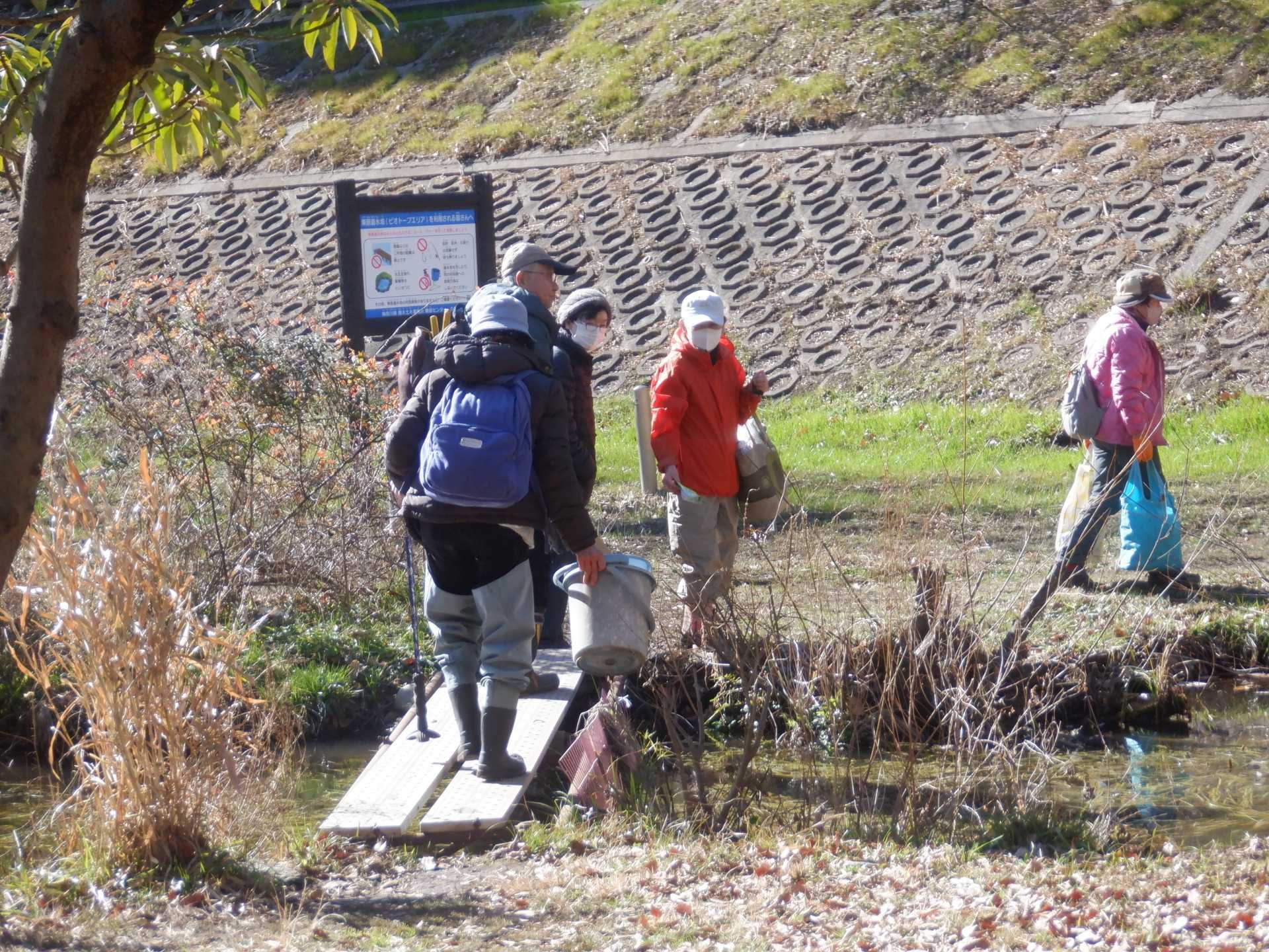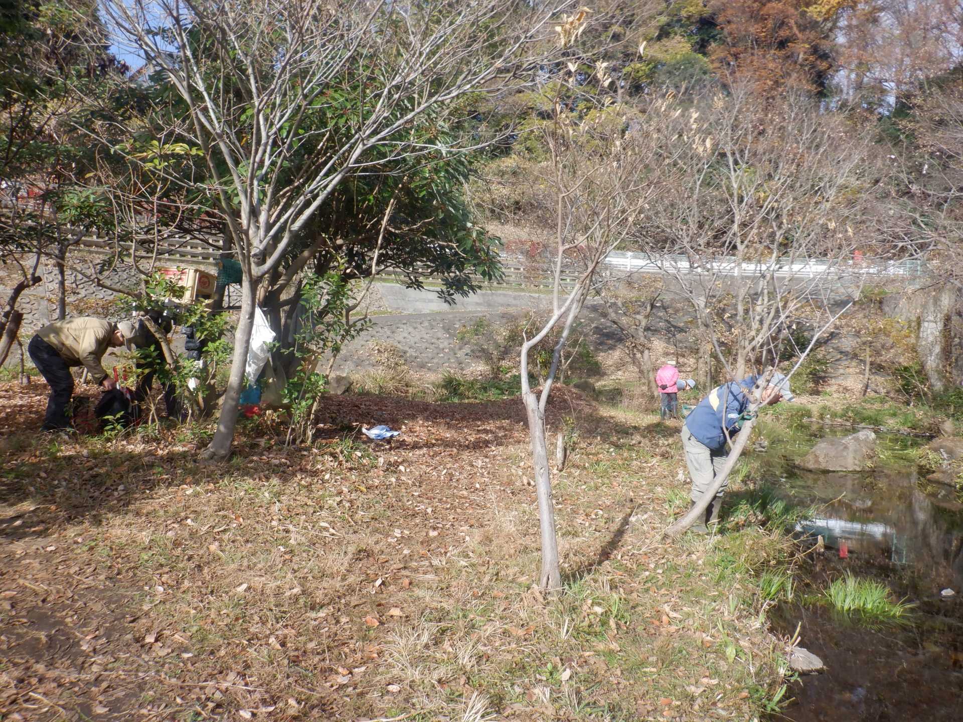 3月7日肌寒い中でのビオトープ作業です。このところ雨の降る日が多く作業でき