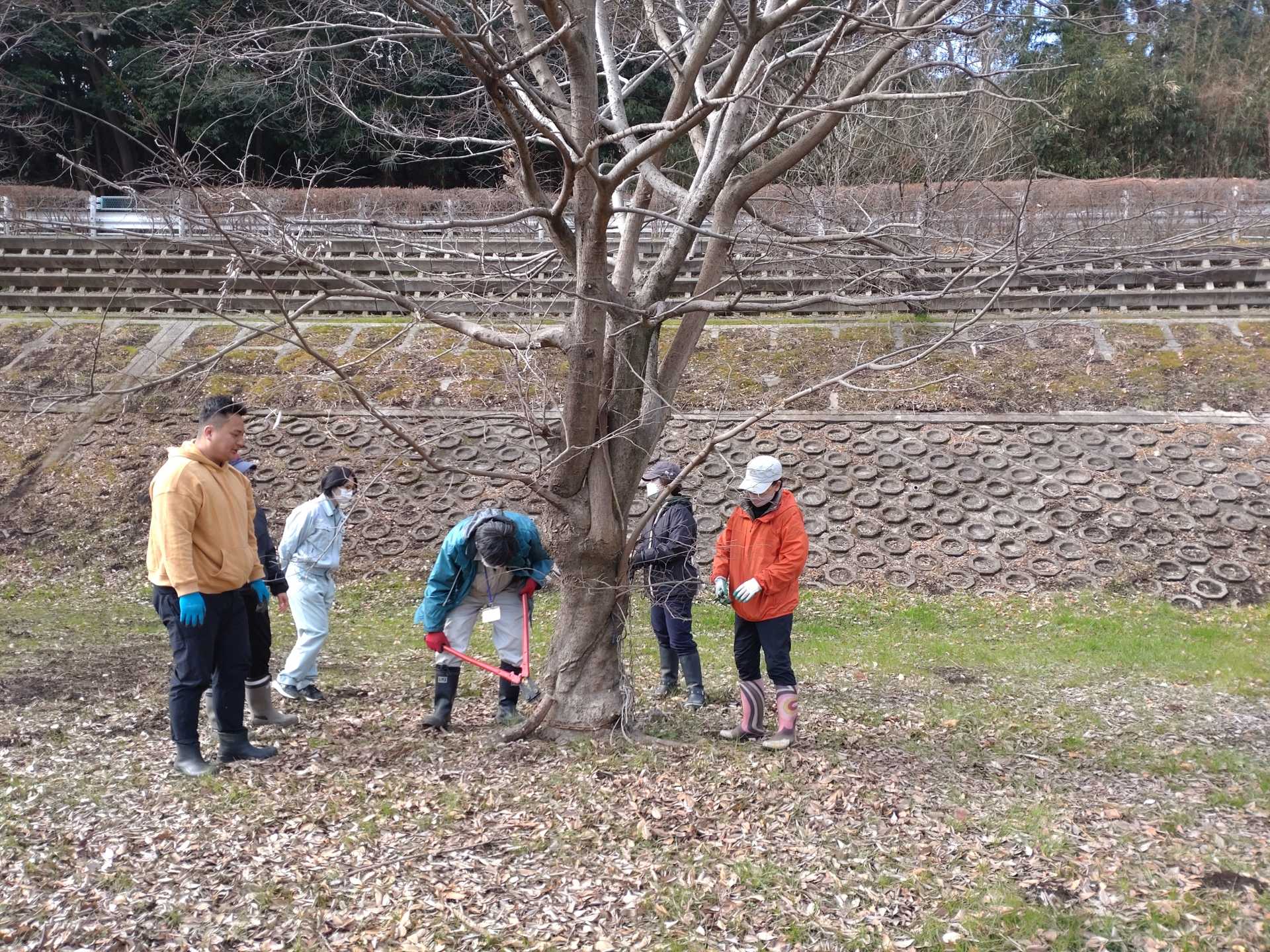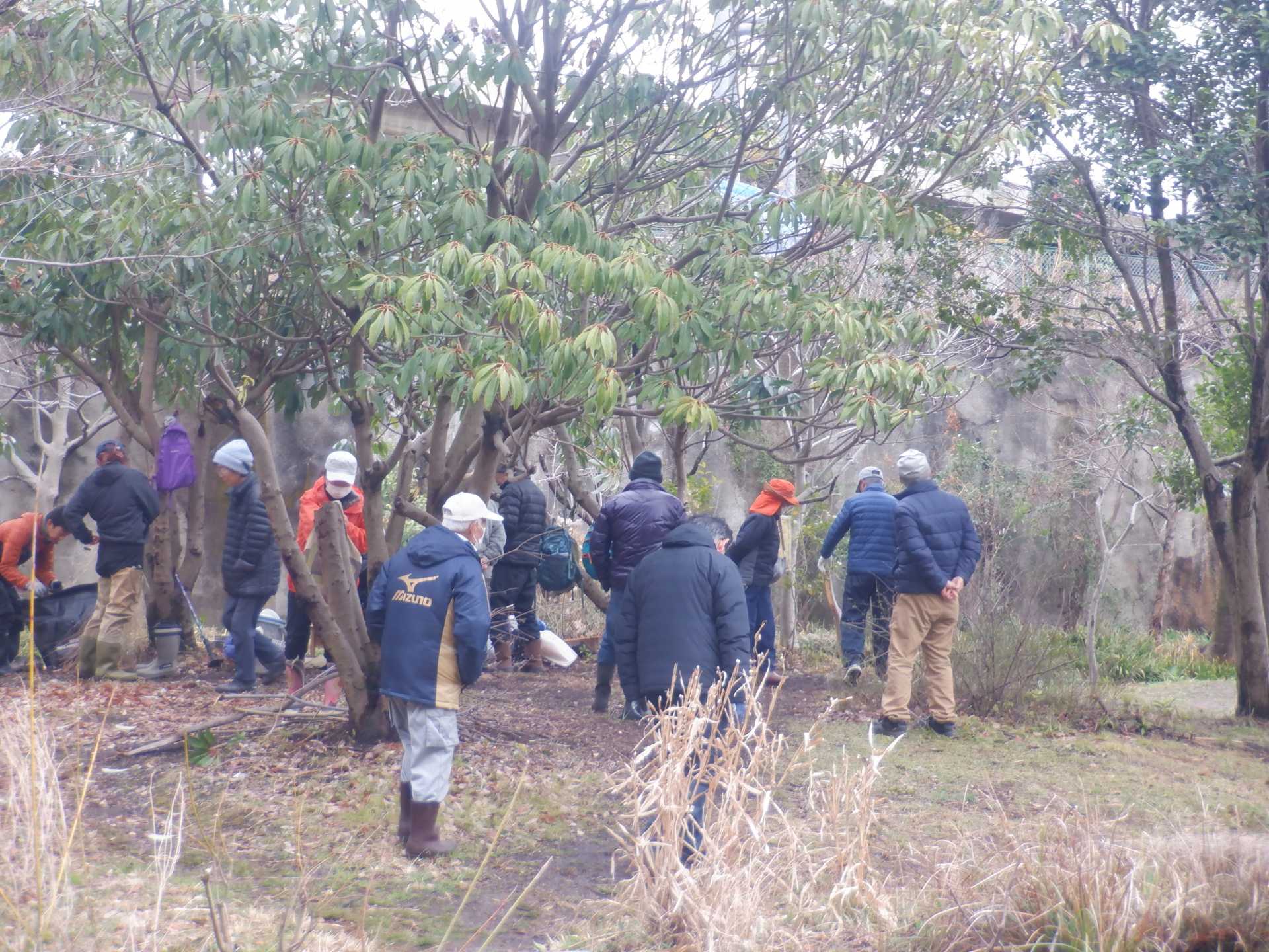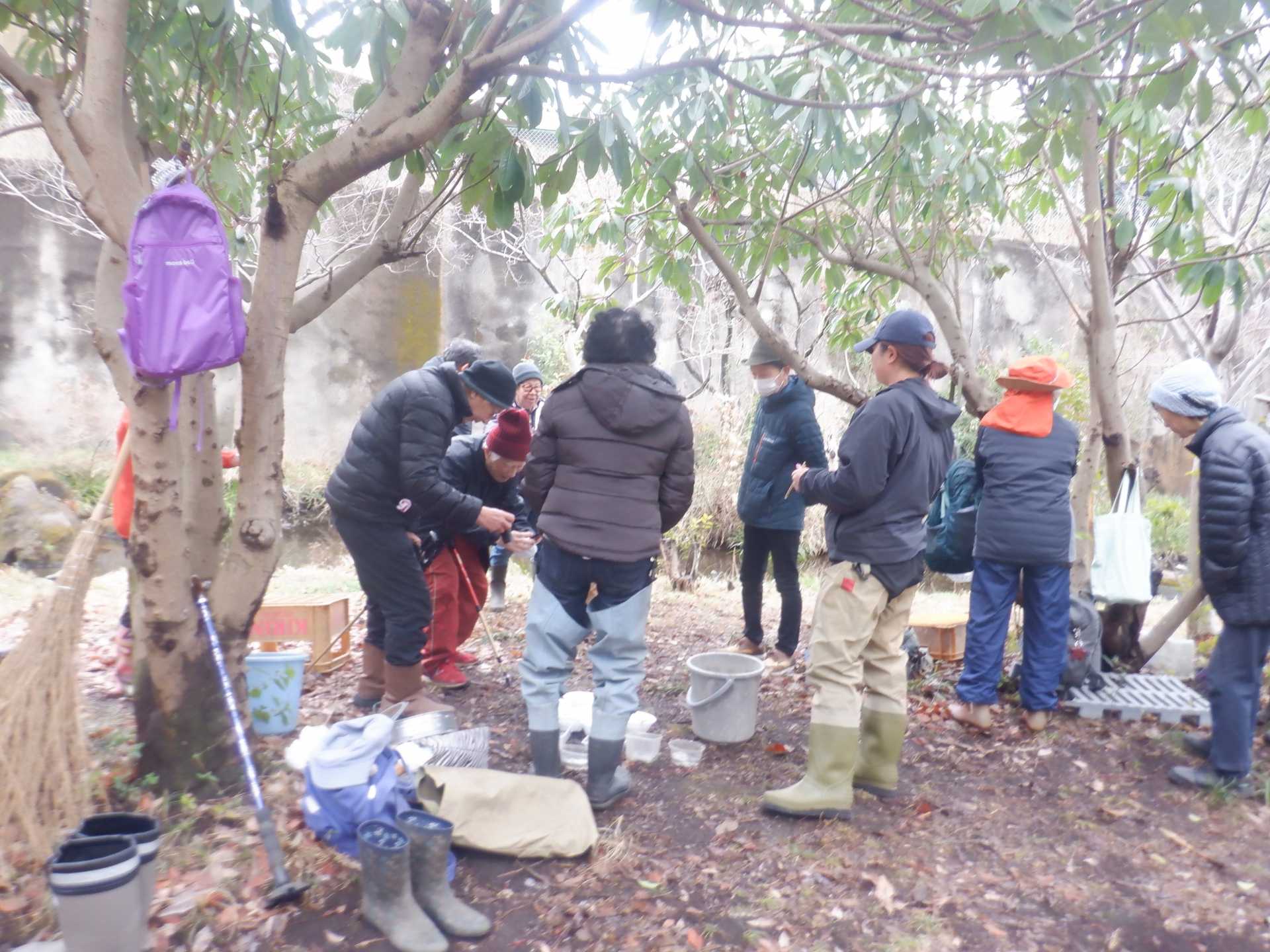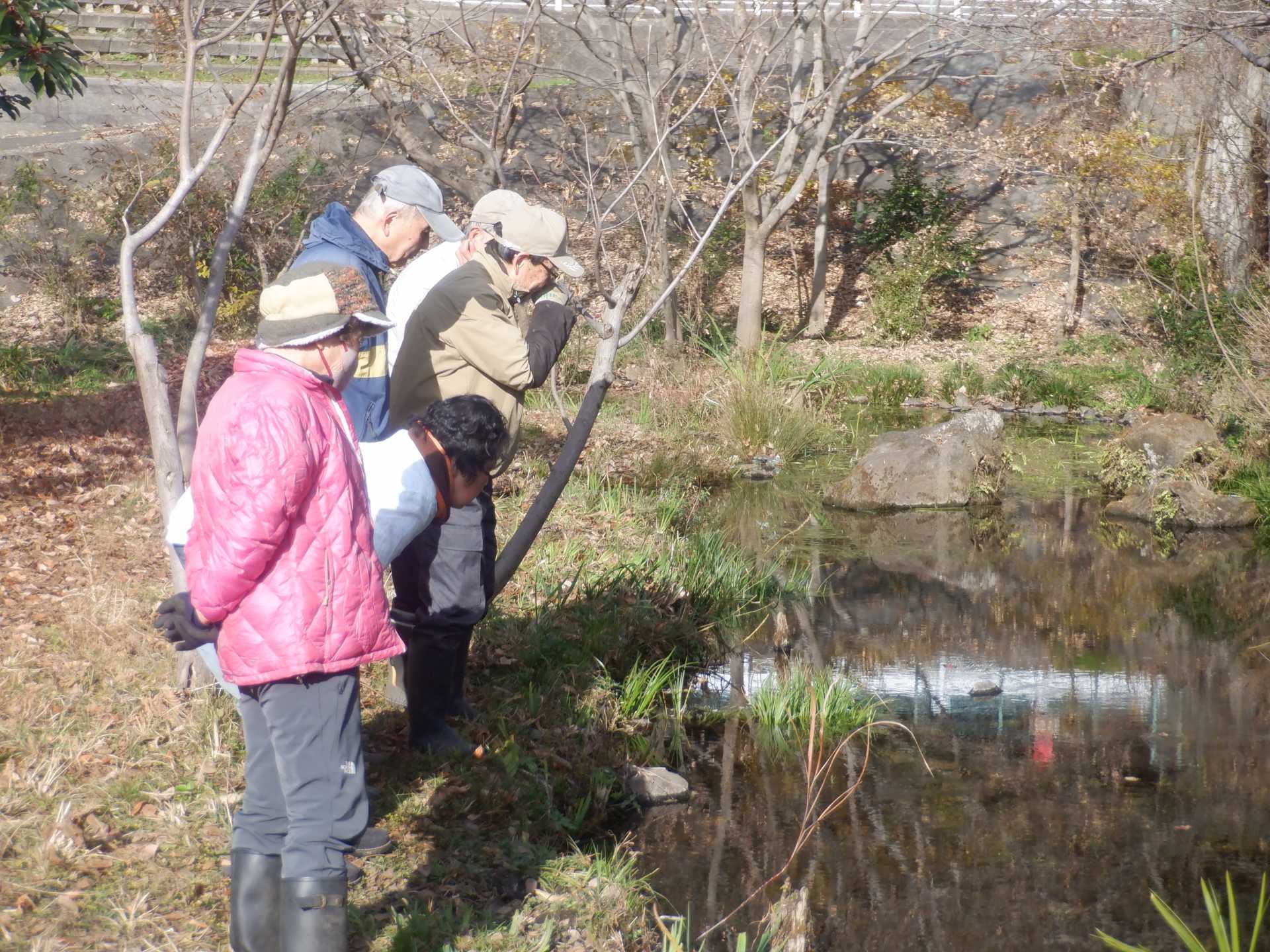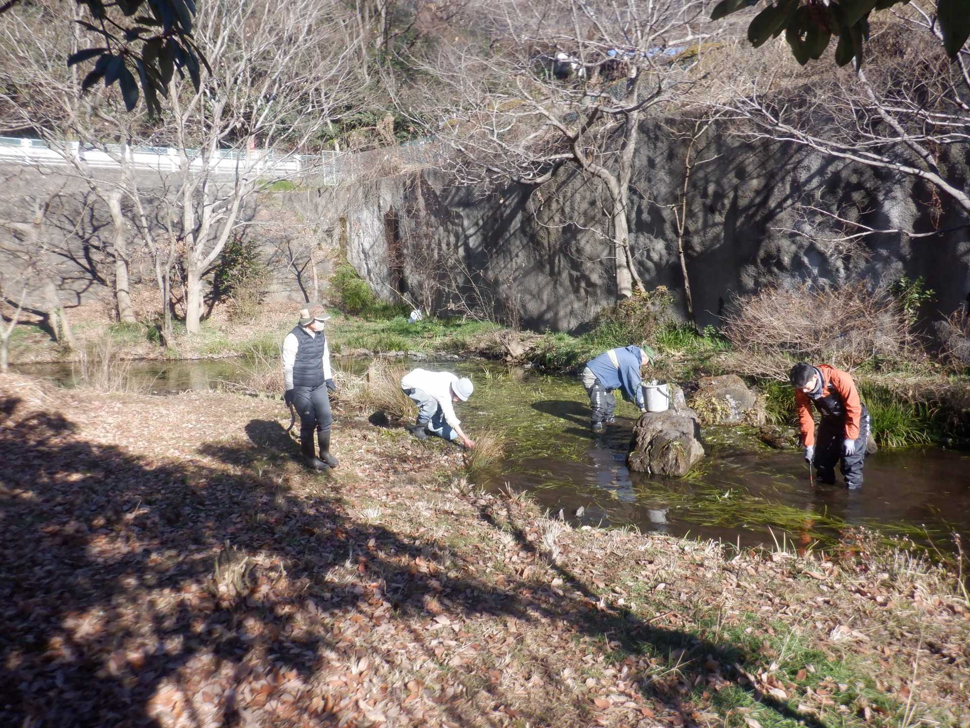 3月7日肌寒い中でのビオトープ作業です。このところ雨の降る日が多く作業でき