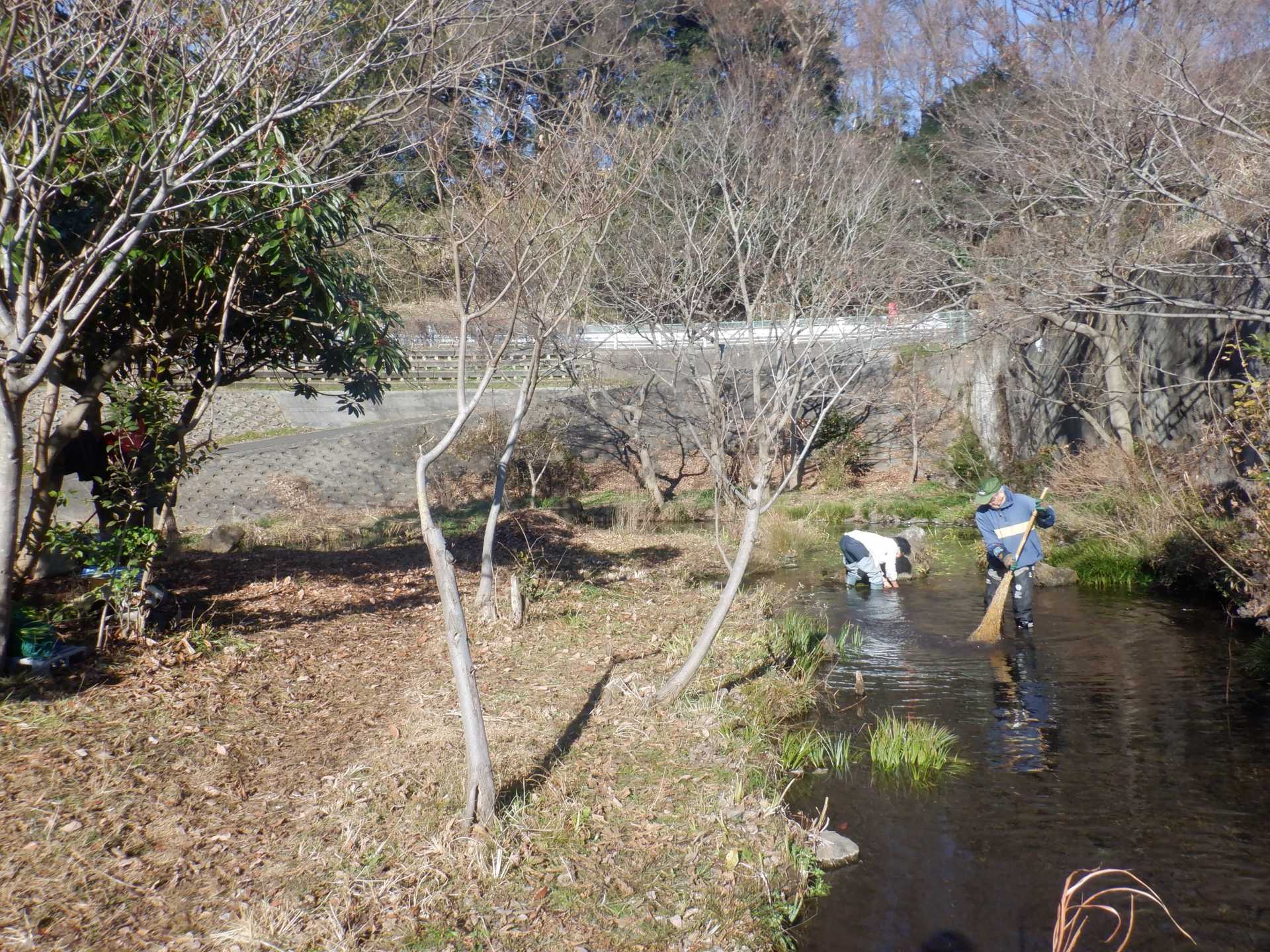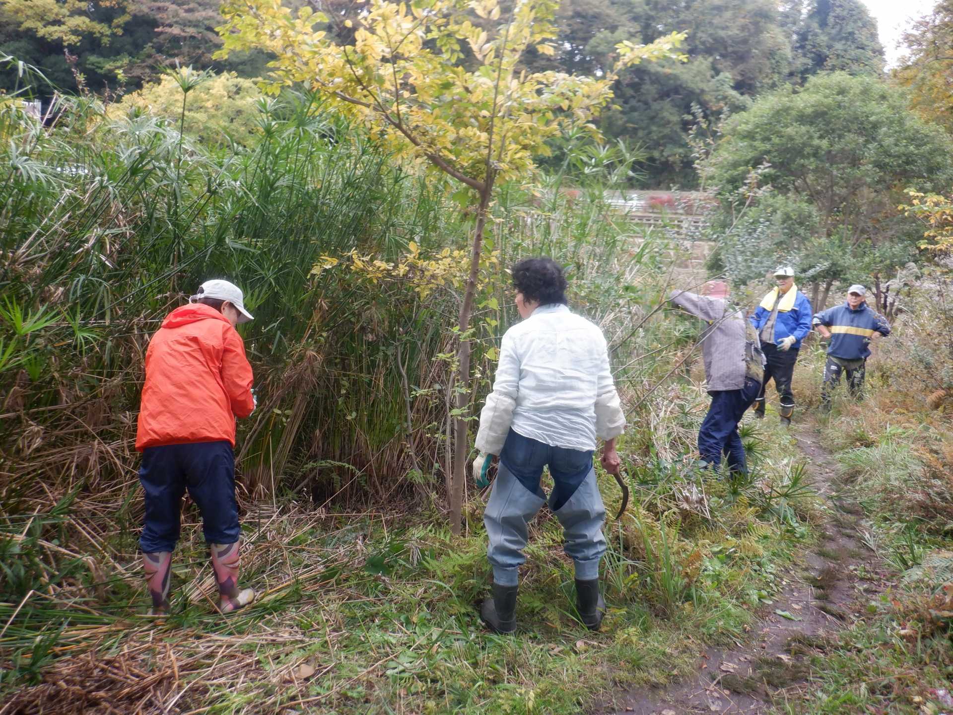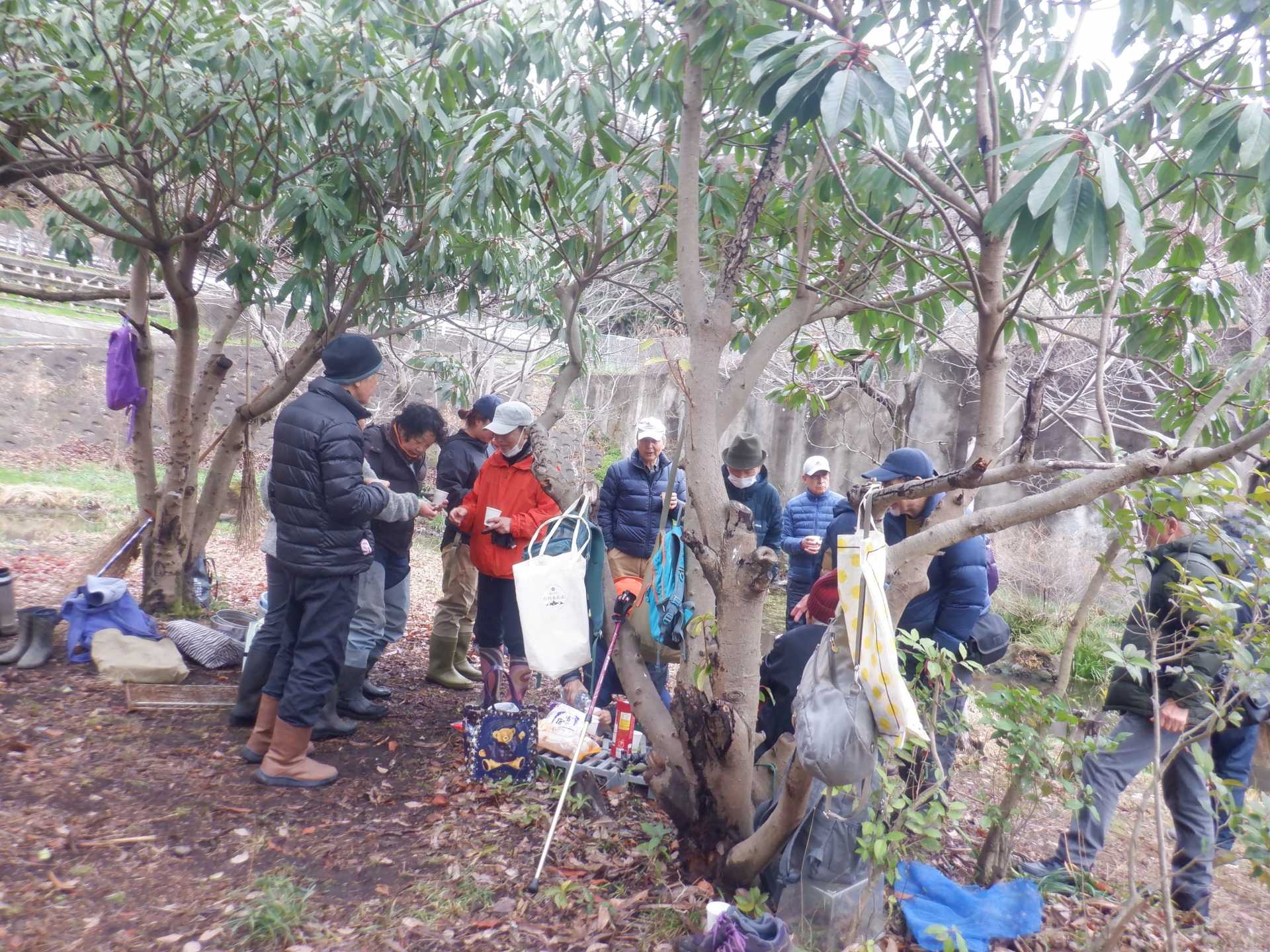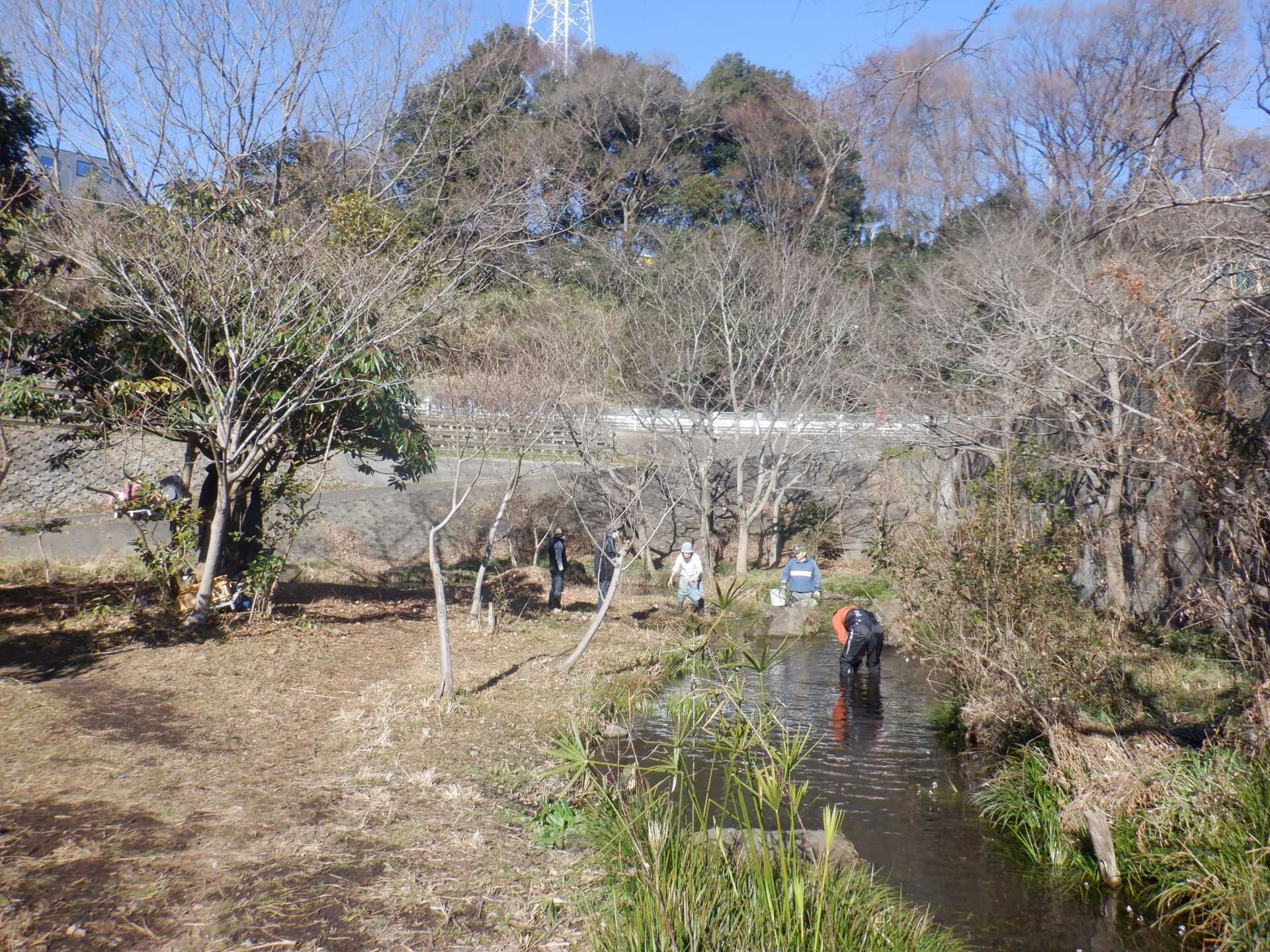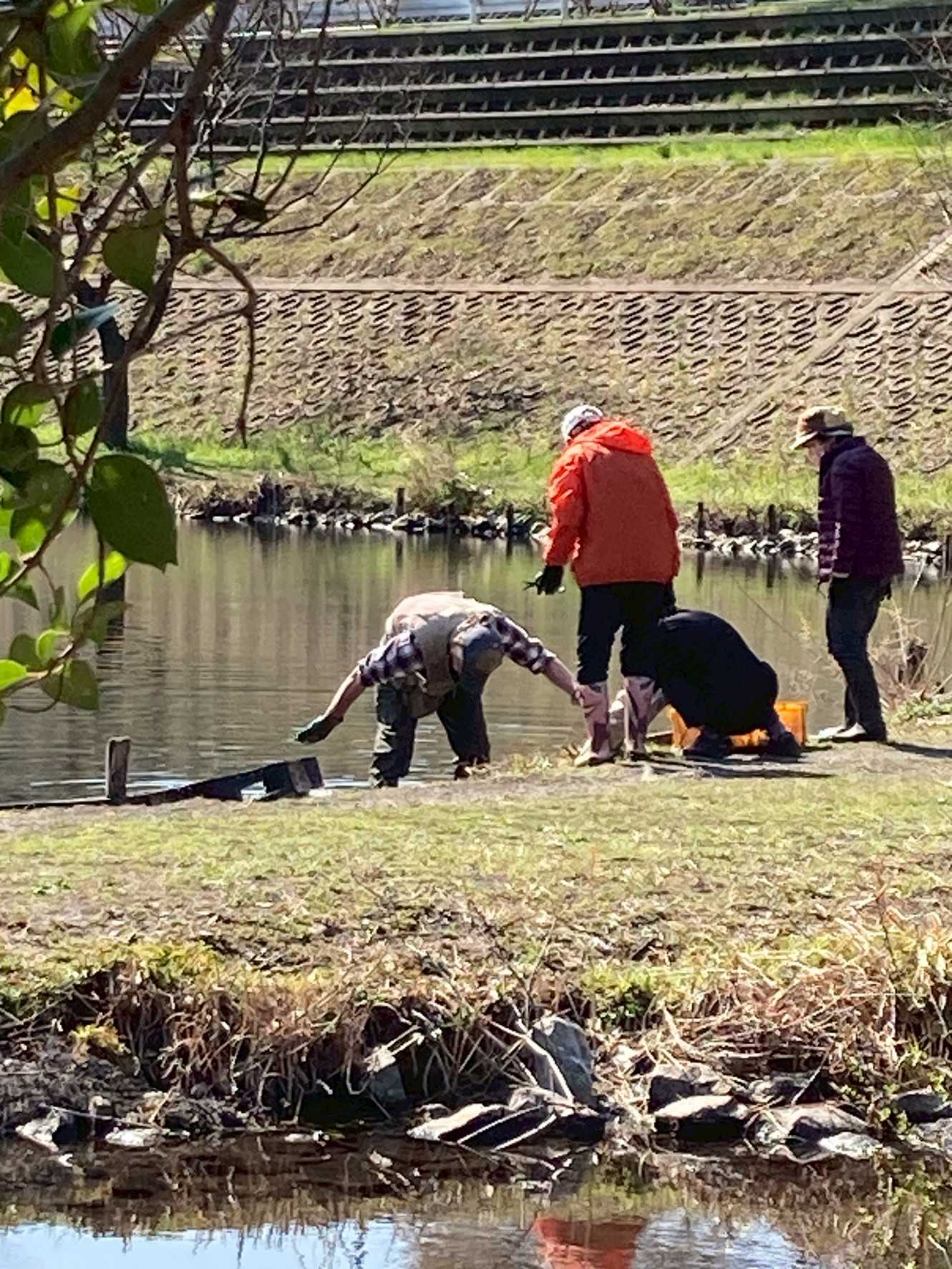 3月7日肌寒い中でのビオトープ作業です。このところ雨の降る日が多く作業でき