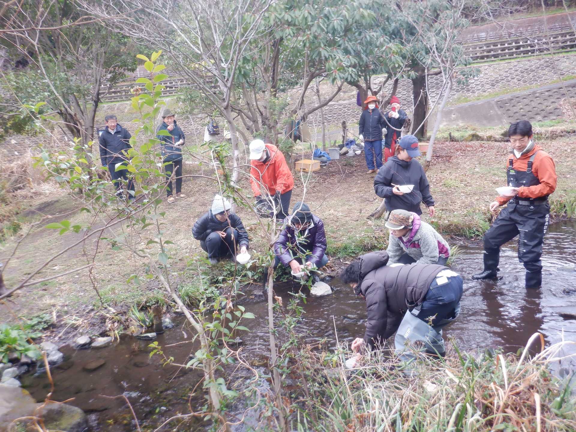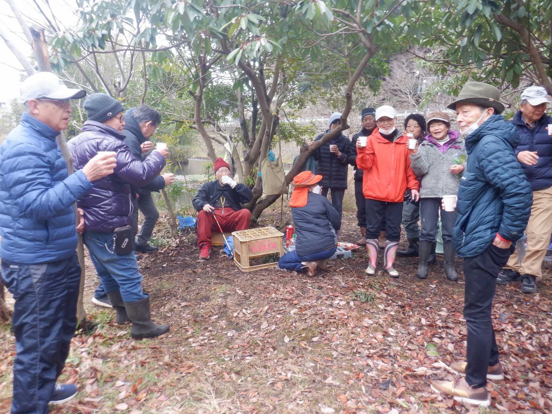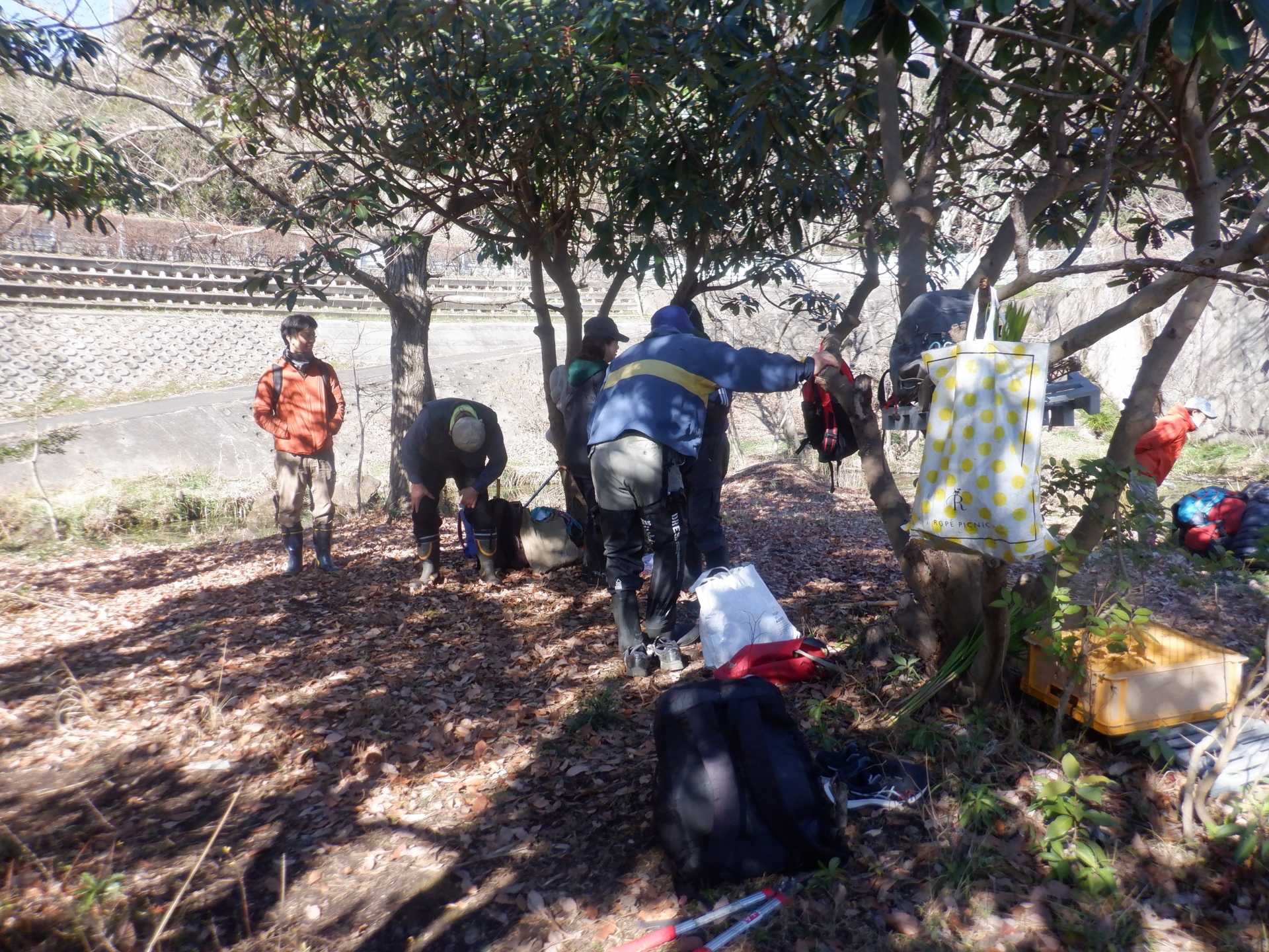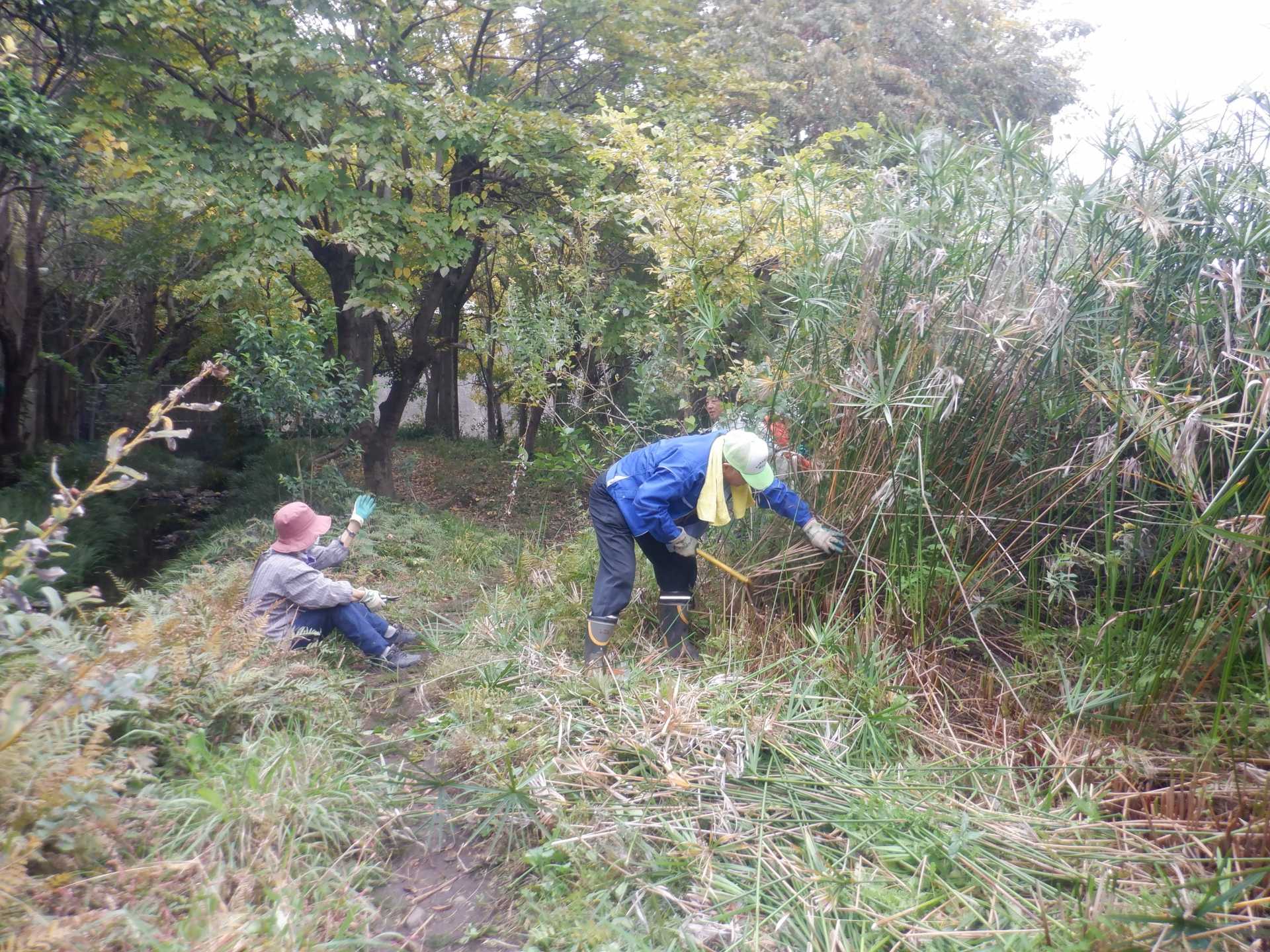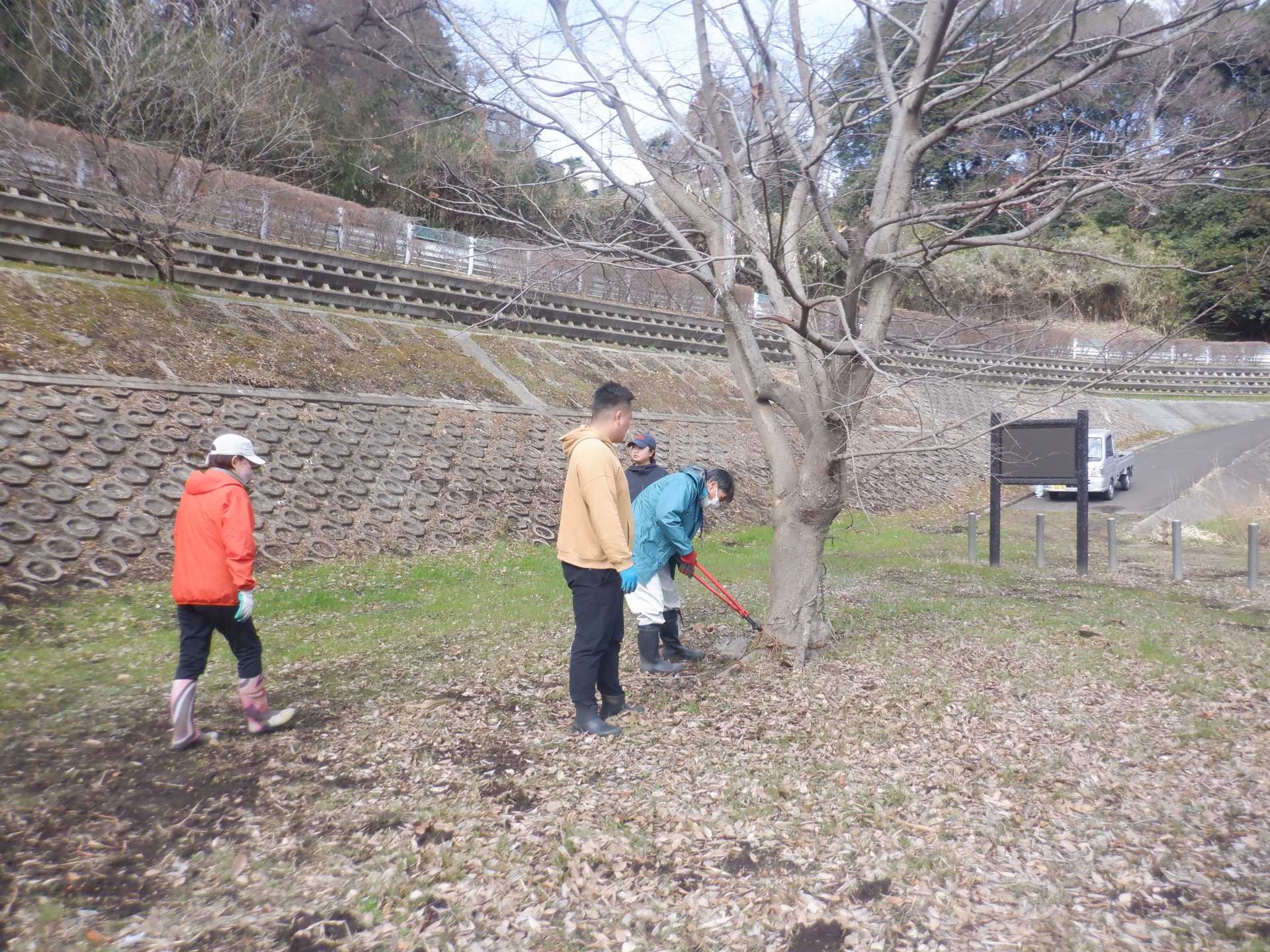 3月7日肌寒い中でのビオトープ作業です。このところ雨の降る日が多く作業でき
