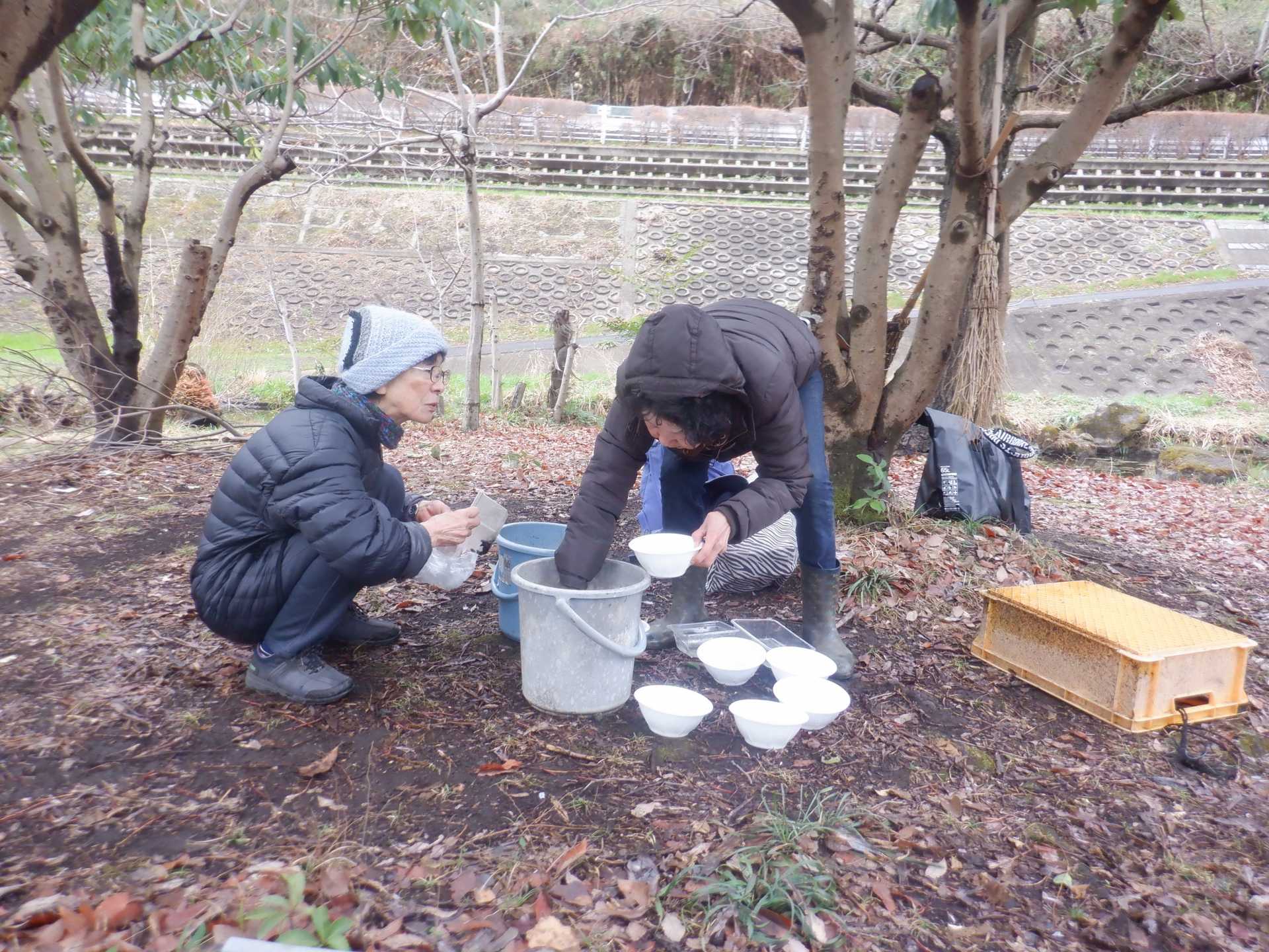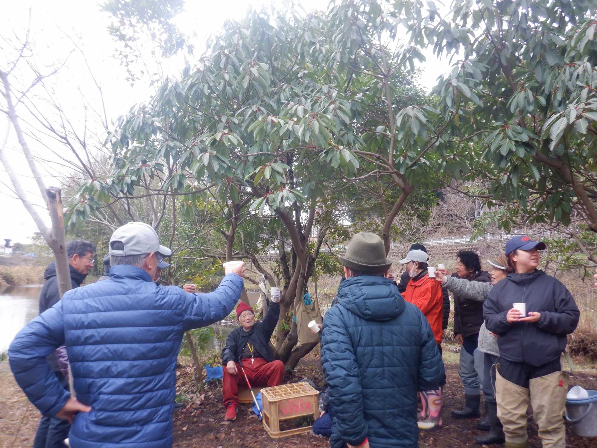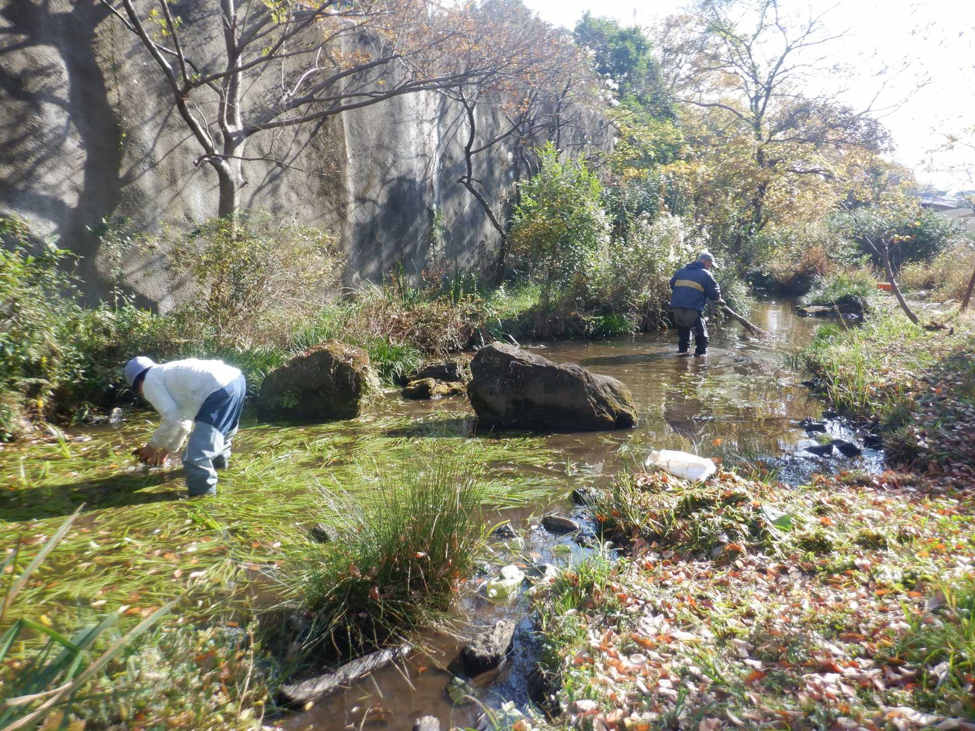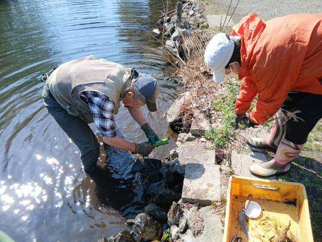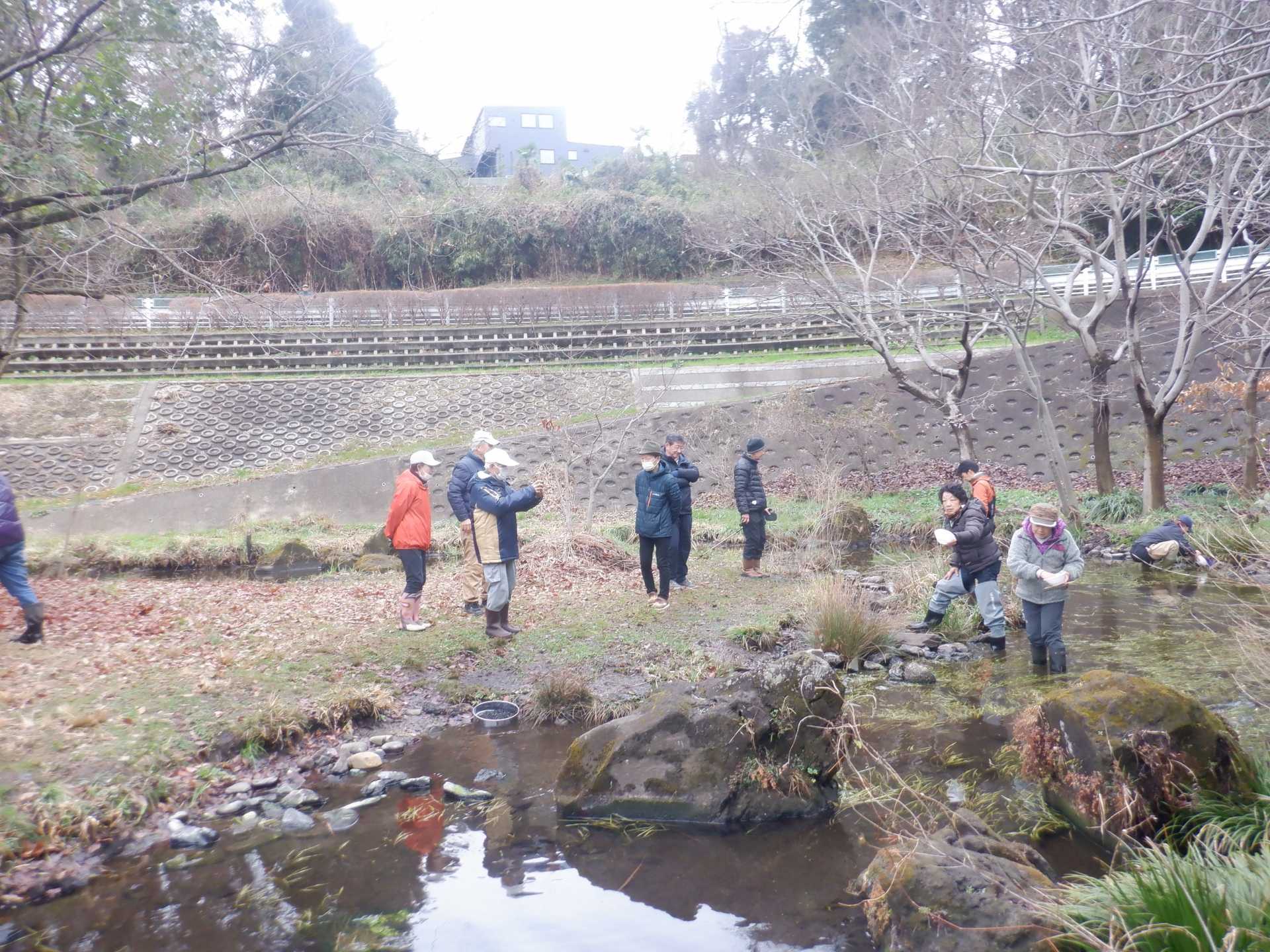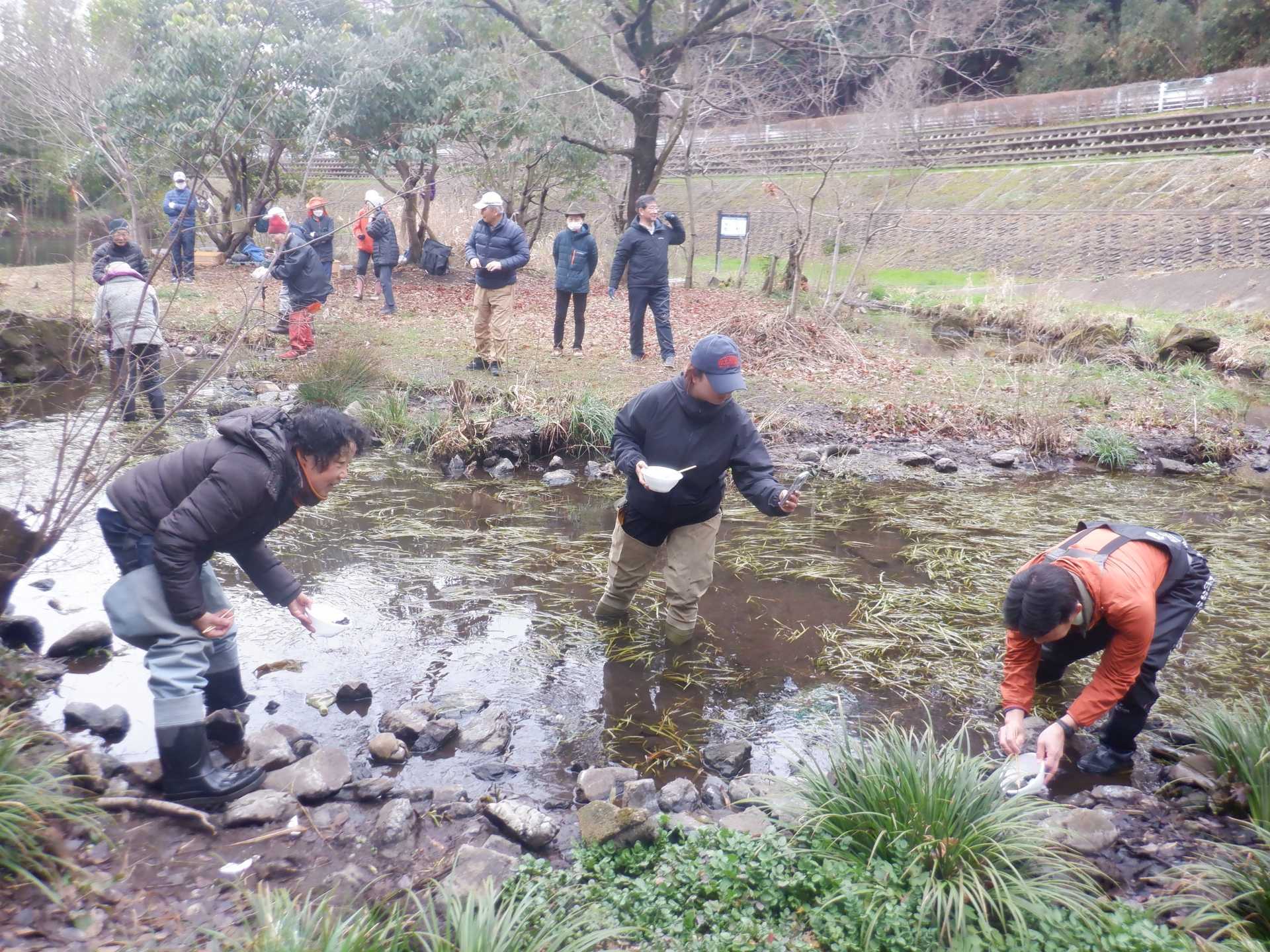 3月7日肌寒い中でのビオトープ作業です。このところ雨の降る日が多く作業でき
