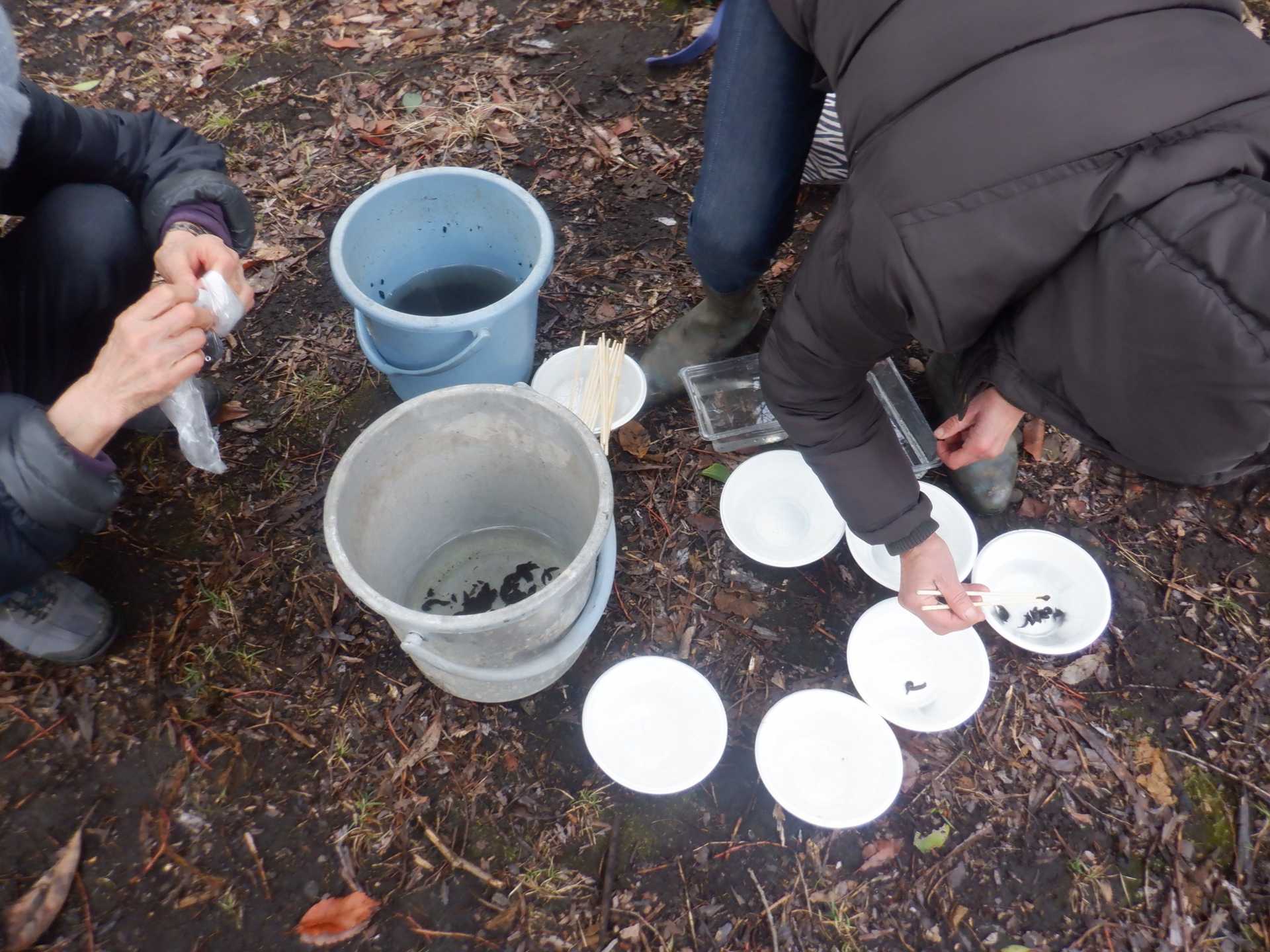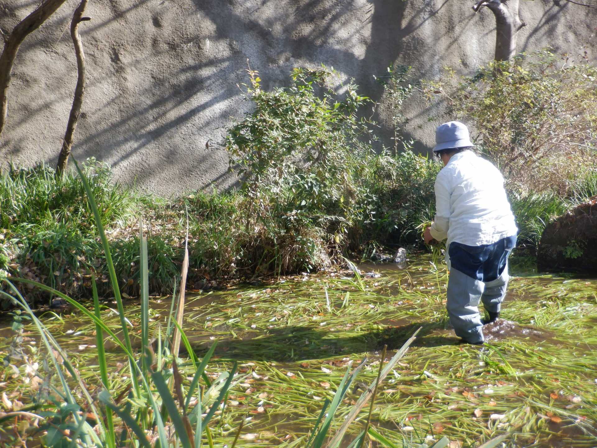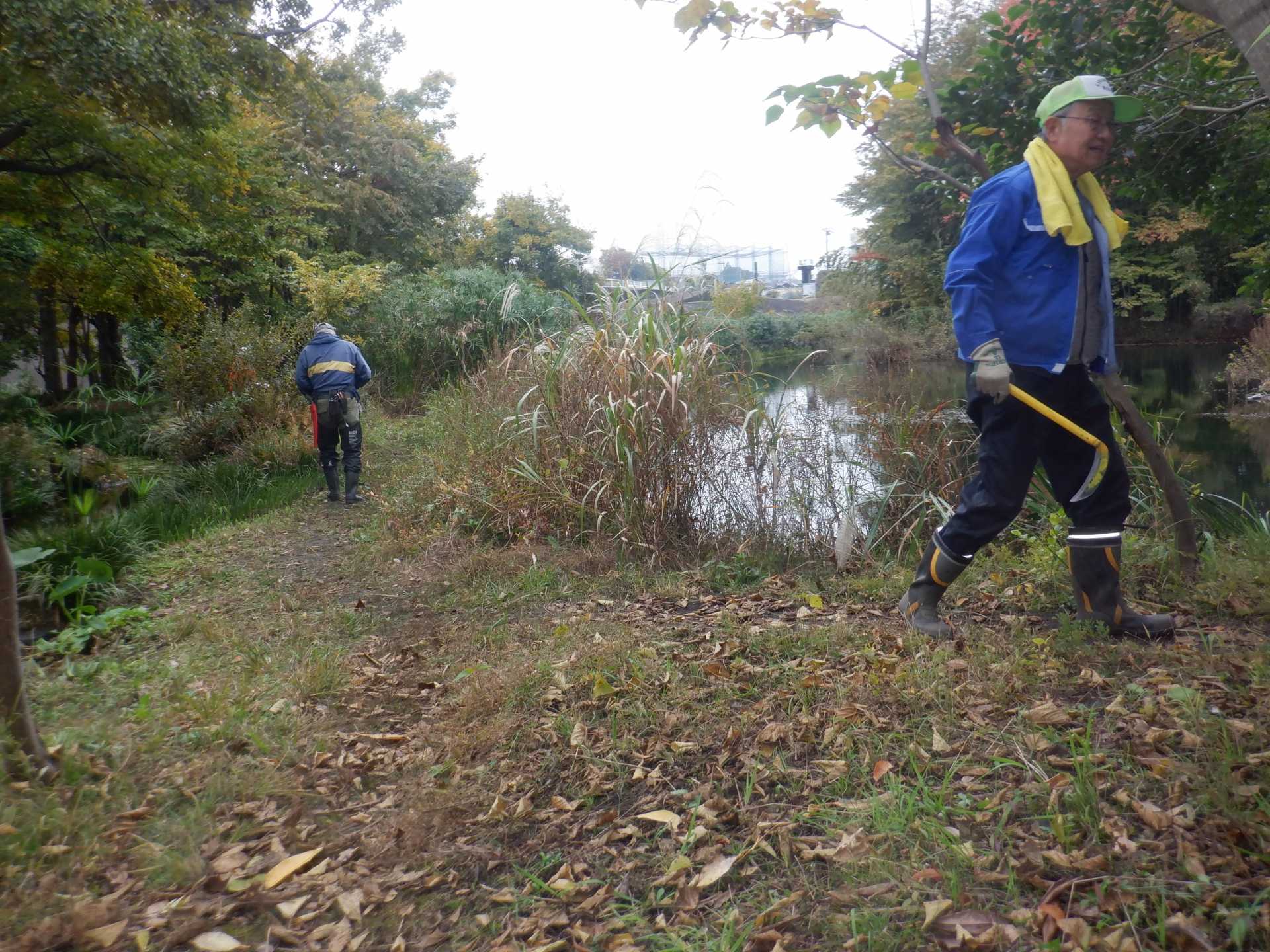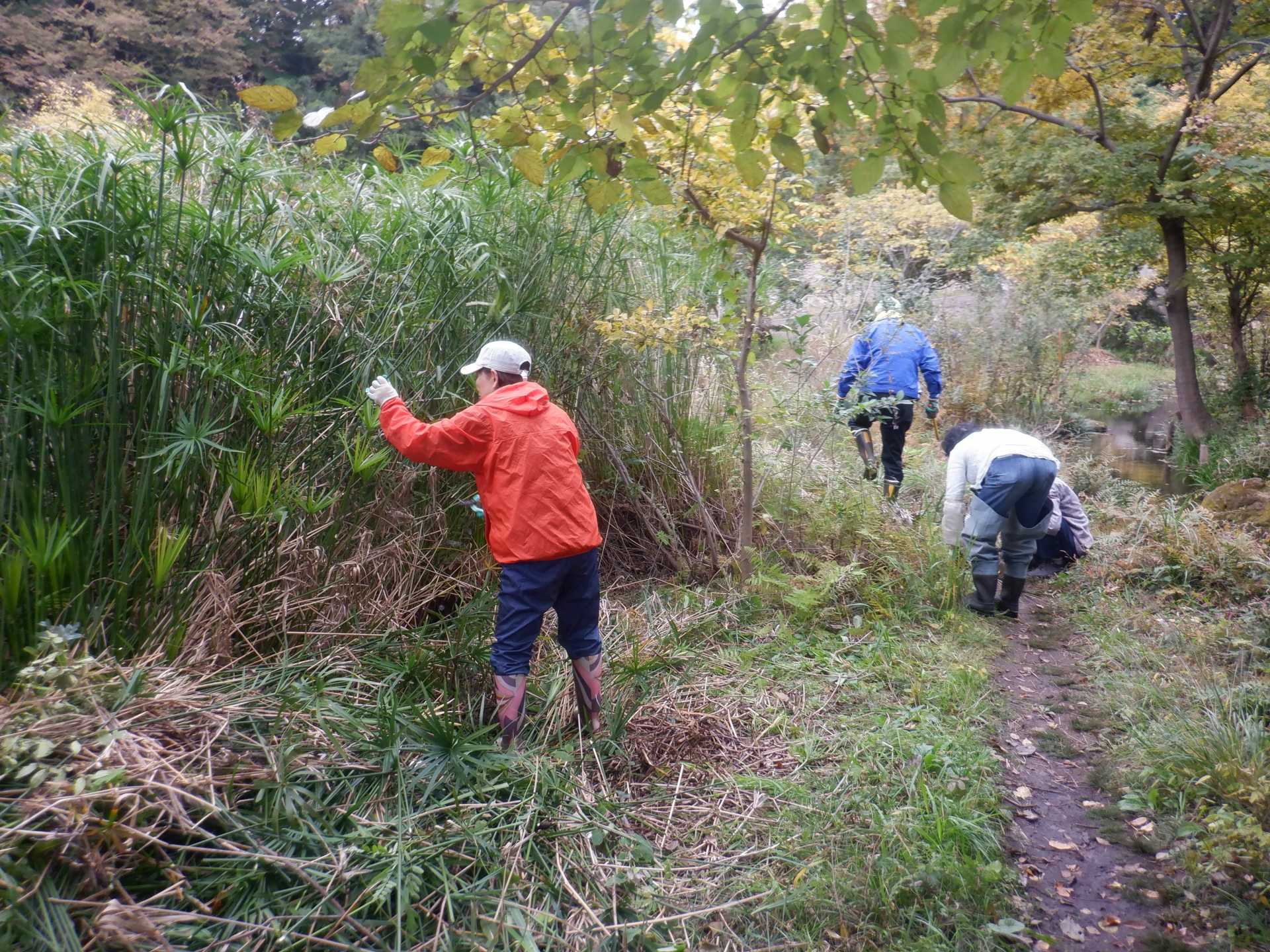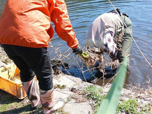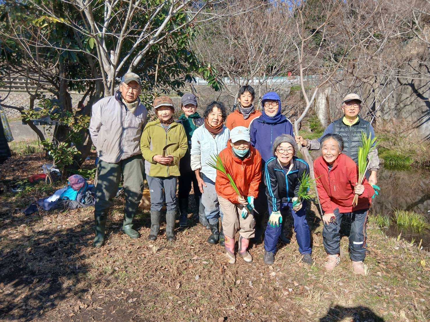 3月7日肌寒い中でのビオトープ作業です。このところ雨の降る日が多く作業でき