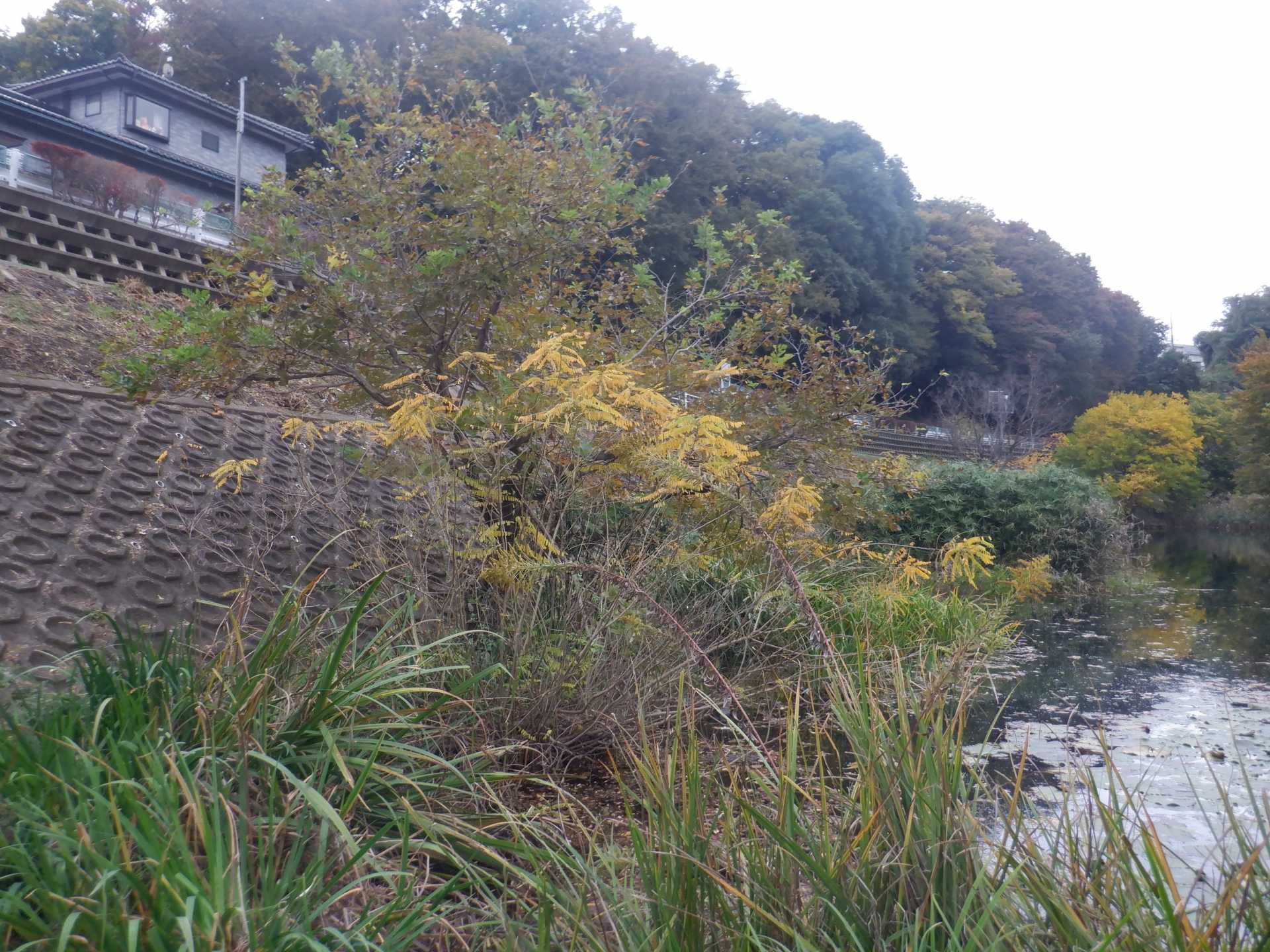 水路対岸にあるクロガネモチ6本とエノキの伐採