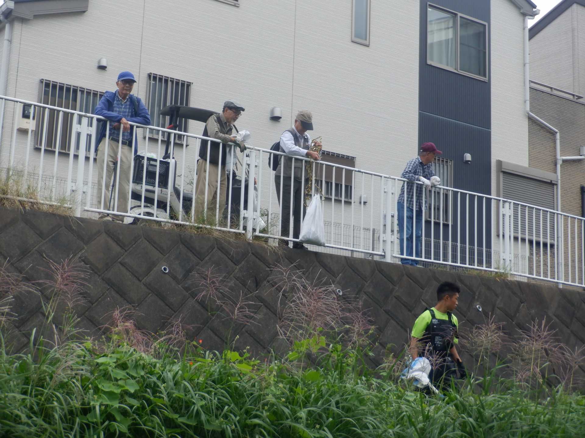 龍蔵橋から上がって、そこで作業終了の集合写真撮って、雨が降らないうちに解散しました。(11時に雨降りだす)